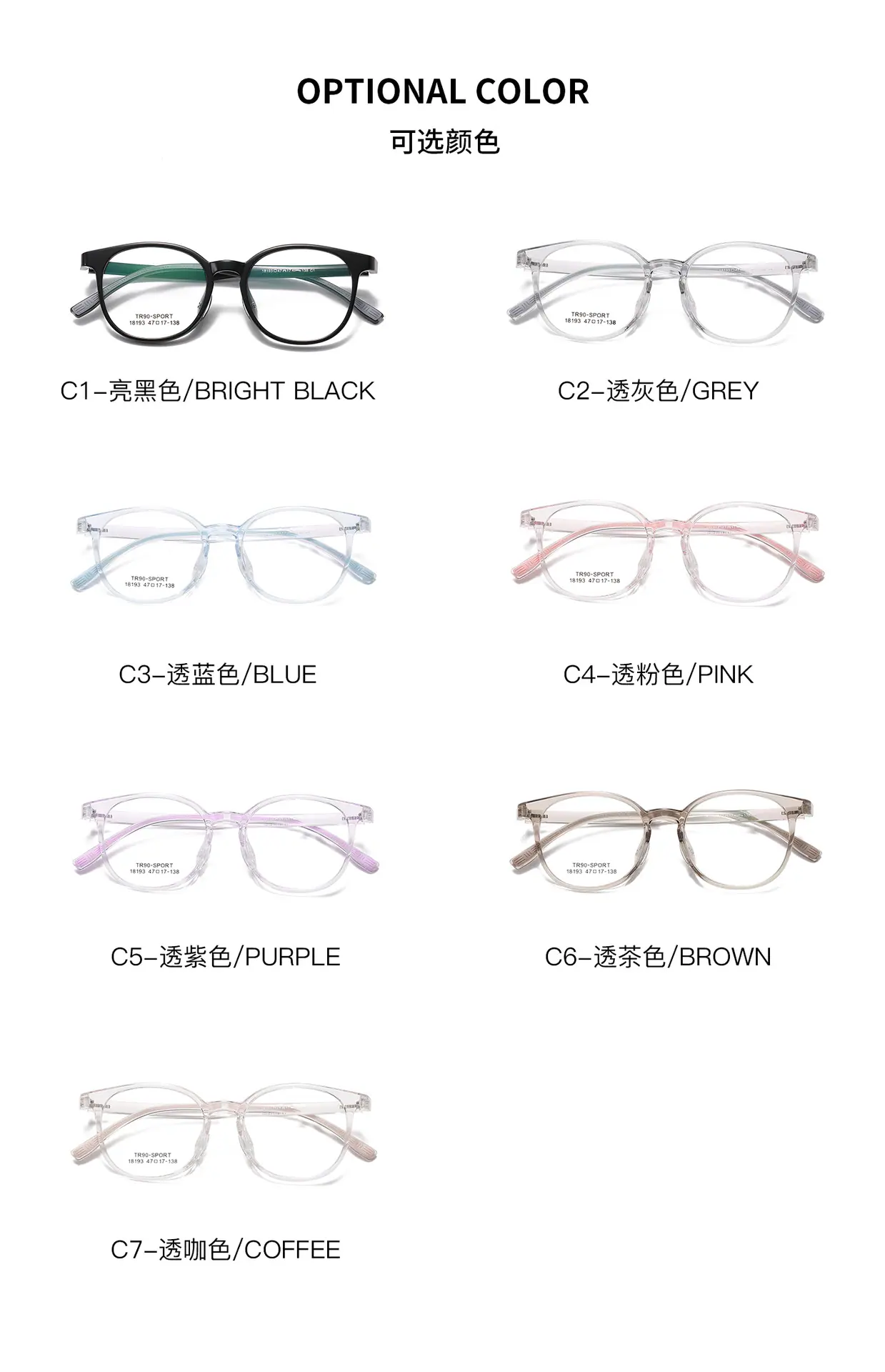 C1 Bright Black Frame, C2 Translucent Grey, C3 Translucent Blue, C4 transparent pink frame, C5 transparent pur...