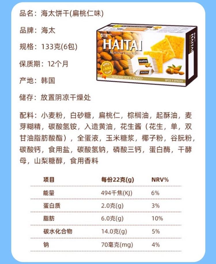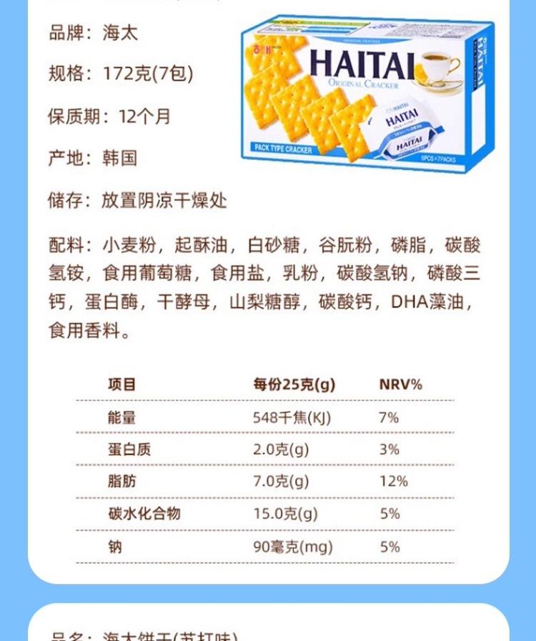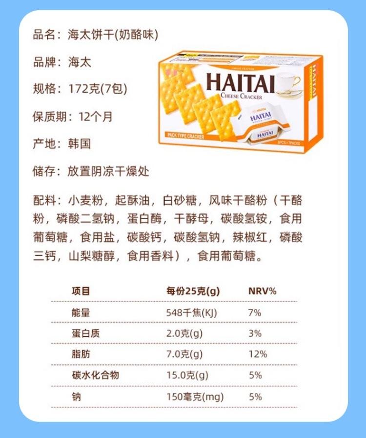 HAITAI Galletas de Soda Marinas Importadas de Corea del Sur Sabor Original Queso Galletas de Soda Snacks para el Desayuno Venta al por Mayor