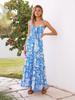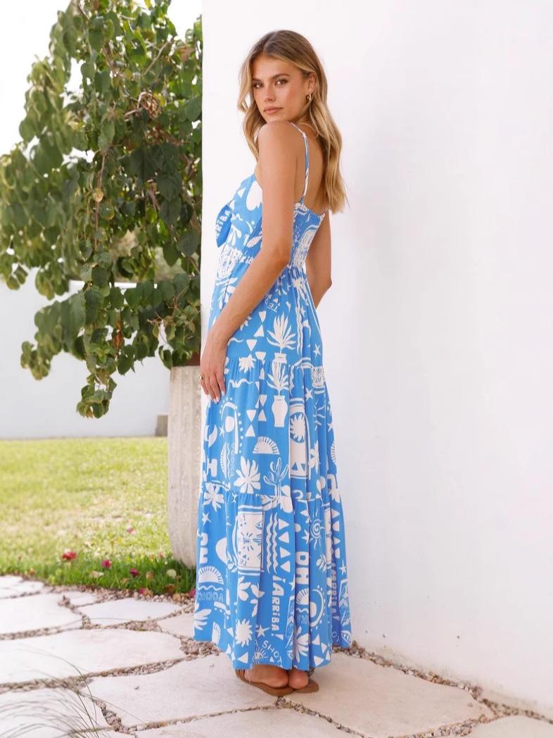 Nuevo Vestido Sexy de Tirantes de Verano Estilo Europeo y Americano Transfronterizo con Abertura Falda Estampada Moda Femenina Ropa Casual de Mujer
