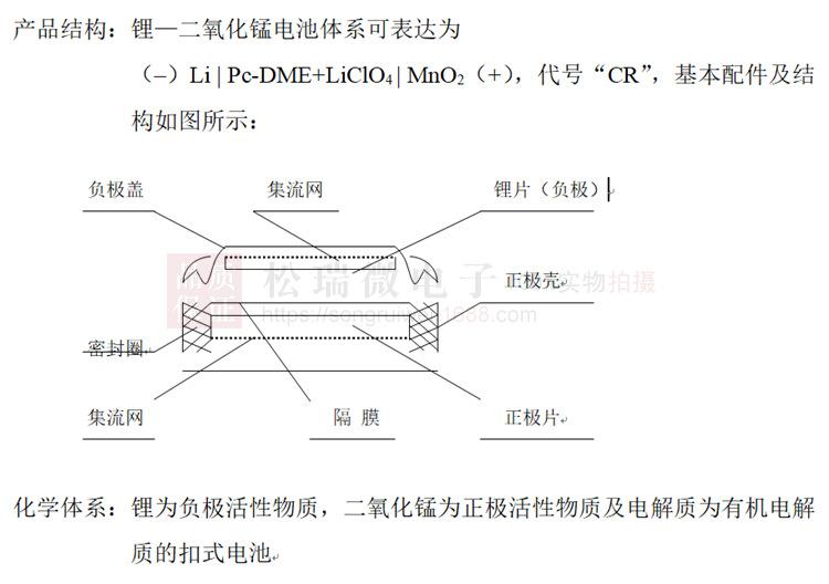 8 | Estructura y composición | Cátodo de dióxido de manganeso, ánodo de litio, electrolito orgánico, separador y carcasa de acero inoxidable, etc. |