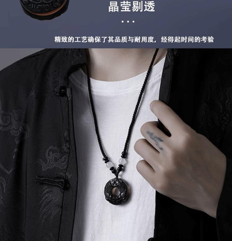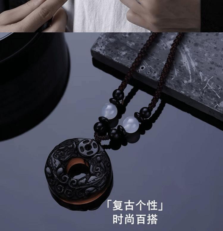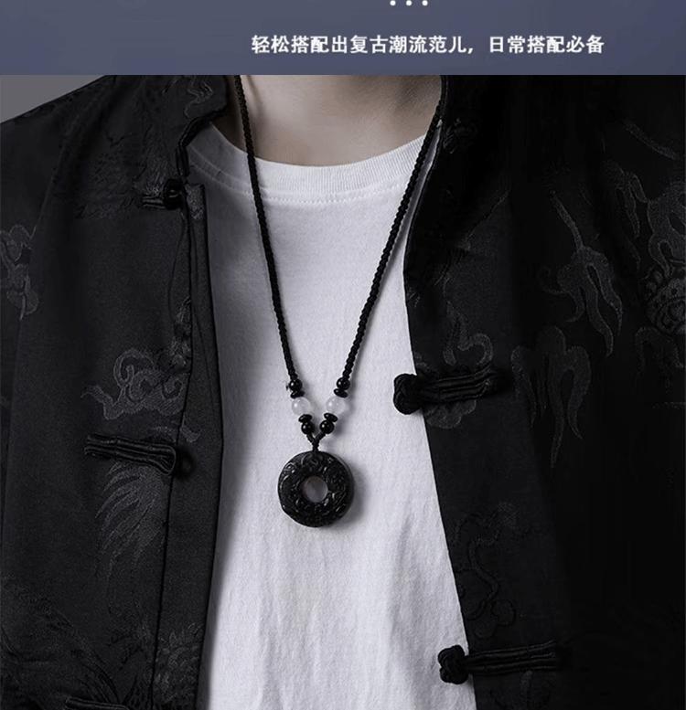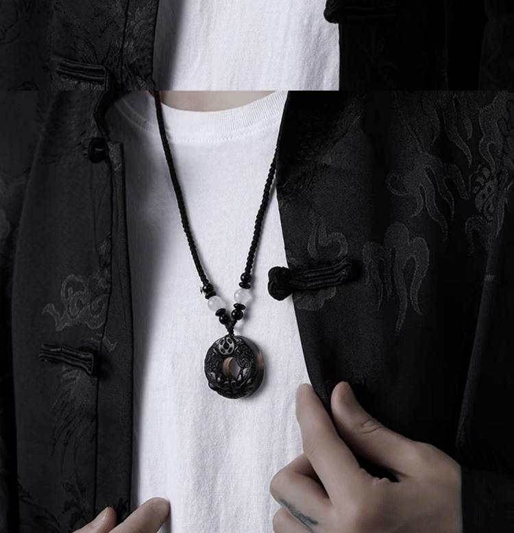 Collar de Obsidiana Doble Pixiu Paz para Hombre Sencillo Atracción de Riqueza Regalo para Novio Colgante Personalidad Estilo Étnico Colgante para Pareja