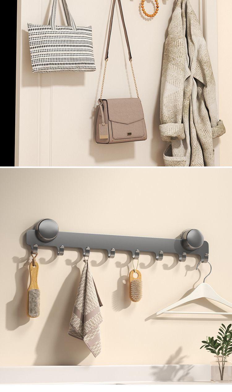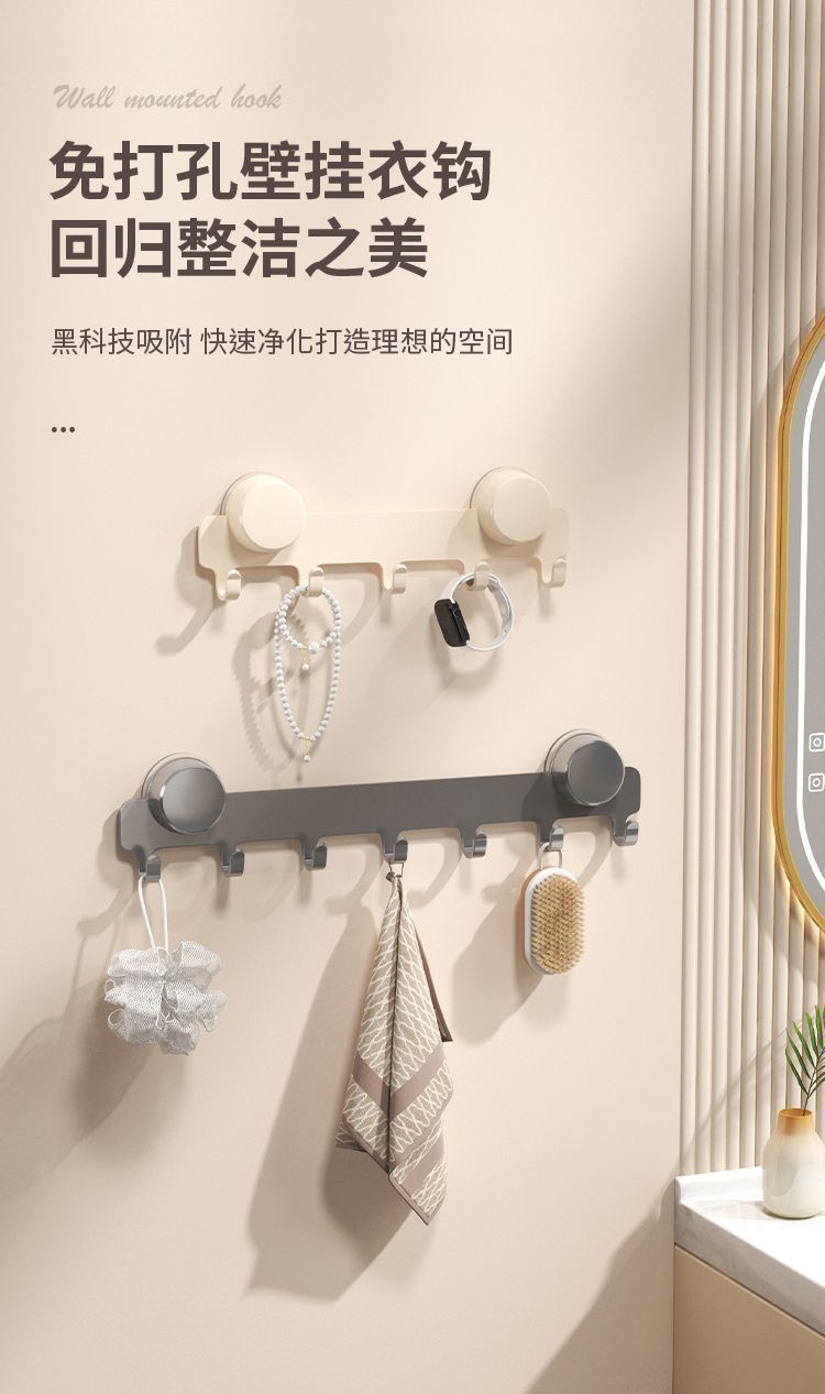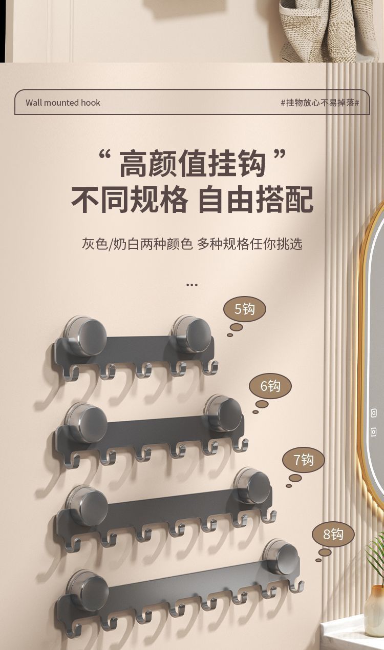 Suction cup behind the door - gun gray single hook - 5 hooks [strong adsorption/no installation], Suction cup ...