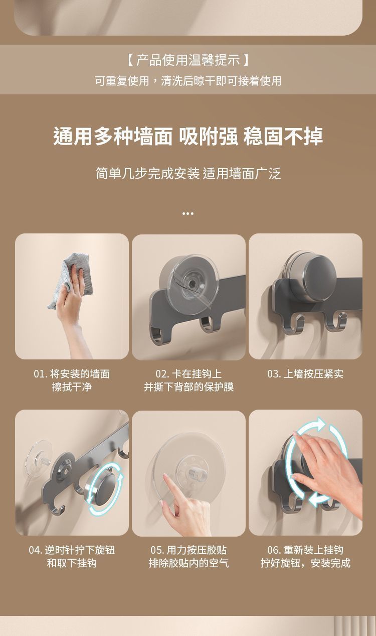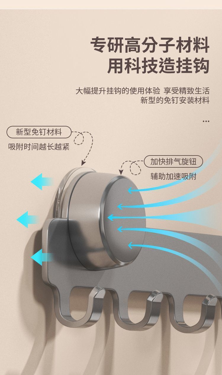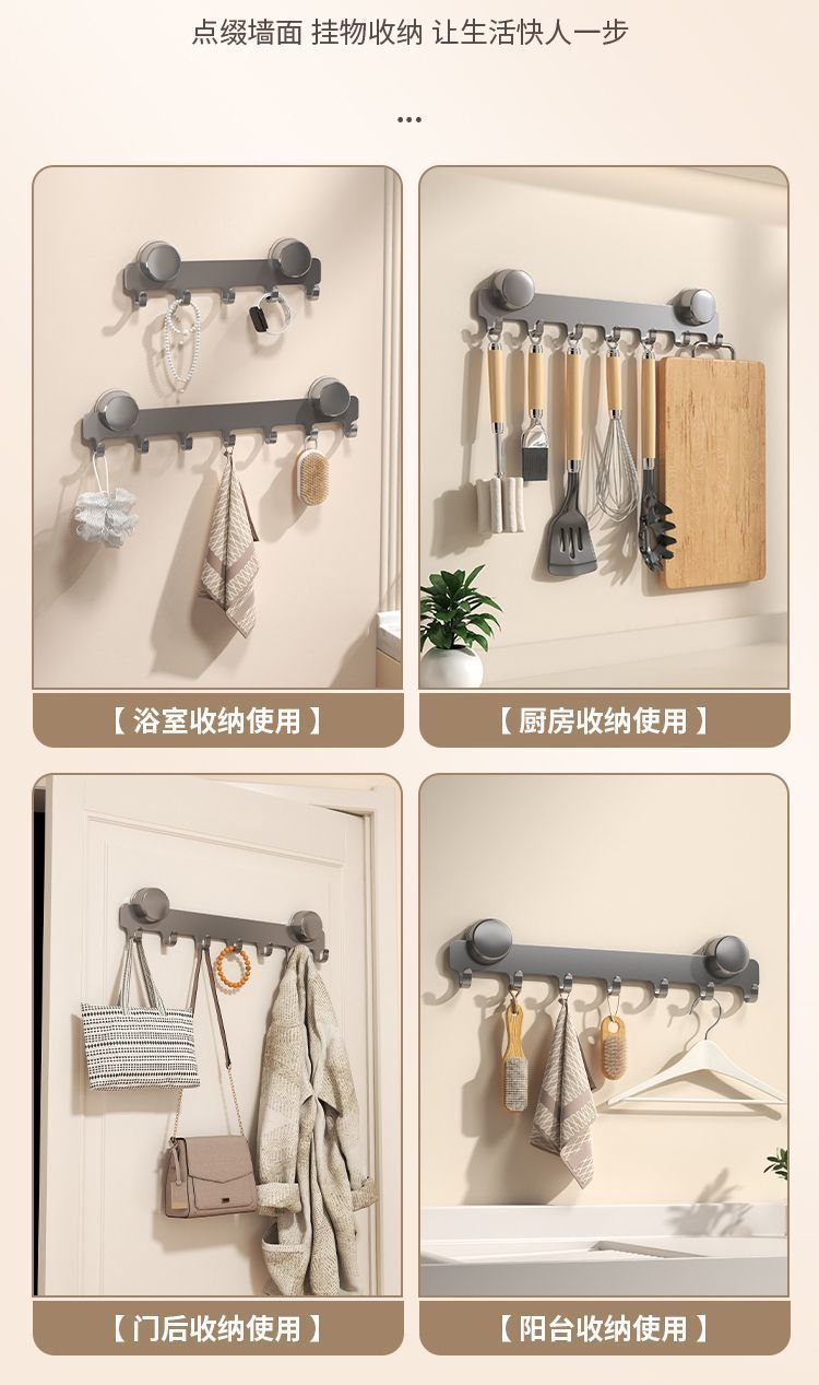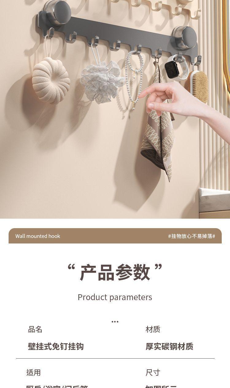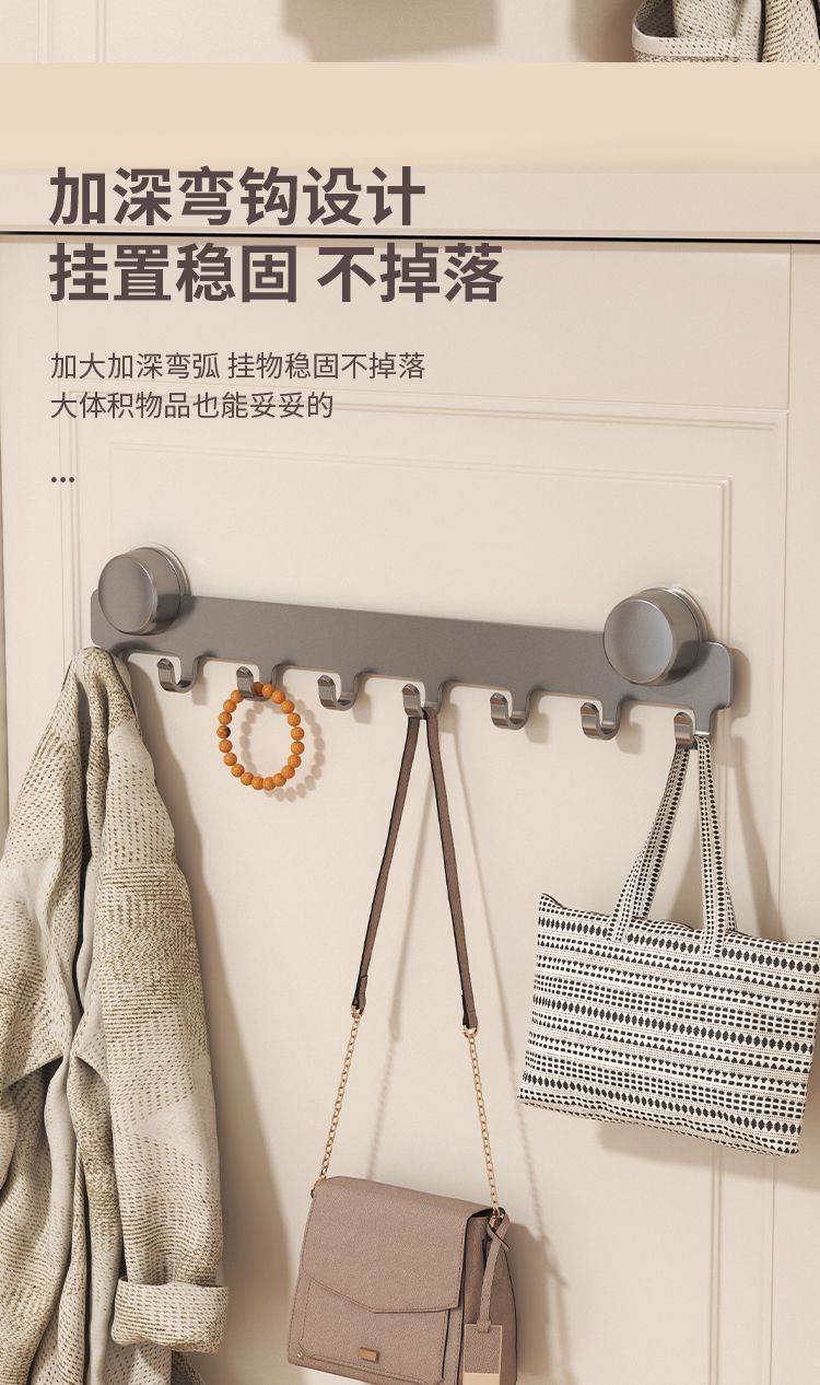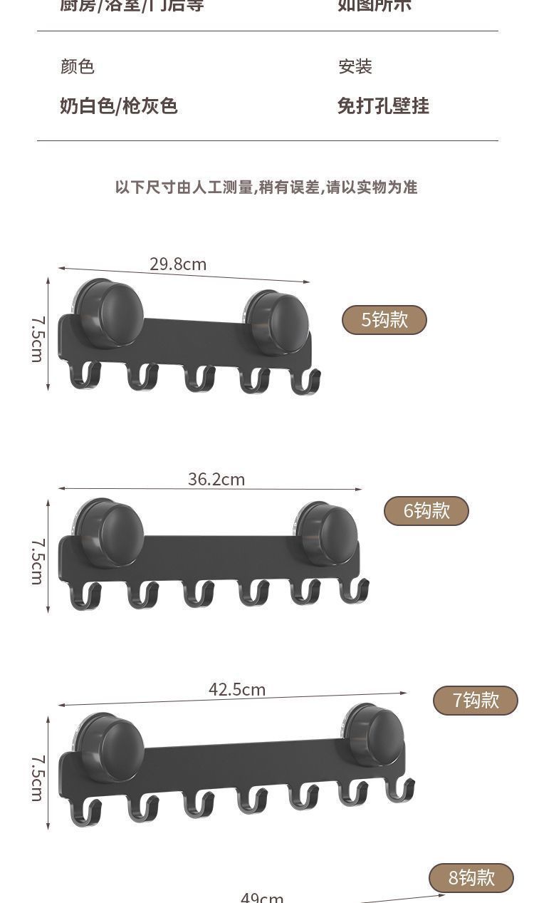 Suction cup behind the door - gun gray single hook - 6 hooks [strong adsorption/no installation]