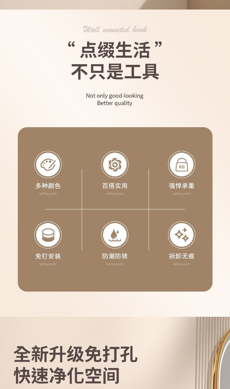 Behind the door - gun gray single hook - 3 hooks [strong glue/no need to punch]