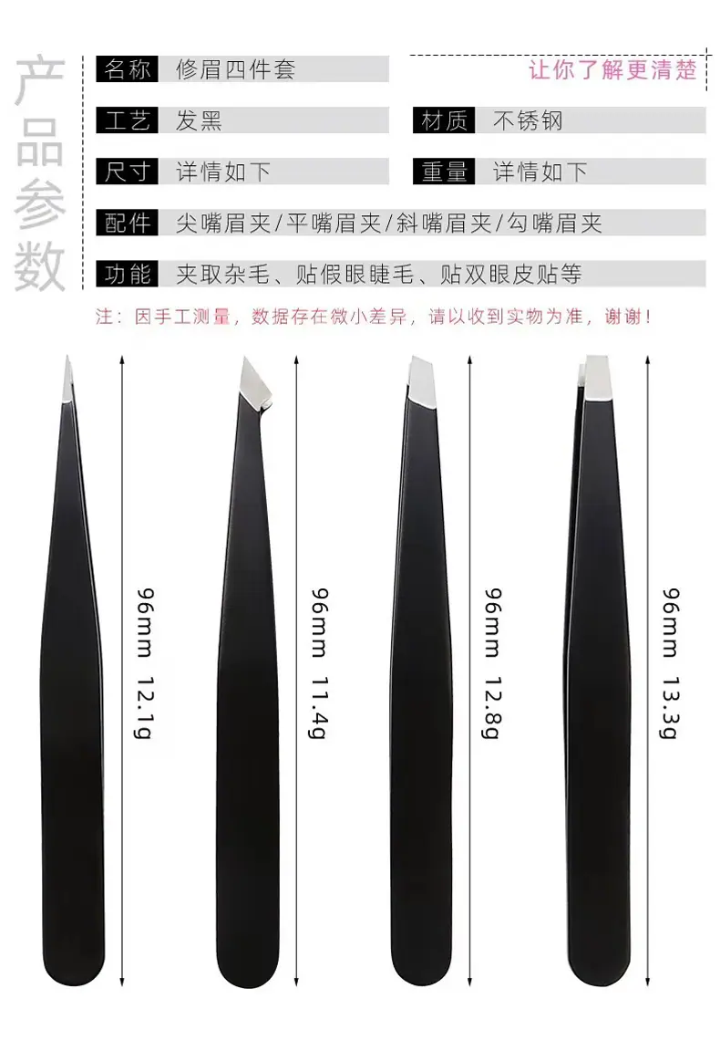 Black angled eyebrow clip, Black flat eyebrow clip, Black blade eyebrow clip, Black pointed eyebrow clip, Blac...