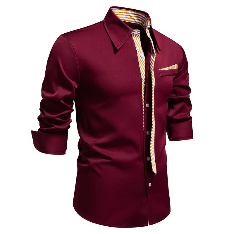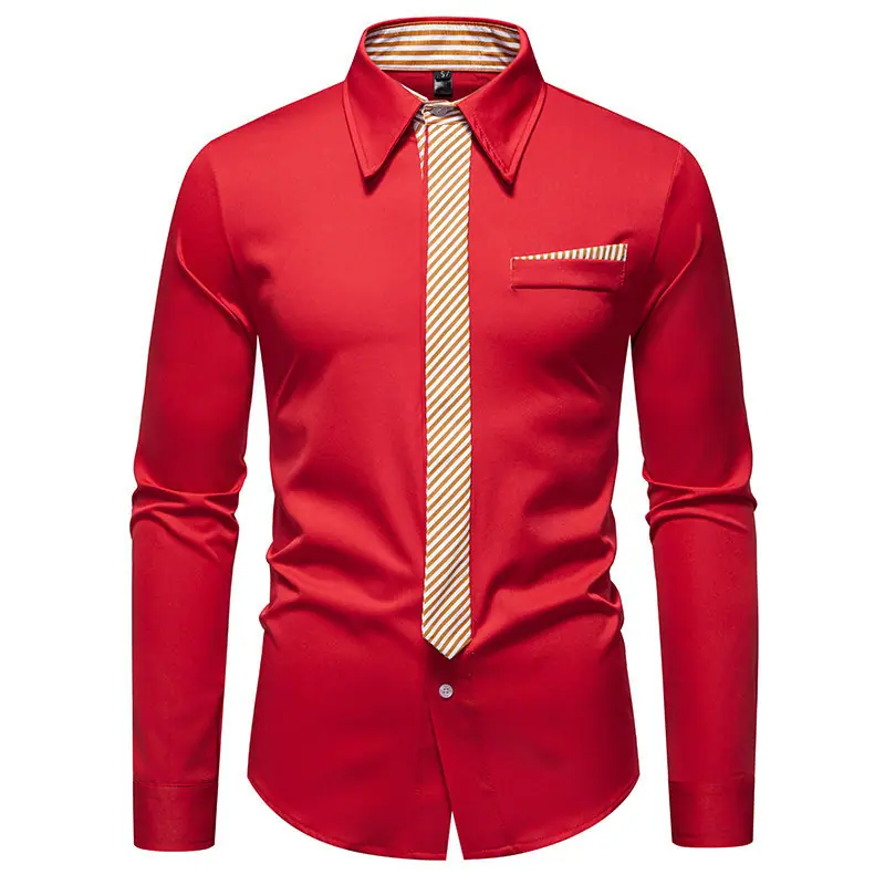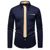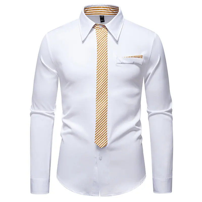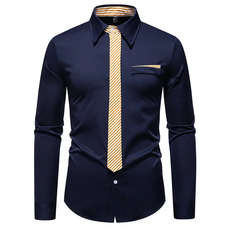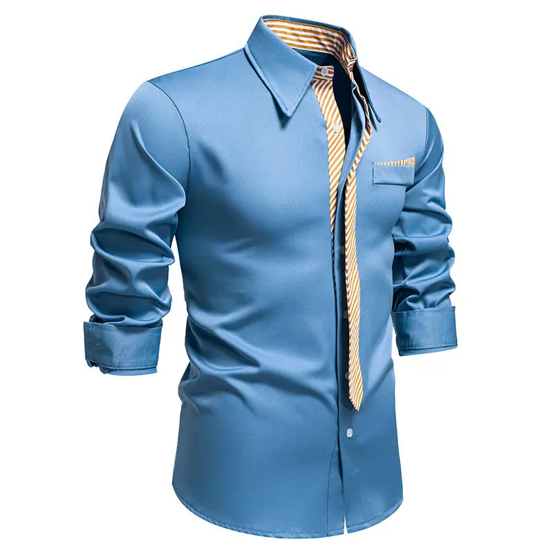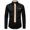 Comercio Exterior Amazon Moda Temperamento Camisa de Manga Larga para Hombre Corbatín Falso Camisa de Alta Gama Camisa Casual para Hombre Marea