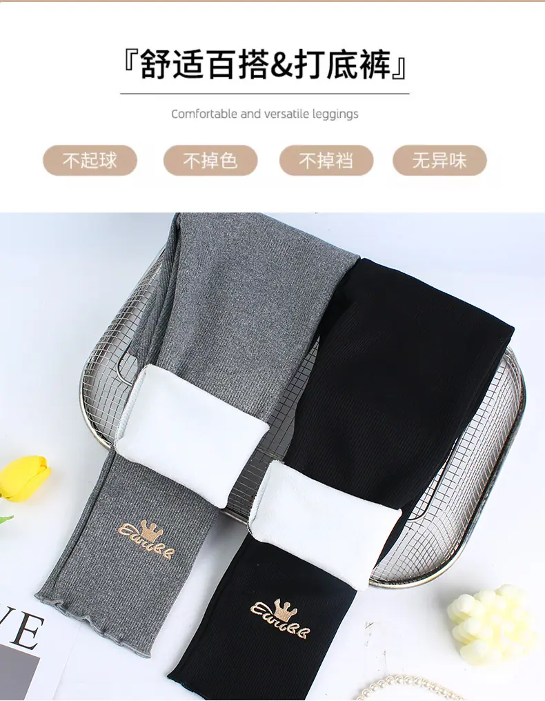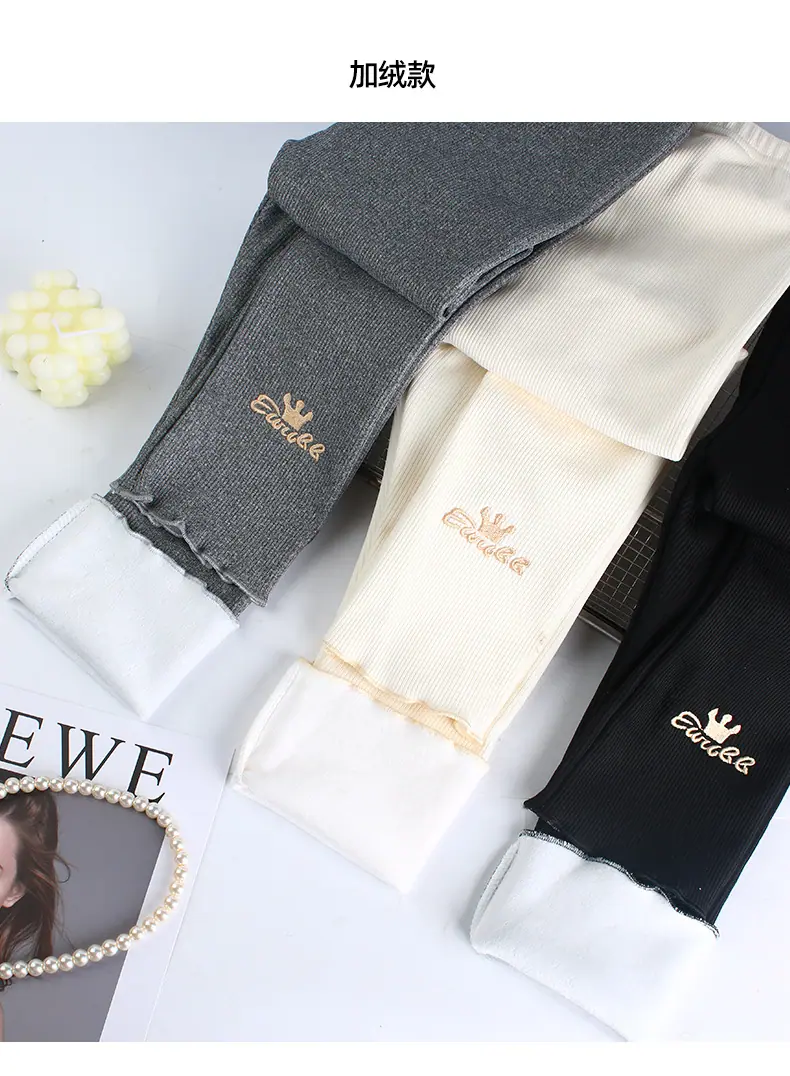 Ropa para niños al por mayor leggings para niñas otoño e invierno nuevos para niños con forro polar/sin forro polar bordado ropa exterior bebé mameluco de terciopelo
