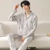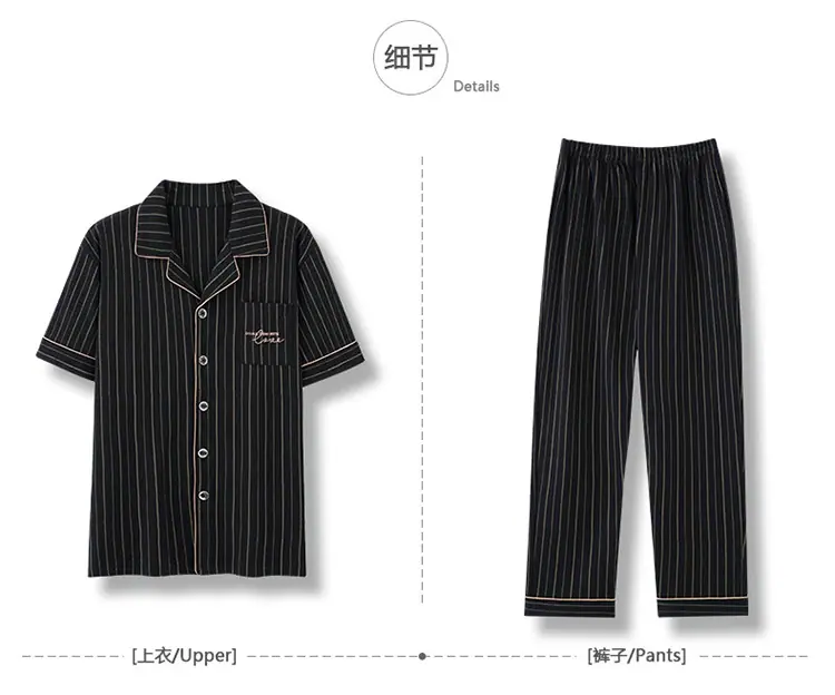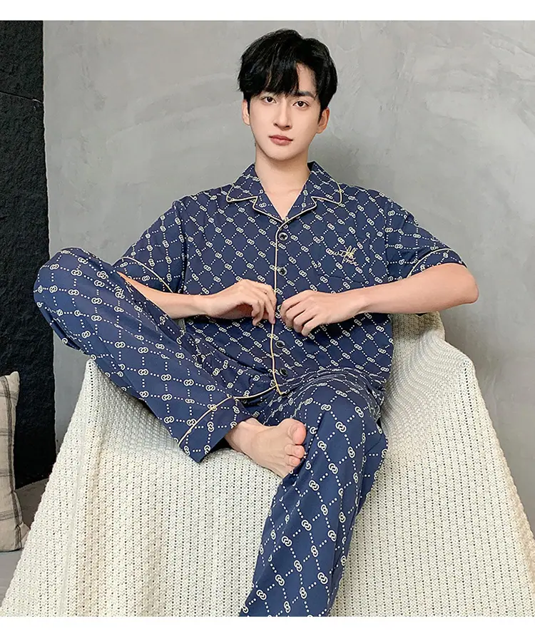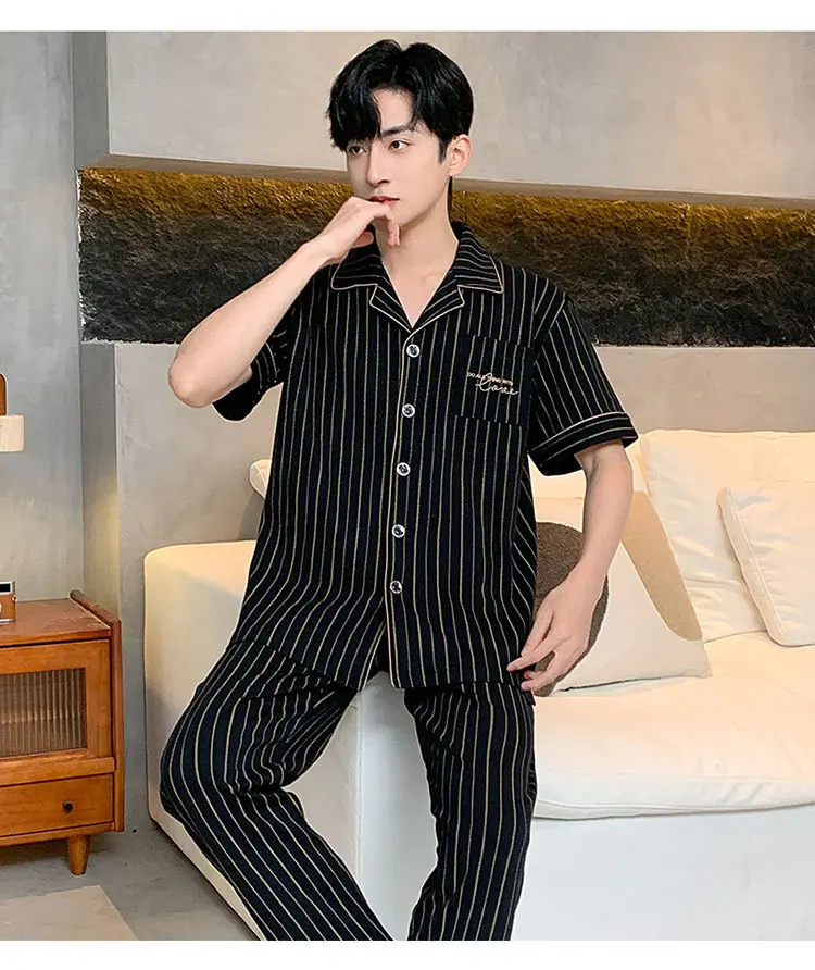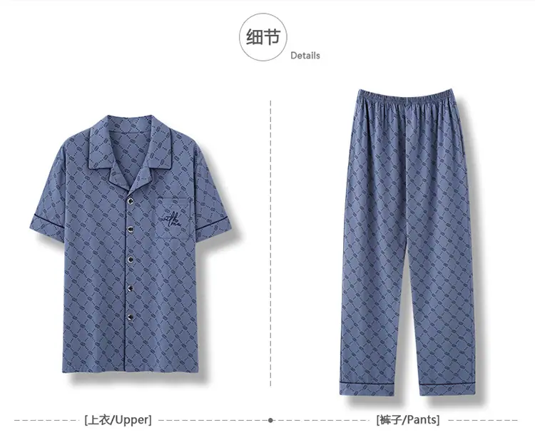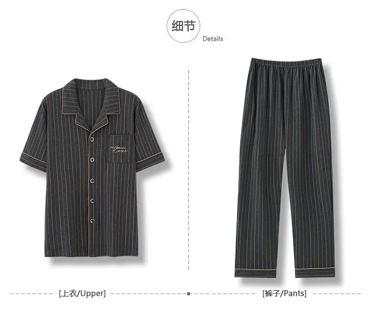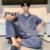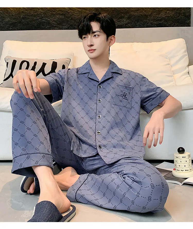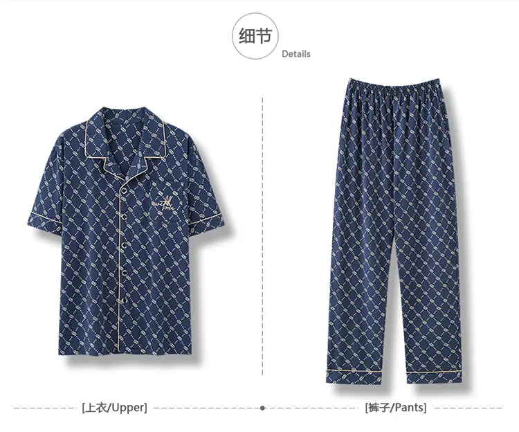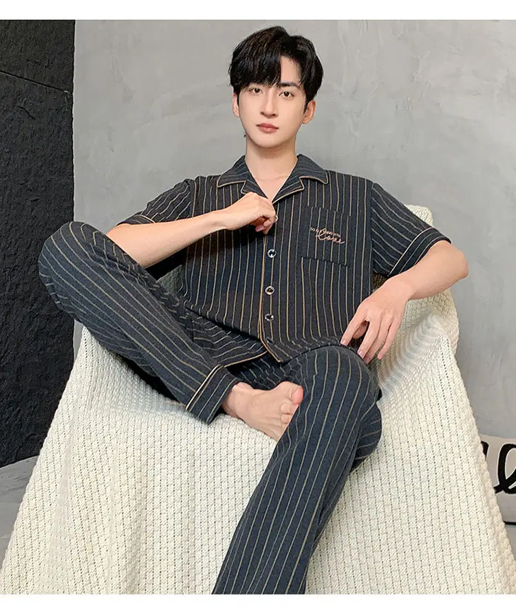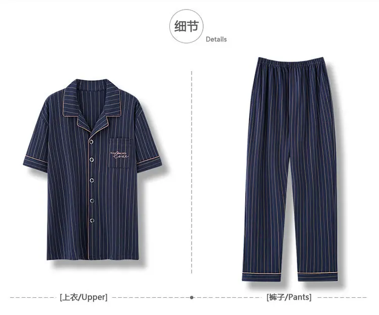 Pijama de Hombre Verano Algodón Manga Corta Pantalón Cuadros Cárdigan Casual Algodón Talla Grande Verano Ropa para el Hogar Conjunto de Dos Piezas