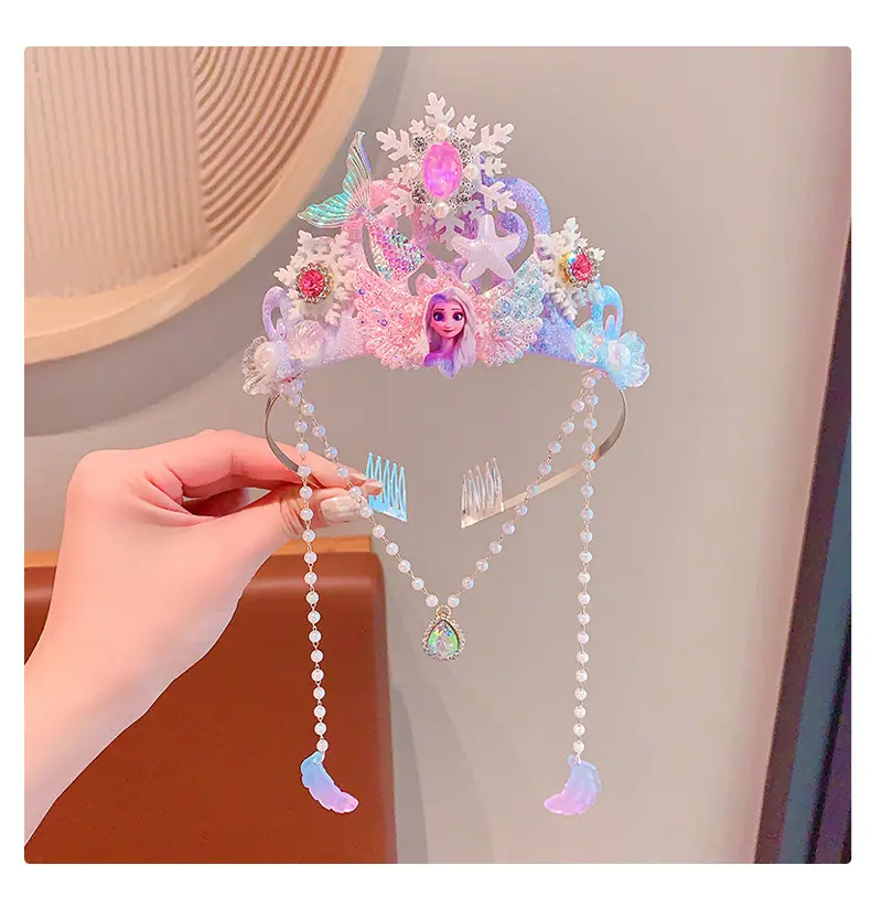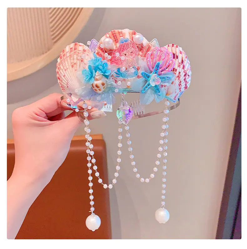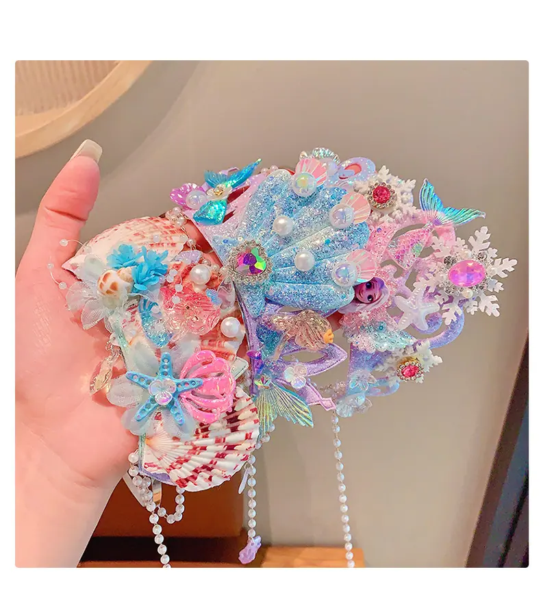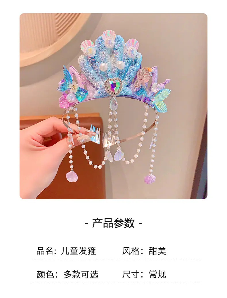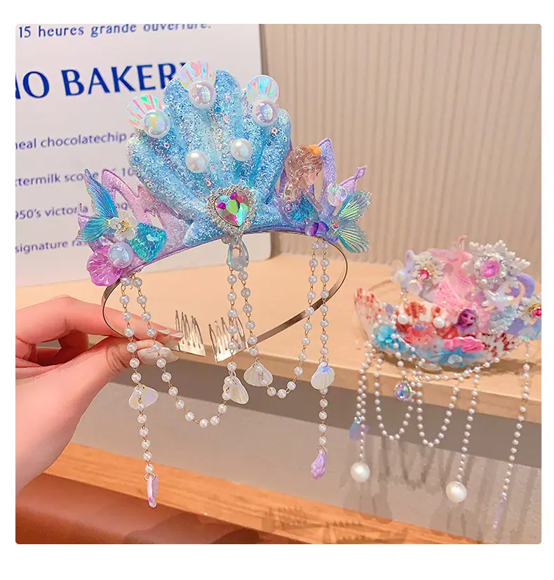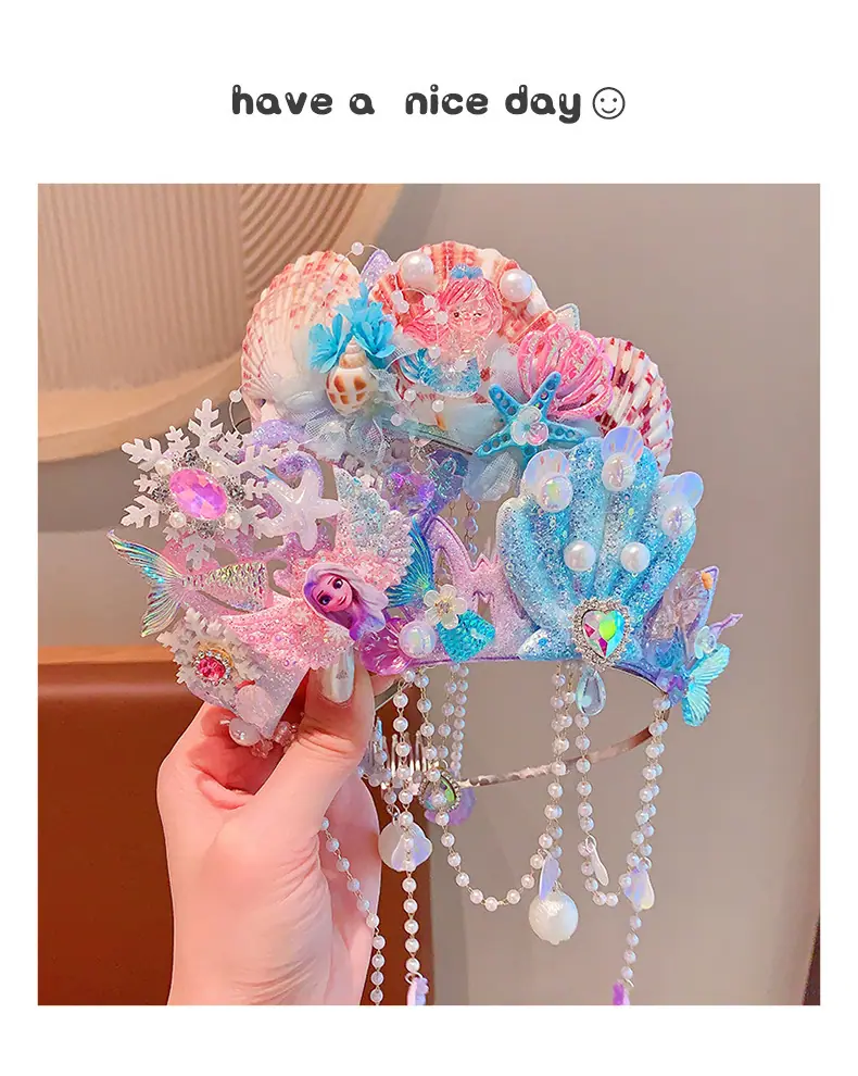 Corona de Princesa Sirena para Niña Diadema Vestido de Actuación para Niños Tocado Accesorios para el Cabello para Niña Cadena para la Frente Accesorios para el Cabello para Danza