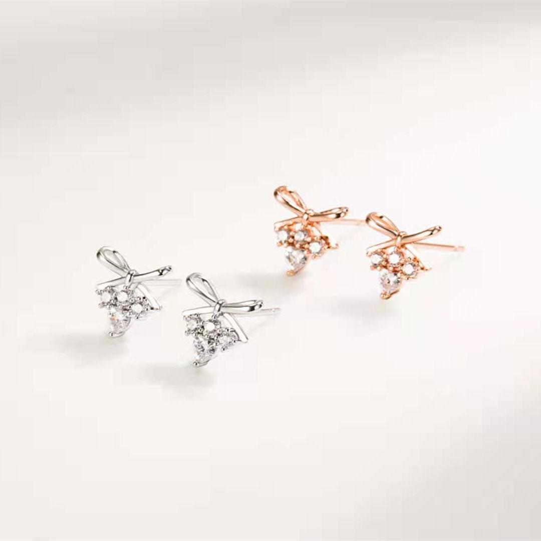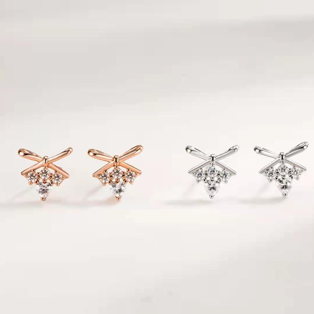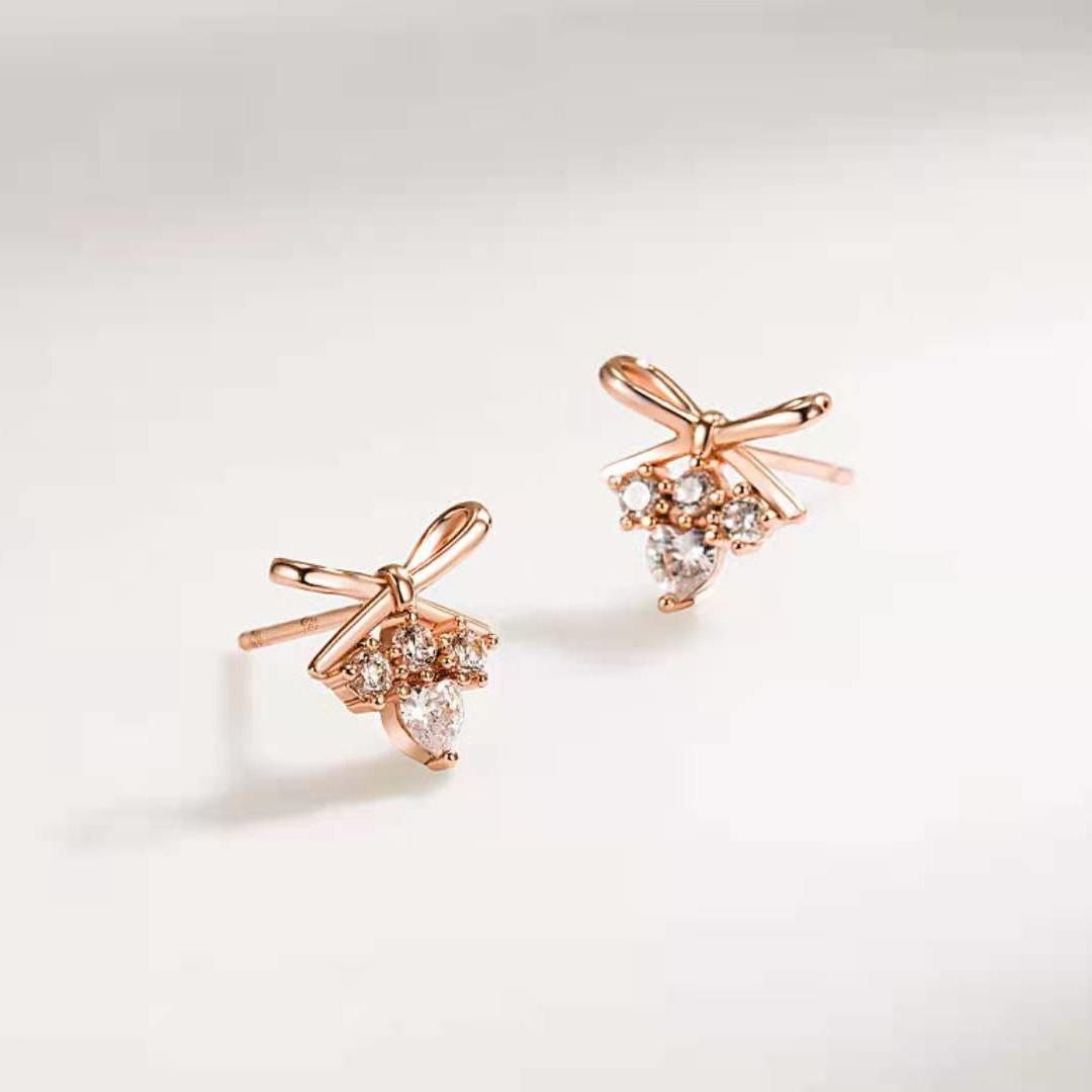 Aretes de lazo de circonita diseño nicho aretes de alta gama para combinar con todo aretes de mariposa de moda de lujo ligero para mujer regalo