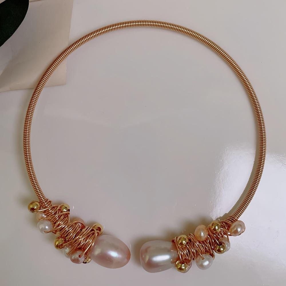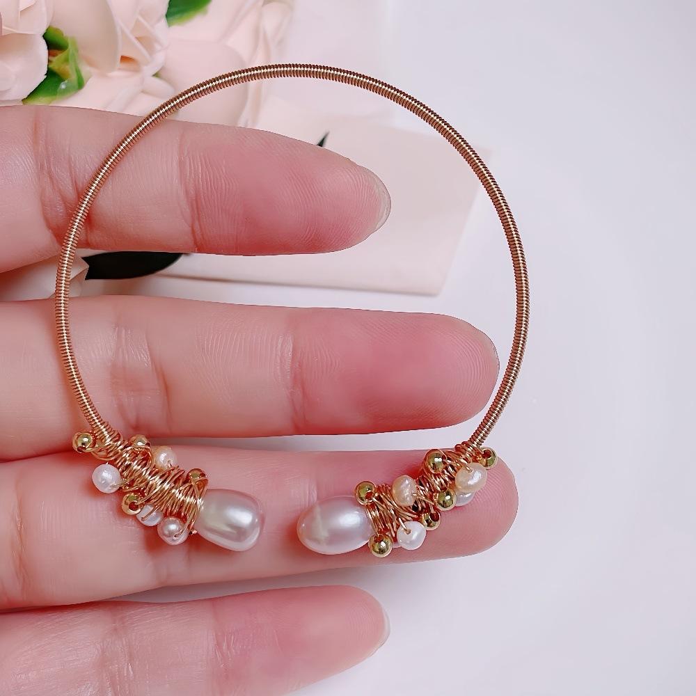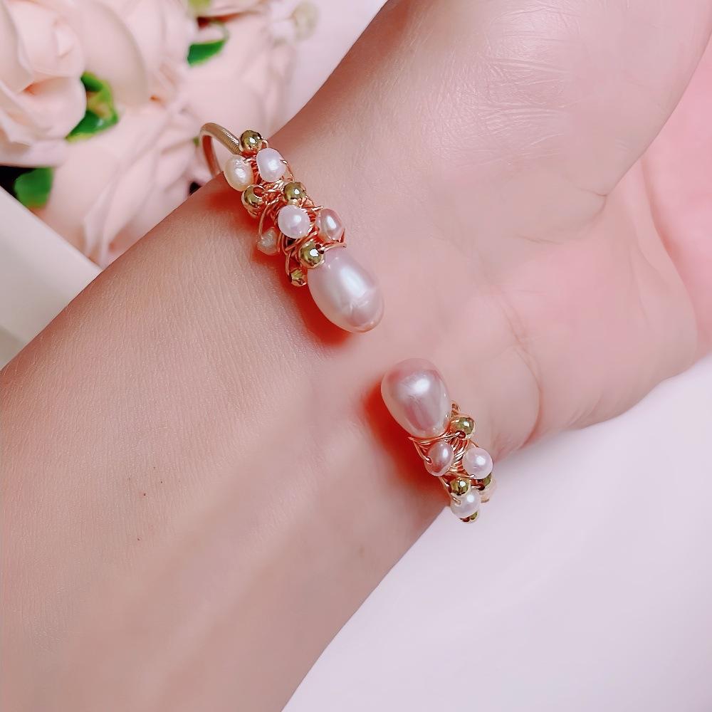 Compra Joyería Transfronteriza Pulsera de Oro Enrollado de Alambre Pesado Pulsera de Cuentas de Arroz Morado Diseño Abierto Estilo Retro Pulsera de Perlas para Mujer al por mayor en Joom.pro