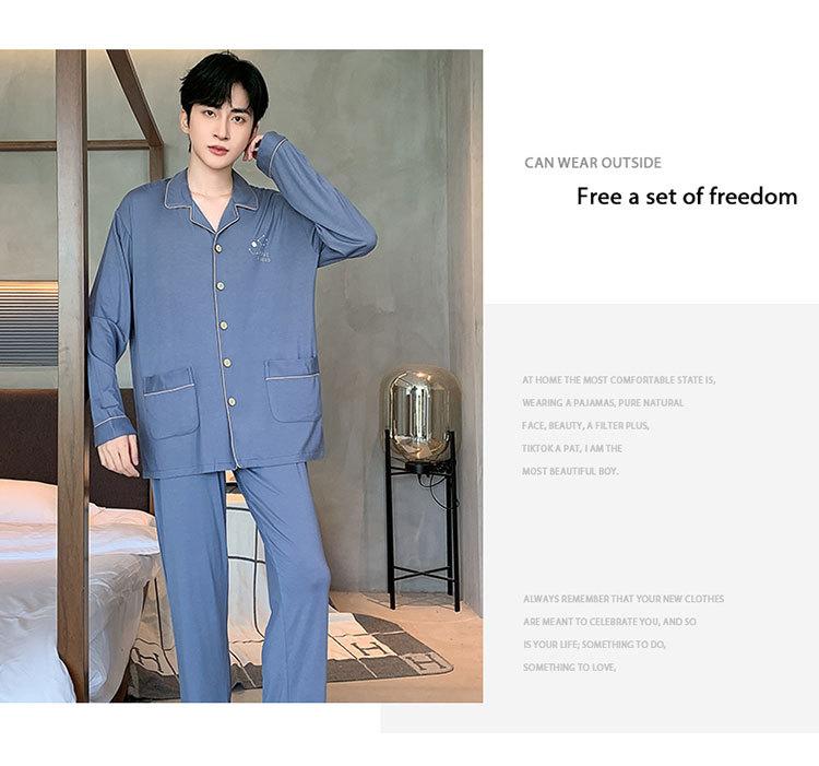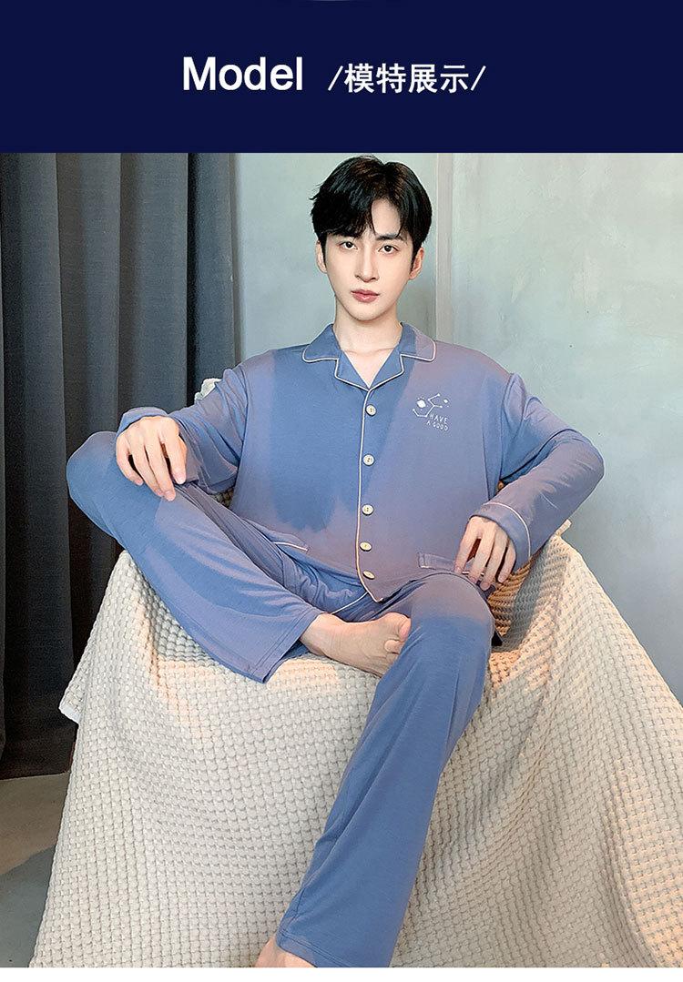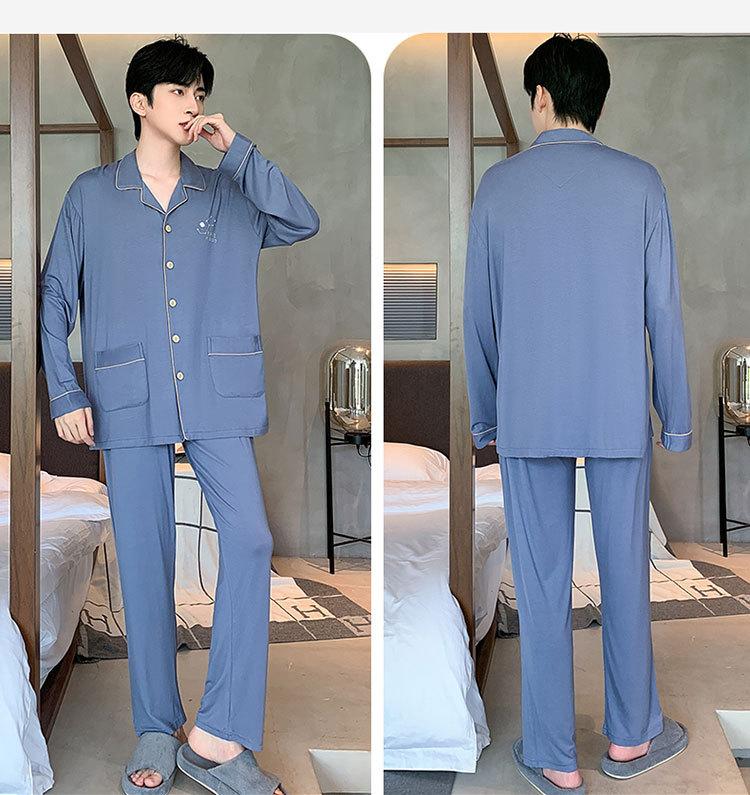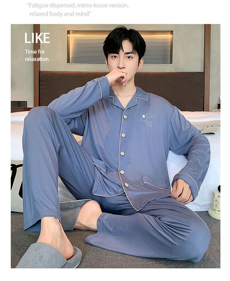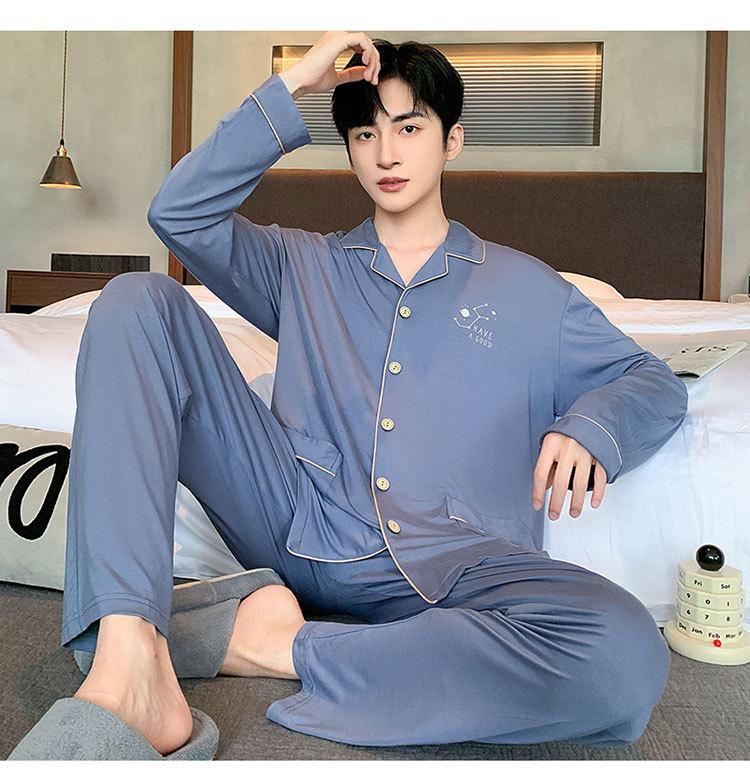 Pijama de Algodón Modal para Hombre Primavera y Otoño Nuevo Manga Larga talla grande Cárdigan Otoño e Invierno Ropa de Casa para Jóvenes para Hombre