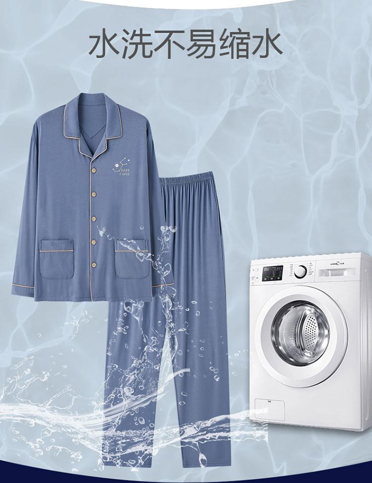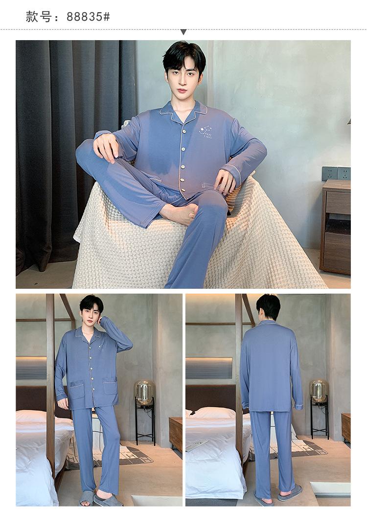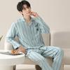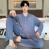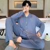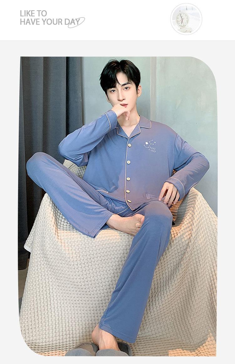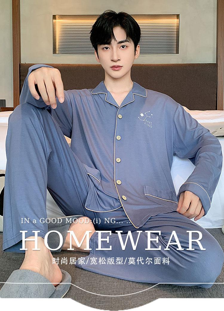 Pijama de Algodón Modal para Hombre Primavera y Otoño Nuevo Manga Larga talla grande Cárdigan Otoño e Invierno Ropa de Casa para Jóvenes para Hombre