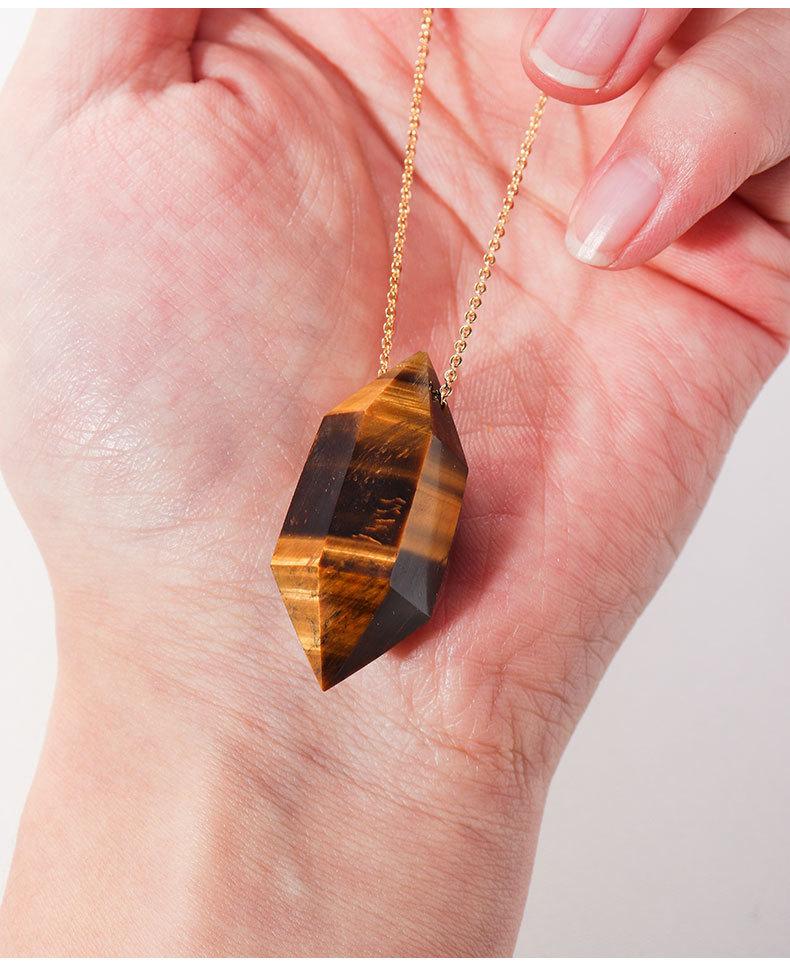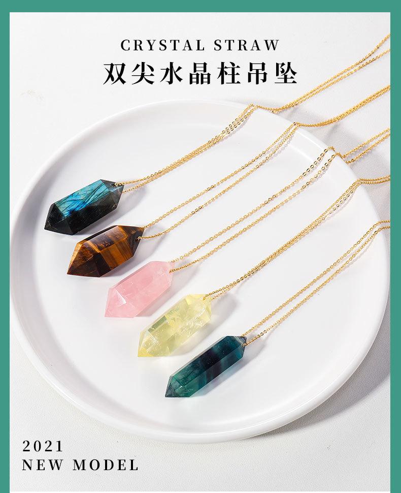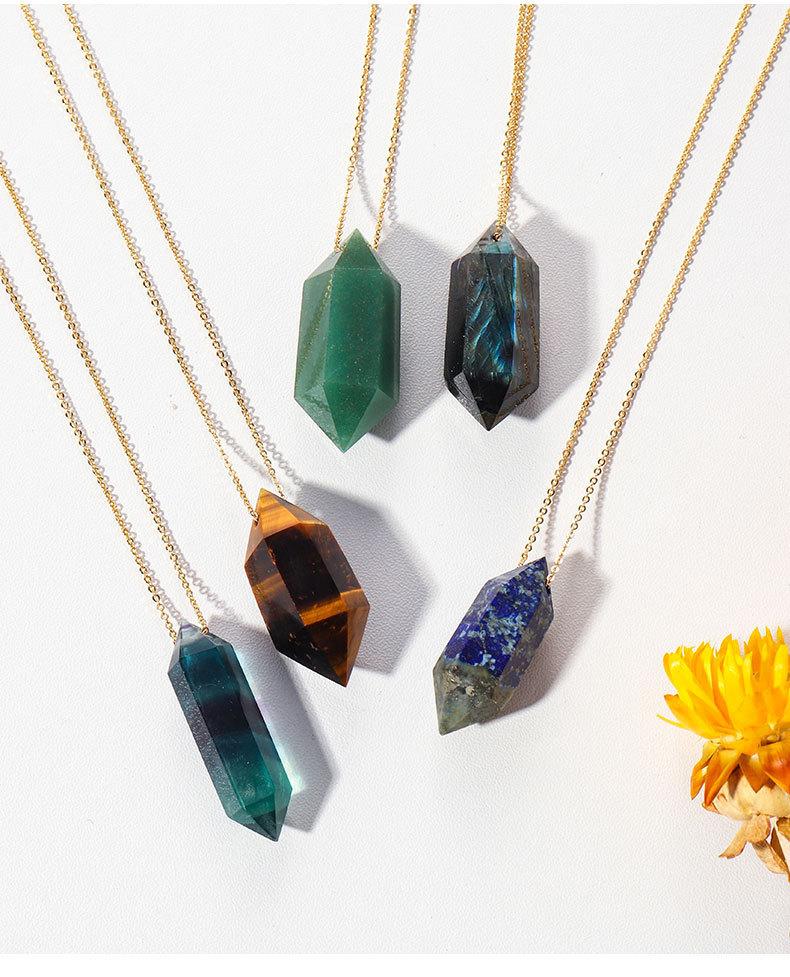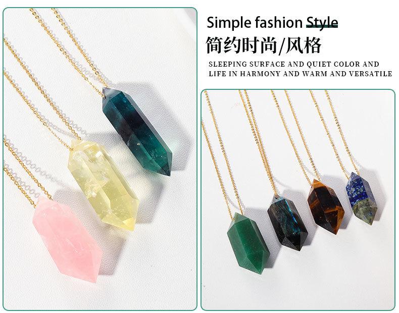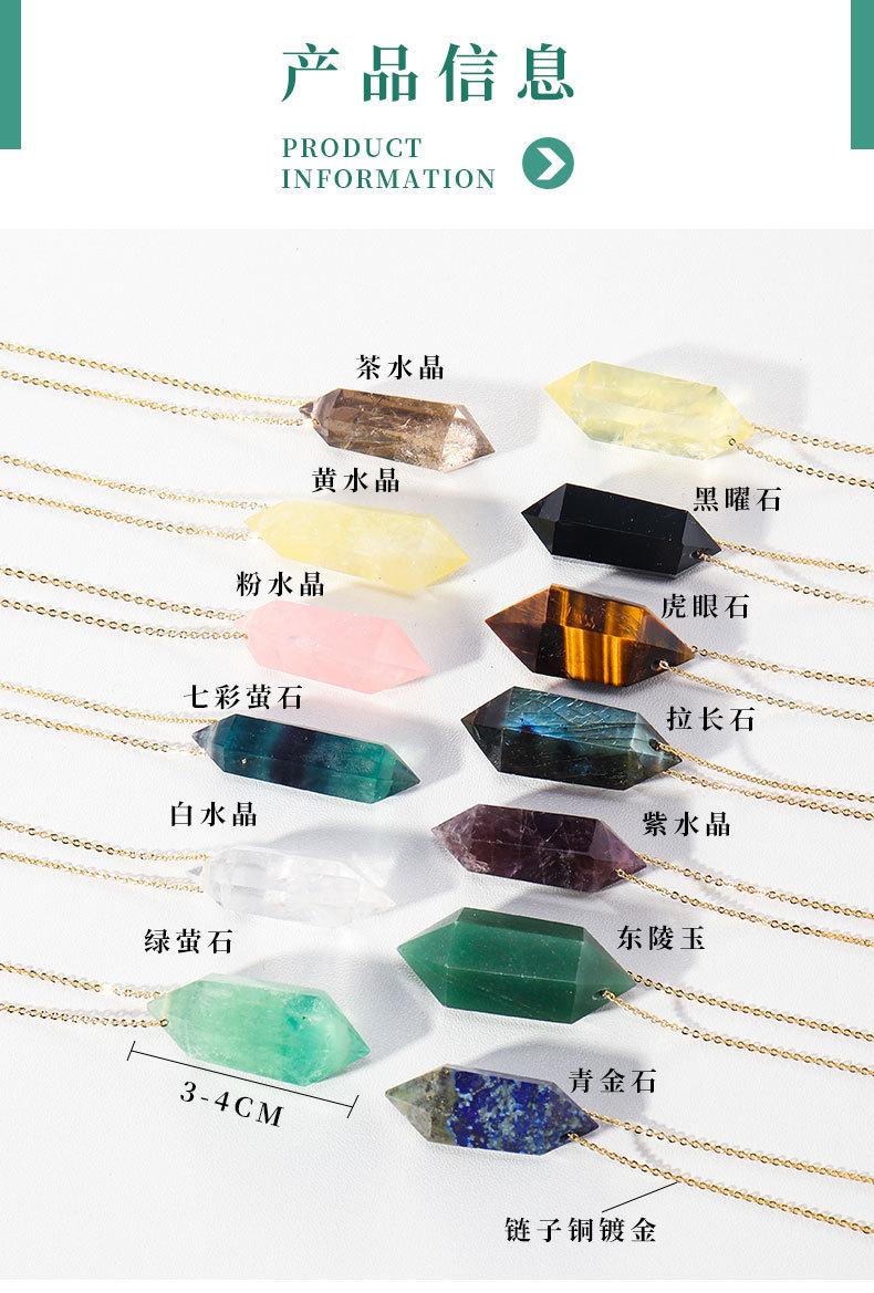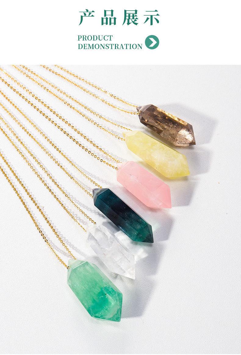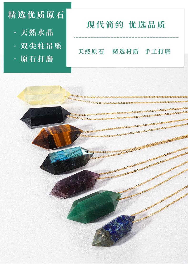Compra Colgante de prisma hexagonal pulido a mano de columna de doble punta de cristal natural transfronterizo, cadena de joyería de collar chapada en oro cobre al por mayor en Joom.pro