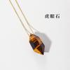 Colgante de prisma hexagonal pulido a mano de columna de doble punta de cristal natural transfronterizo, cadena de joyería de collar chapada en oro cobre
