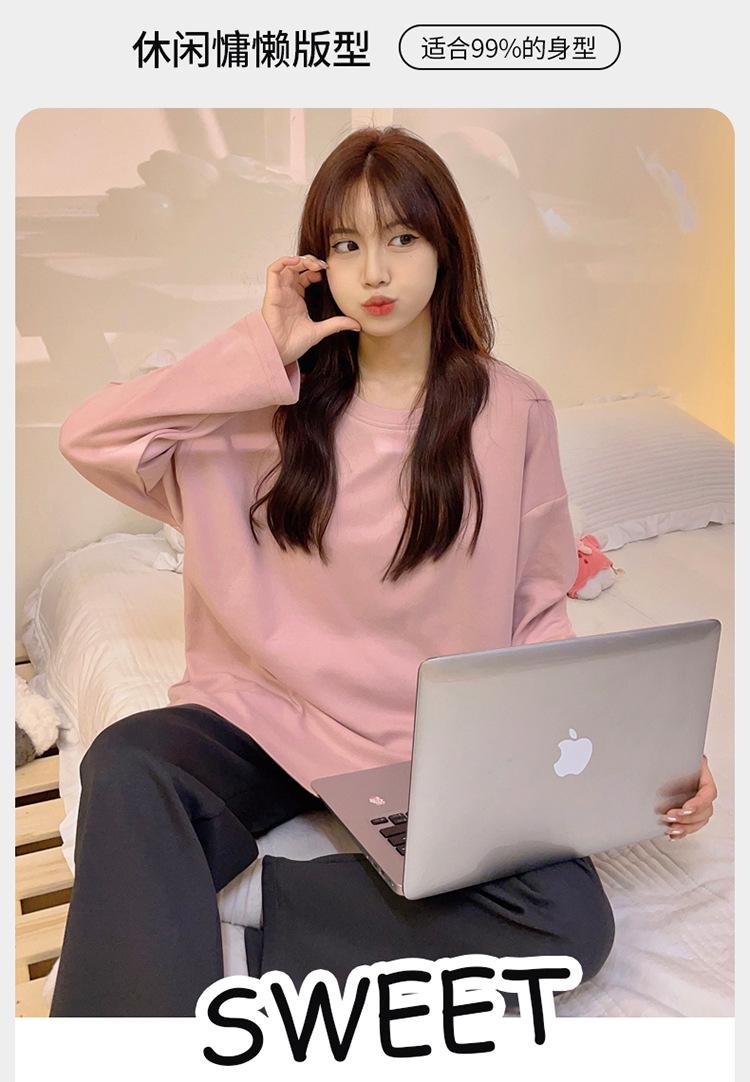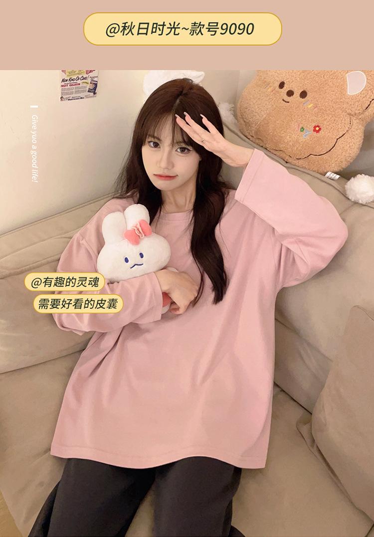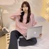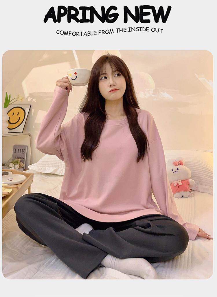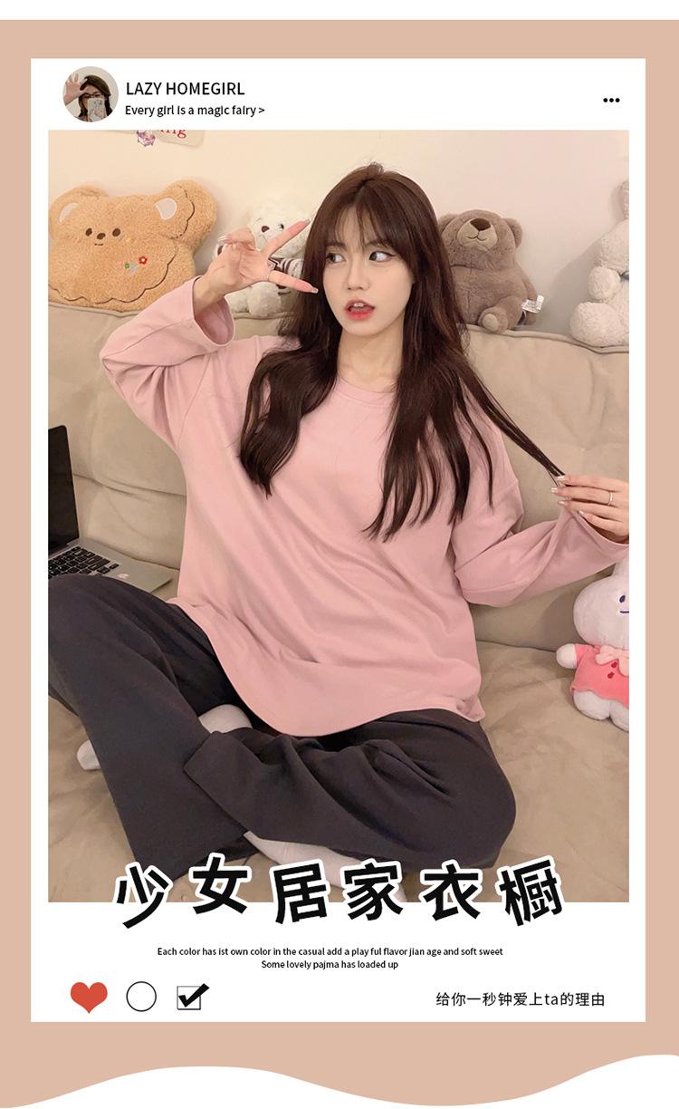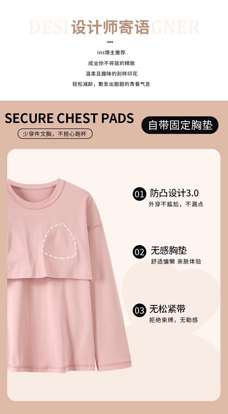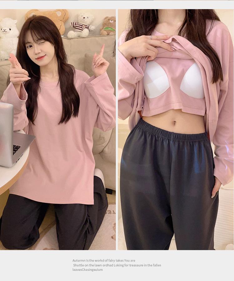 Pijama para mujer con almohadilla en el pecho, ropa de estar por casa para primavera y otoño, conjunto sencillo e informal para niña, traje de manga larga de algodón