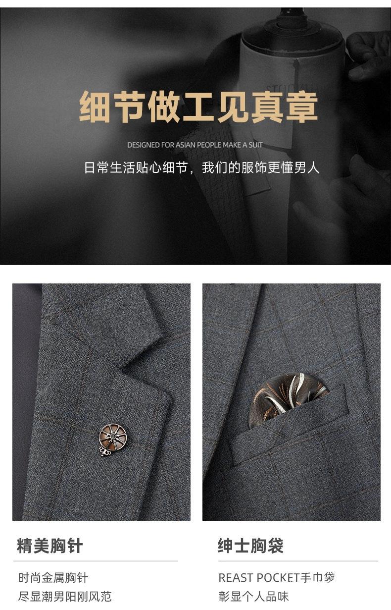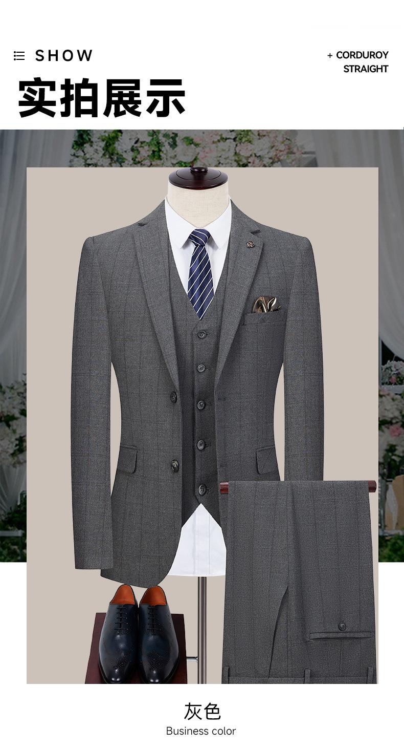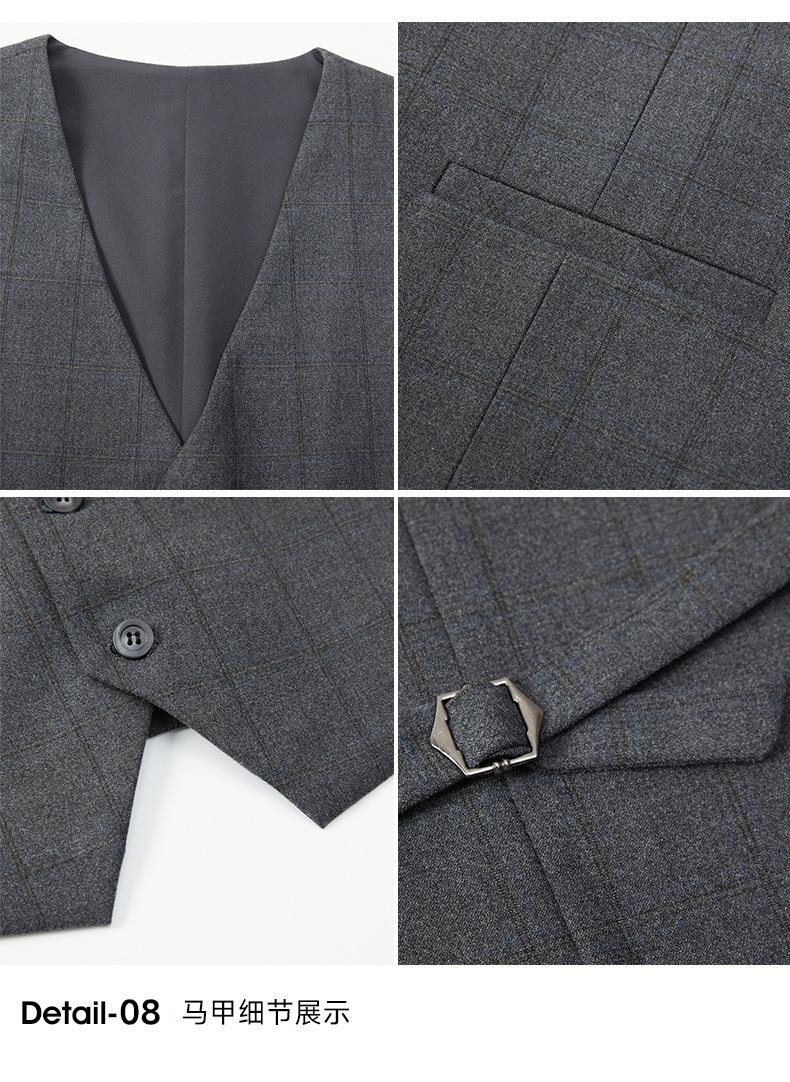 Conjunto de traje de tres piezas a cuadros 2025 para hombre, traje de corte slim fit para hombre, ropa profesional casual de negocios ligera estilo coreano sin planchado