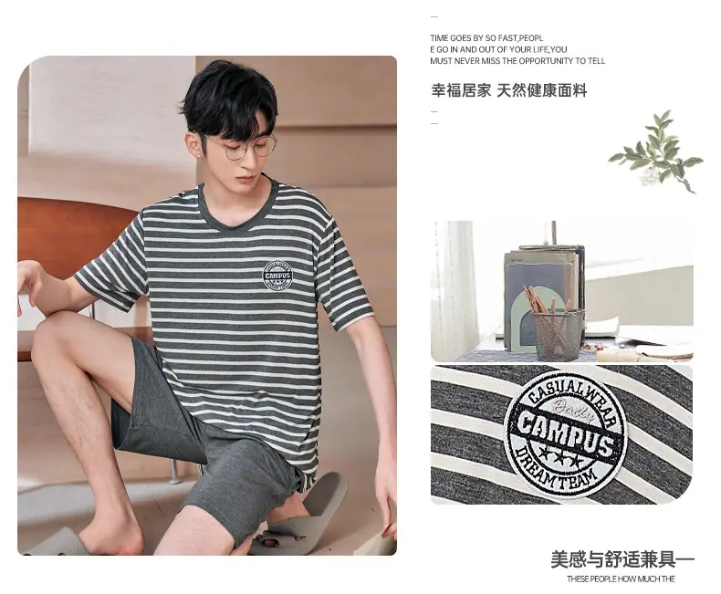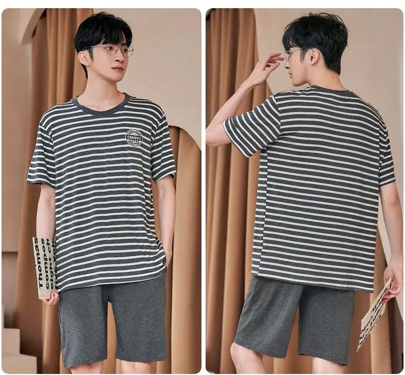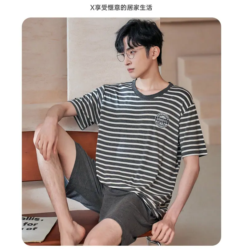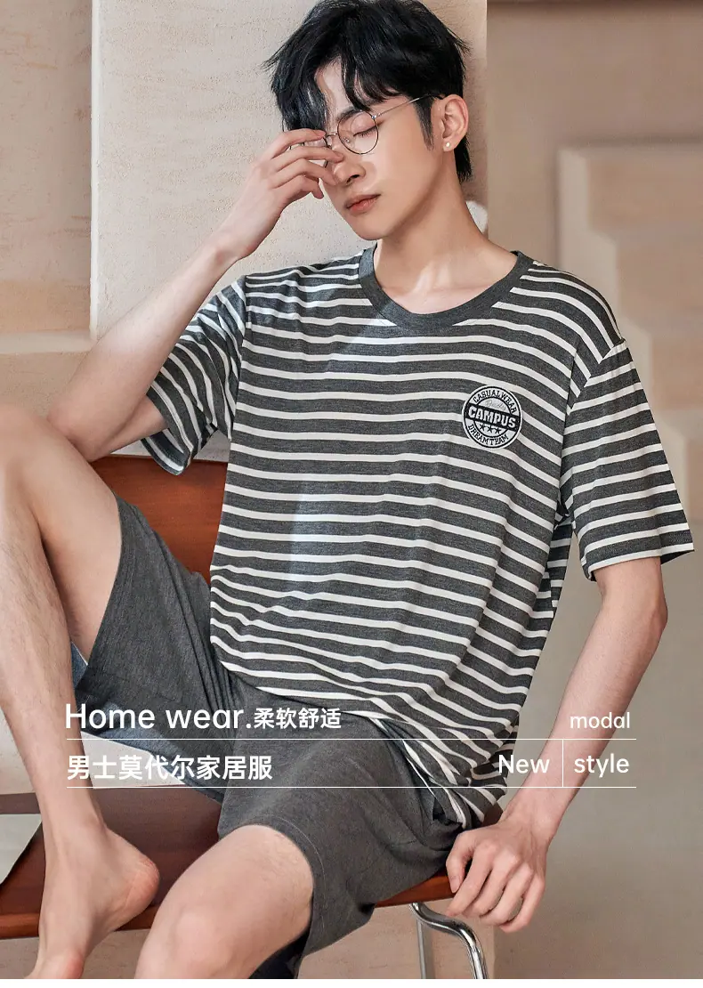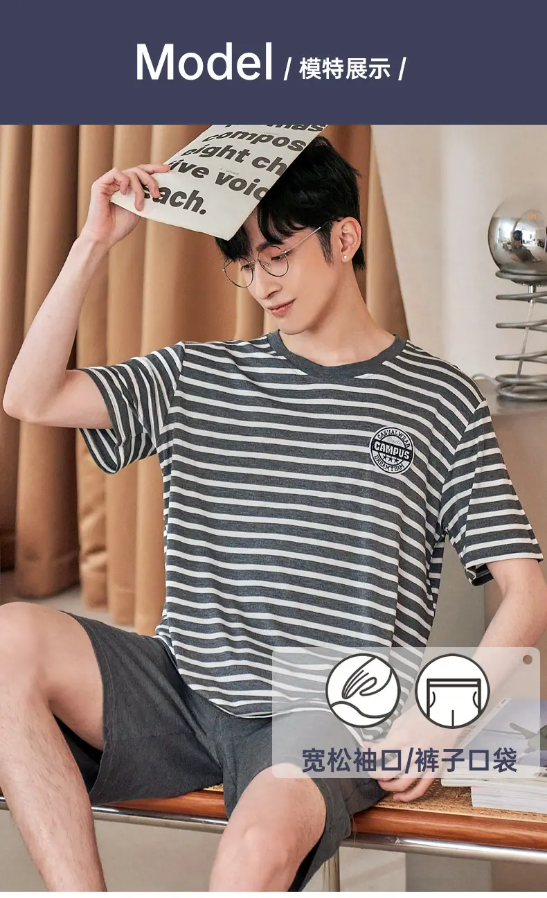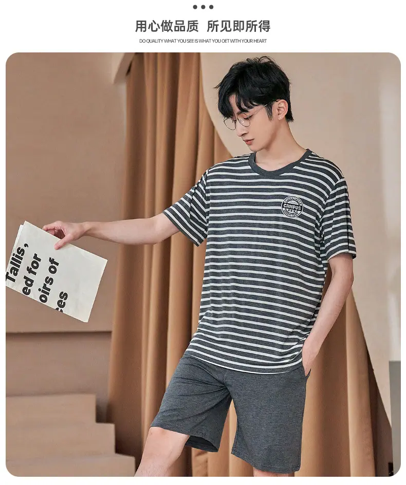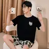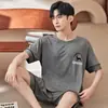 Pijama para Hombre de Verano de Manga Corta Modal Se Puede Usar Afuera Delgada Casual Verano Holgada Conjunto de Ropa de Casa para Hombre