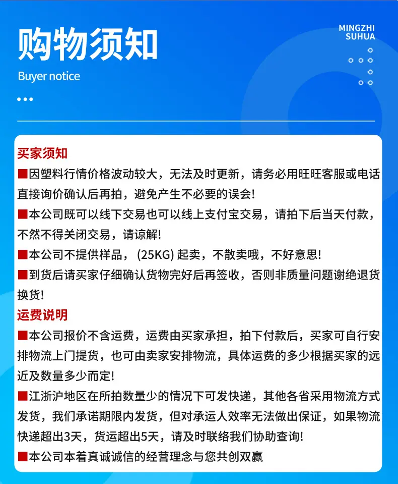 | | Polipropileno PP de alta transparencia y alto brillo Shanghai Petrochemical M800E moldeo por soplado por estiramiento por inyección para accesorios de alimentación y cuidado médico | | | ¥7.50 Haga clic para comprar | | | | | | | | PC Lihua Yiweiyuan WY-111BR grado inyección azul transparente fondo electrodomésticos suministros de oficina equipo | | | ¥8.00 Haga clic para comprar | | | | | | | | PP Ningbo Donghua Energy (antes Fuqi) PPHY26 grado moldeo por inyección alta resistencia para fibra materias primas de polipropileno | | | ¥6.90 Haga clic para comprar | | | | |