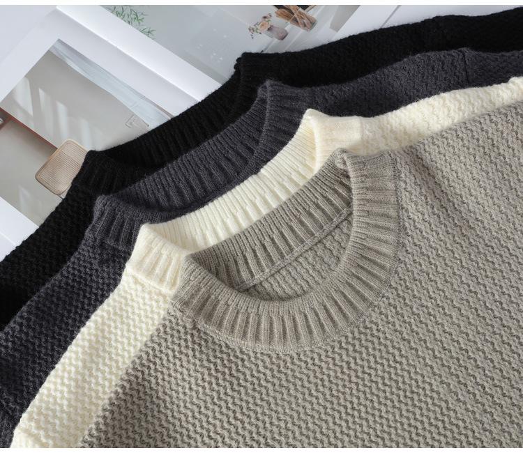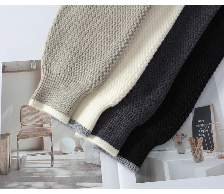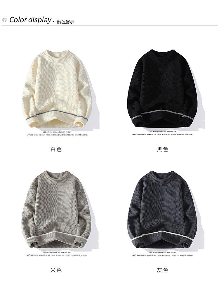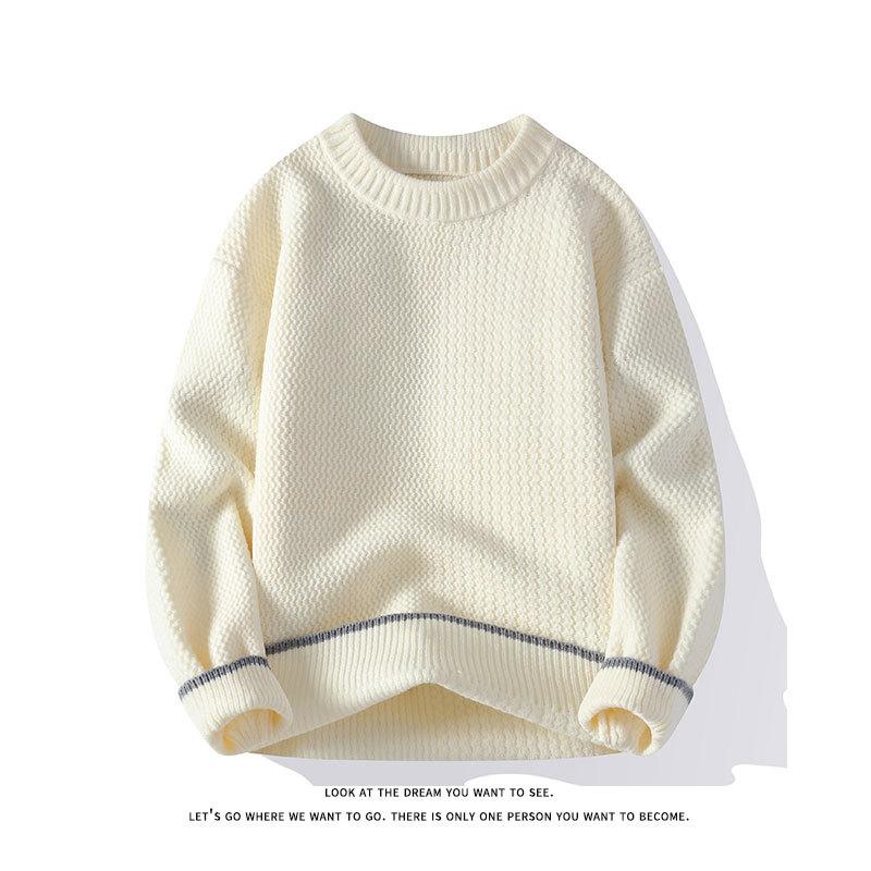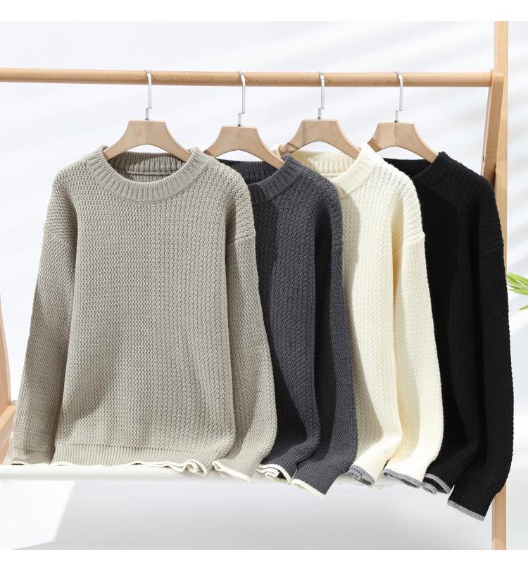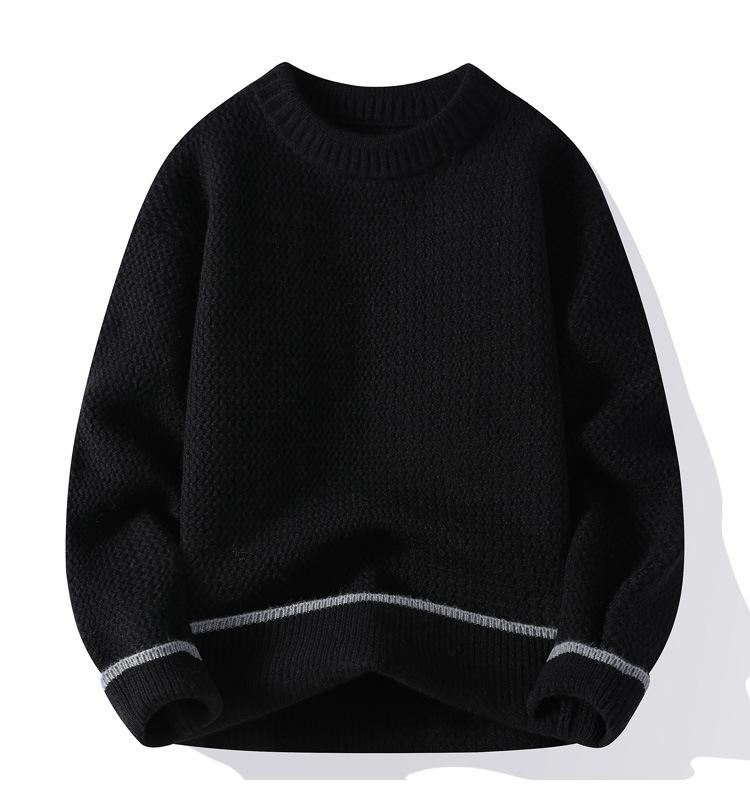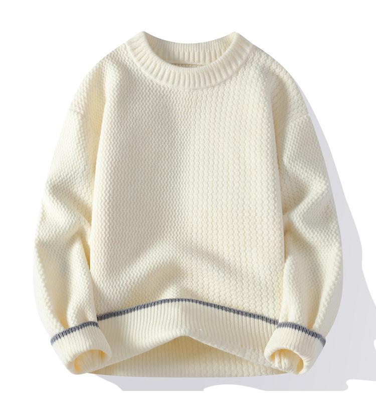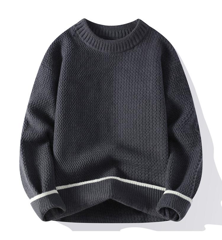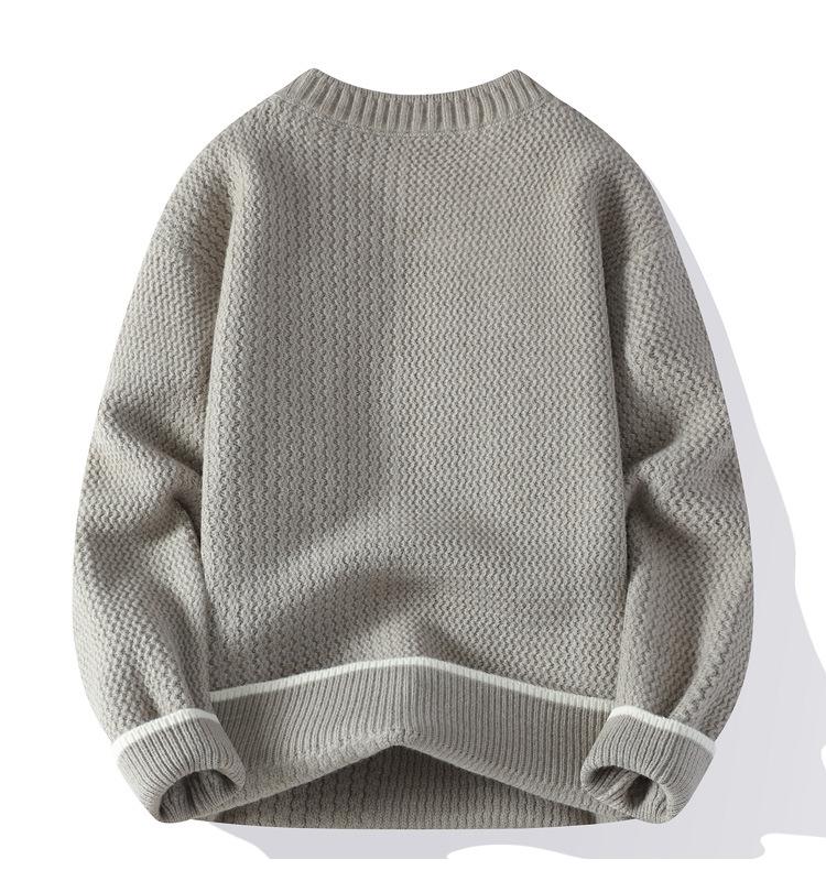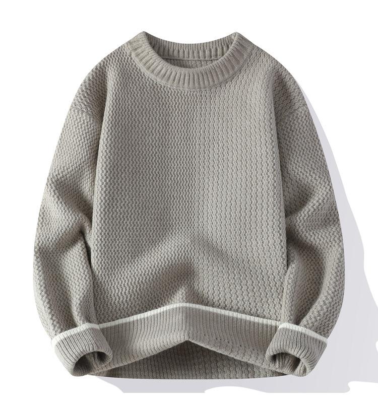 Nuevo punto de punto para hombre transfronterizo 2025 de manga larga y cuello redondo, suéter grueso de punto, camisa básica de punto con bloques de color para hombre