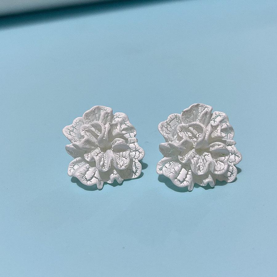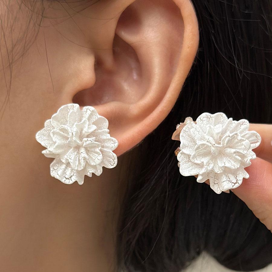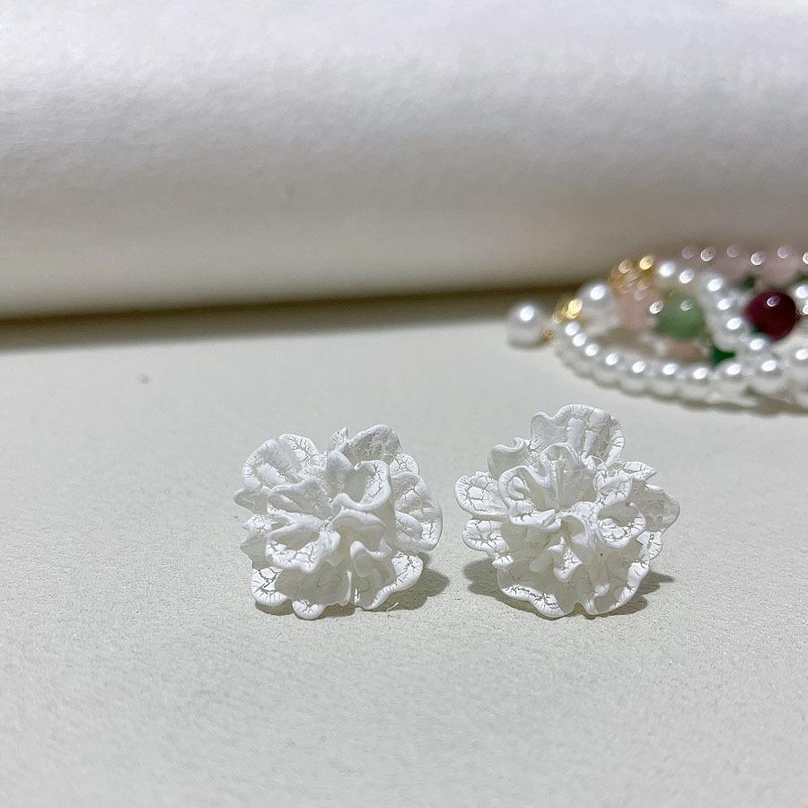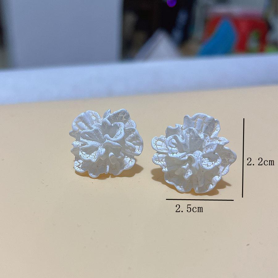 Compra Nuevos Aretes Versátiles de Tuerca con Flor de Camelia Blanca con Volantes Estilosa, Temperamento Nicho, Simple y Linda al por mayor en Joom.pro