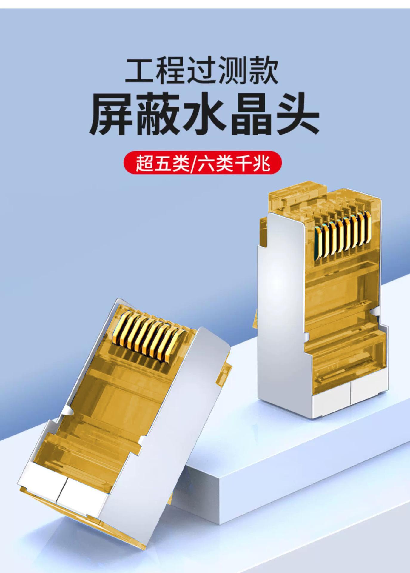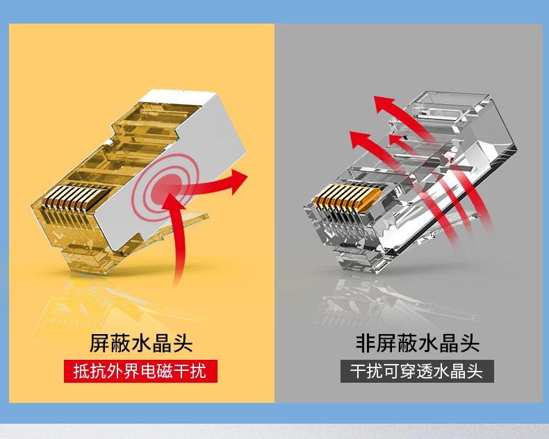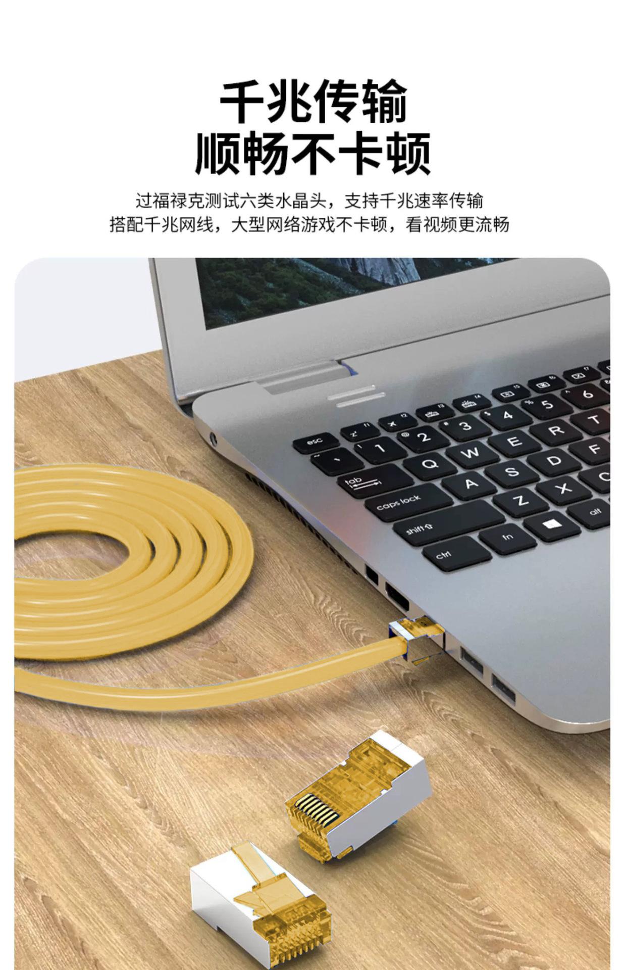 Conector de Cable de Red Rj45 Cat6 Ftp Amarillo Categoría 6E Cobre Puro Apantallado 8P8C Cabezal de Cristal Amarillo