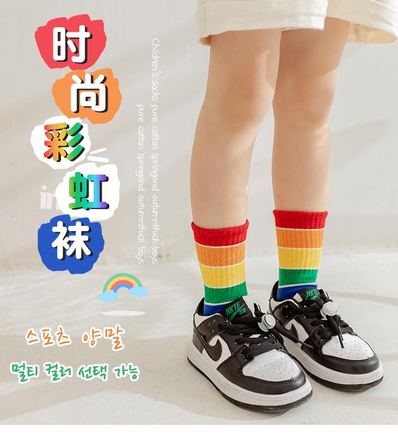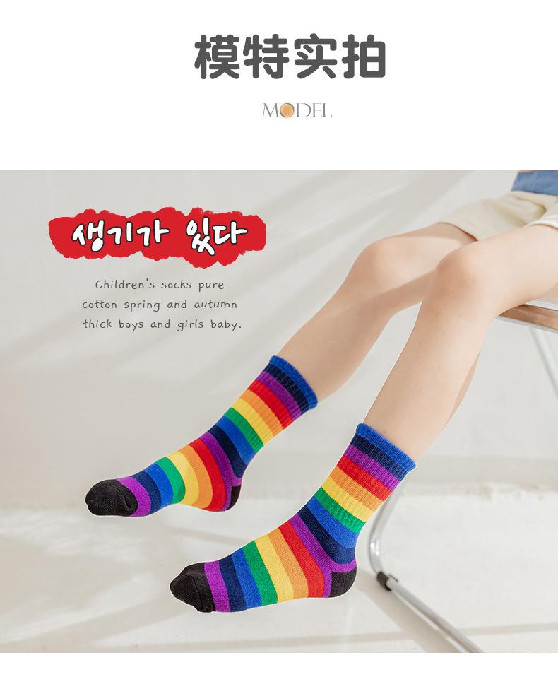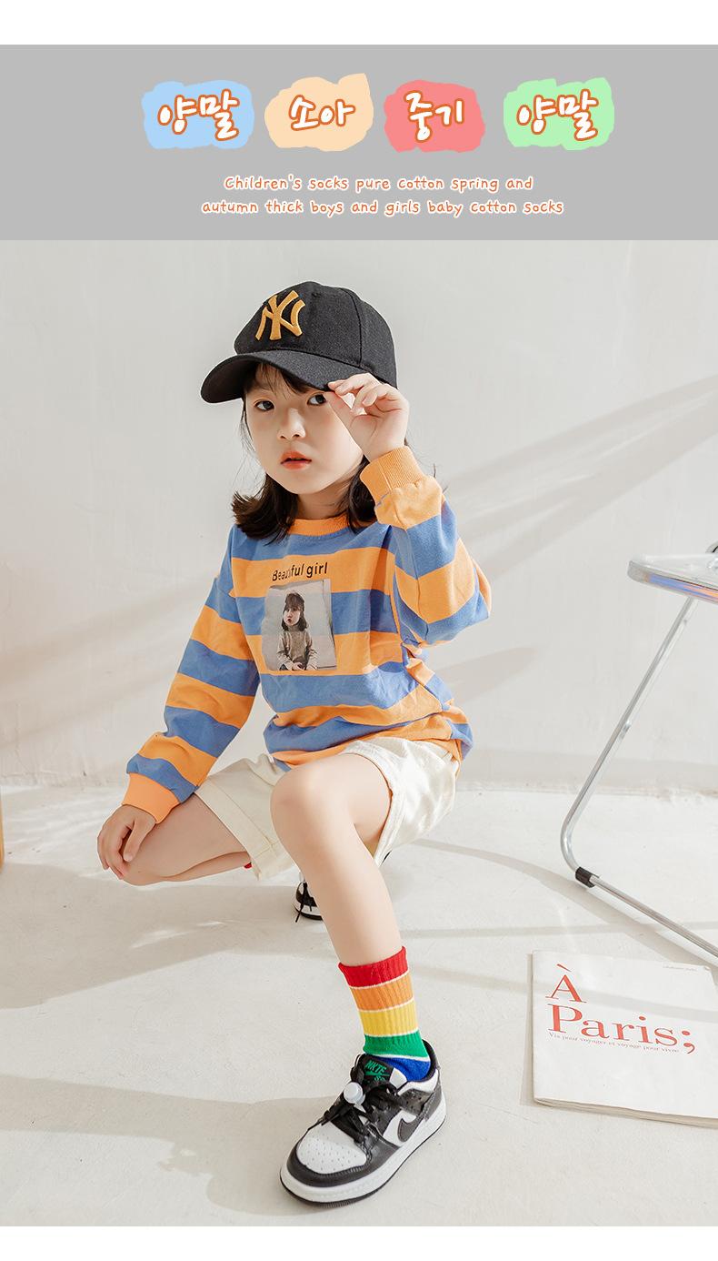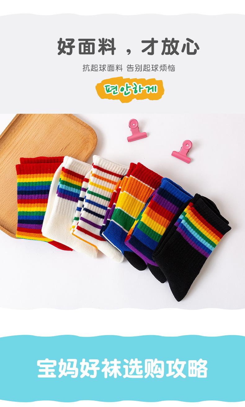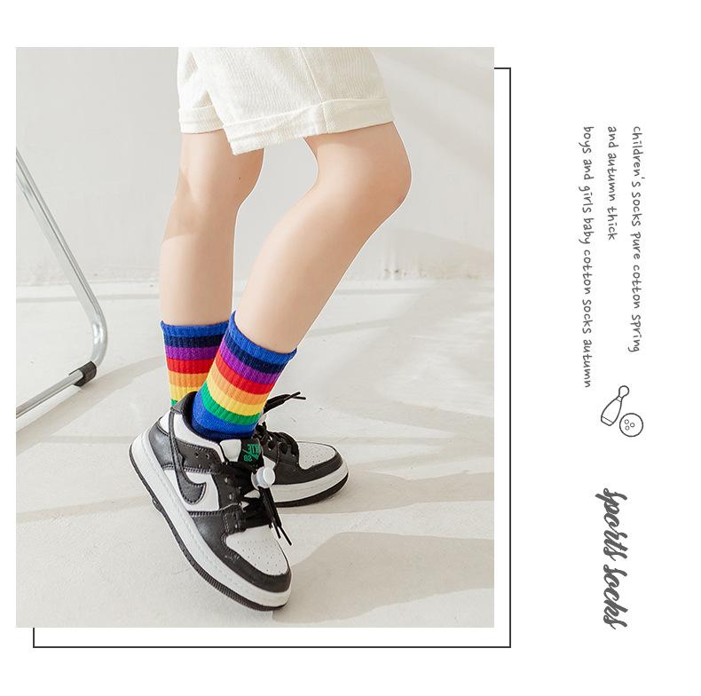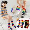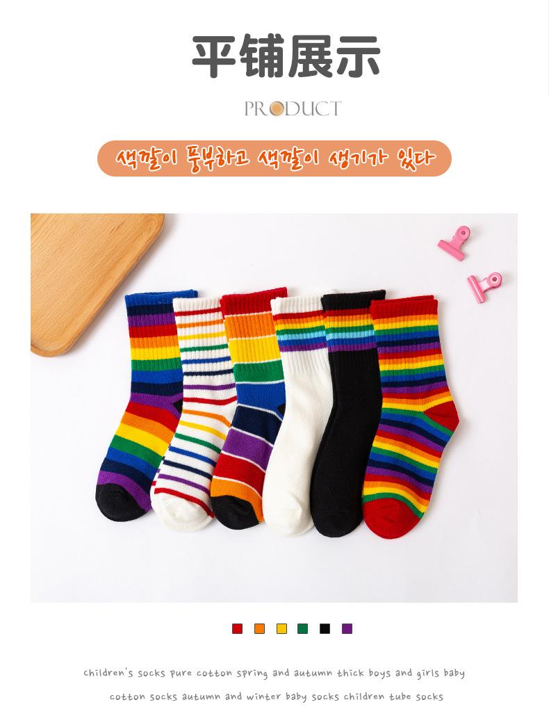 Compra Calcetines para niños, Calcetines de algodón para primavera y otoño, Calcetines hasta la mitad de la pantorrilla a rayas de arcoíris, Calcetines de estudiante con letras, Calcetines largos de princesa para niñas para otoño e invierno al por mayor en Joom.pro