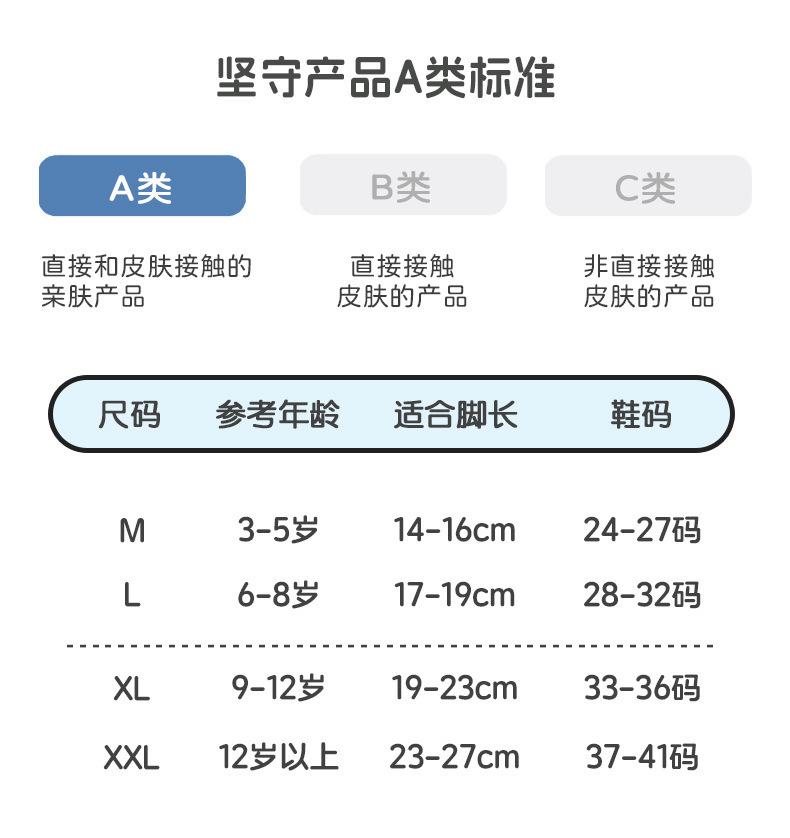 M (3-5 years old), L (6-8 years old), XL (9-12 years), XXL (Age 12+)