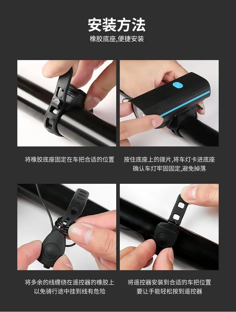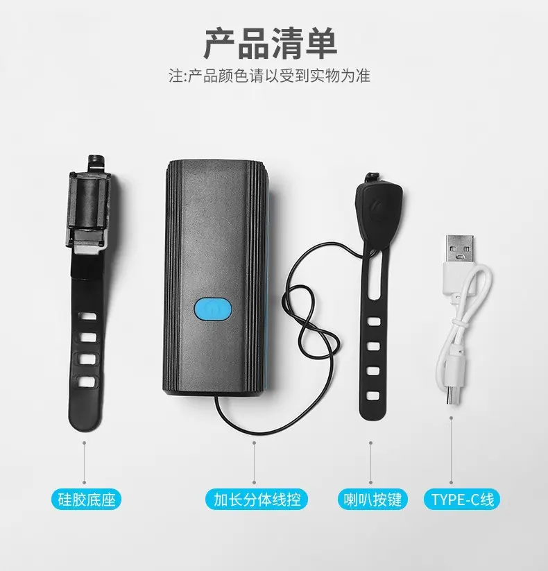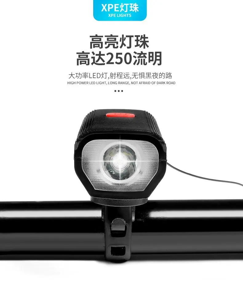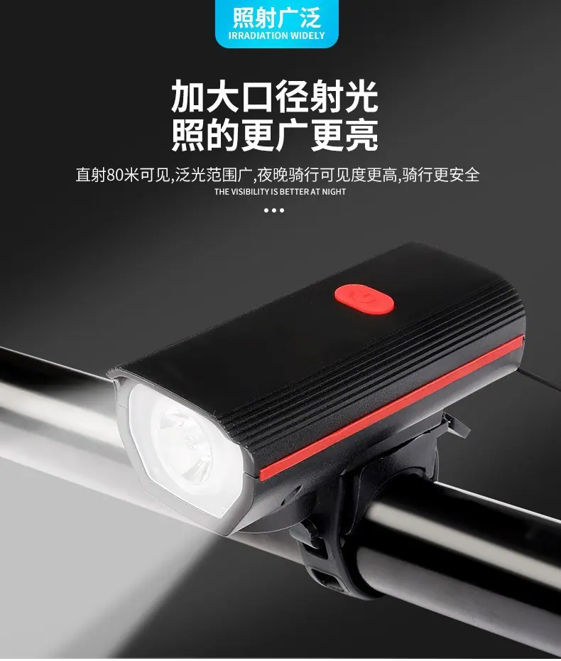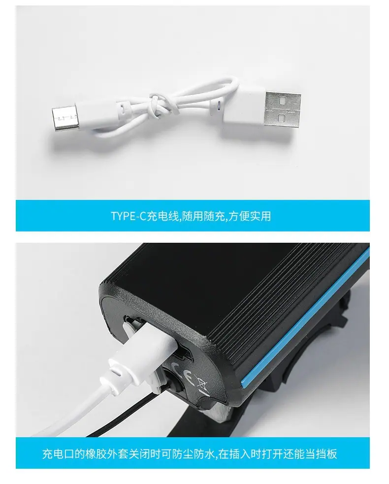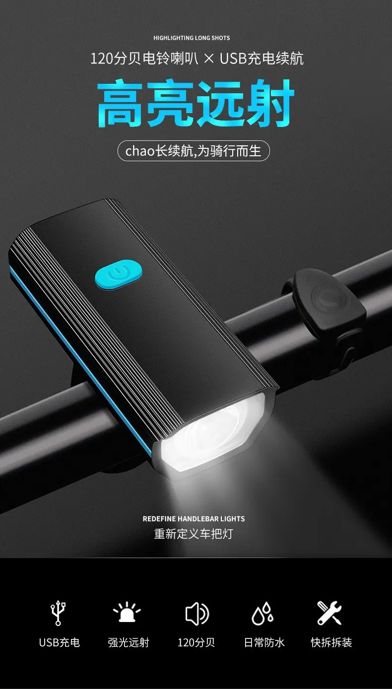 Luz de bicicleta, faro, bicicleta de montaña, paseo nocturno, carga, luz fuerte, linterna, carga USB, bocina, luz, equipo de conducción