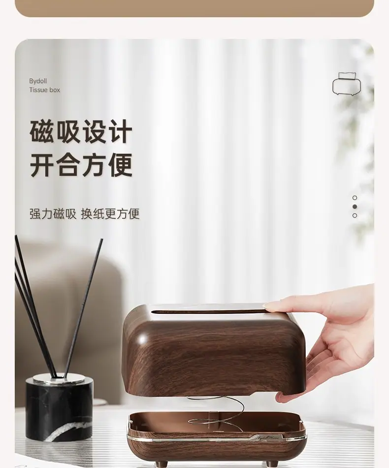 Caja de pañuelos de escritorio para sala de estar, estilo chino, mesa de centro, dormitorio, lujo ligero para el hogar, primavera, succión magnética, almacenamiento para control remoto, caja de pañuelos