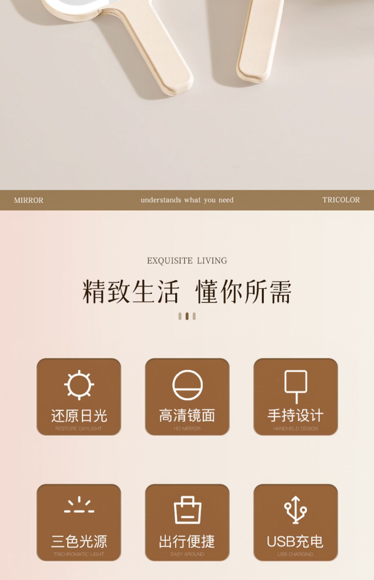 Nombre del producto: Espejo de Maquillaje LED de Mano