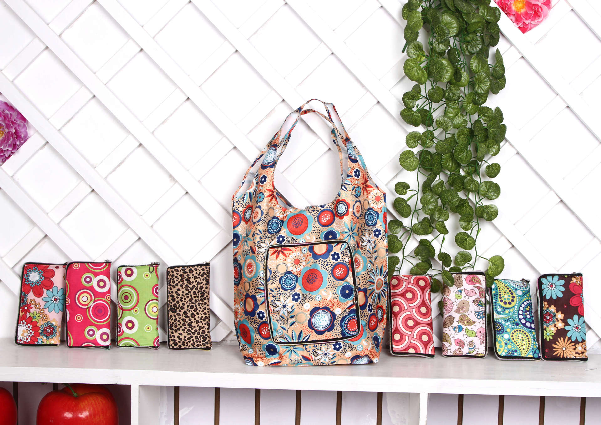 Bolsa de compras de regalo al por mayor personalizada supermercado bolsa de compras no tejida bolsa de compras plegable de poliéster estampada