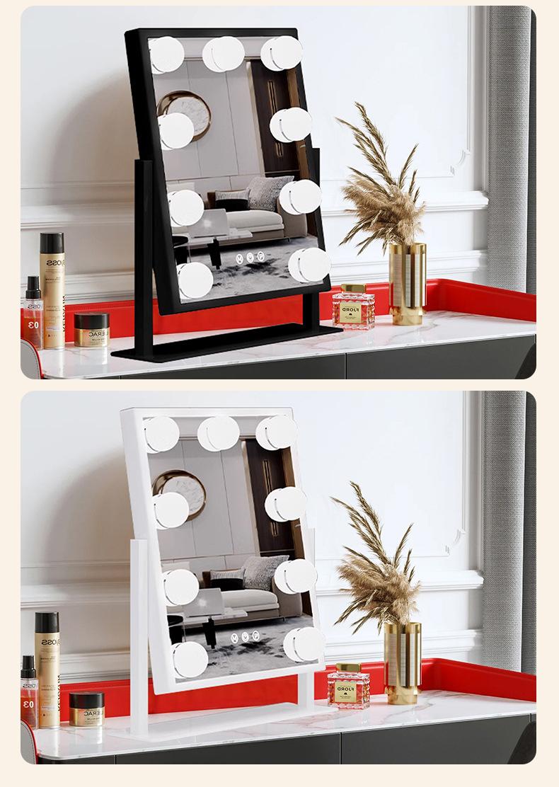 Espejo de tocador multifuncional Espejo de maquillaje LED con luz Oem de escritorio giratorio para dormitorio Espejo de escritorio Espejo de maquillaje