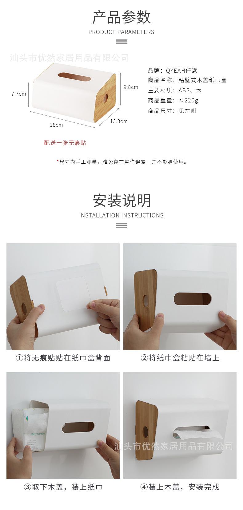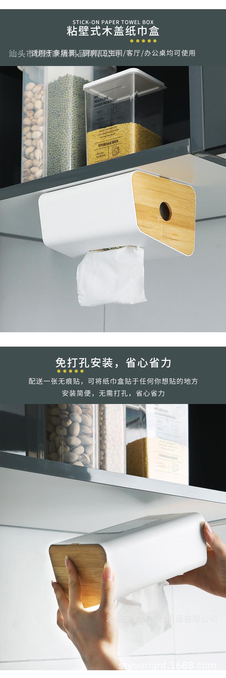 Nombre del producto: Caja de pañuelos de pared con tapa de bambú