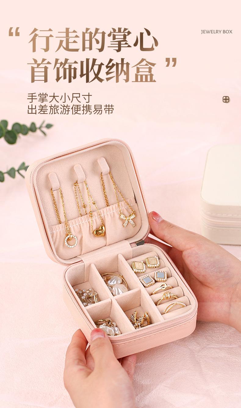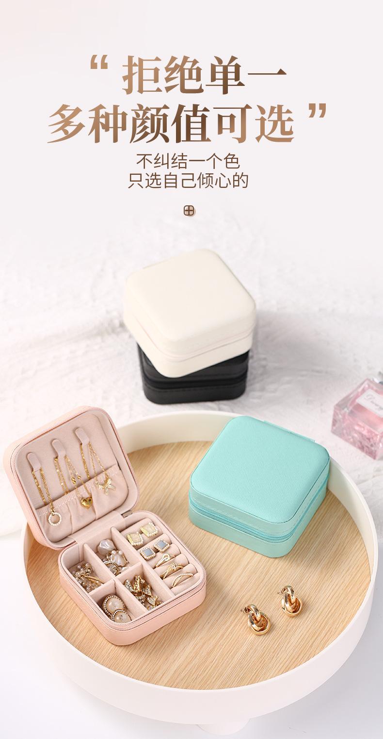 Caja de almacenamiento de joyas ins viaje aretes collar anillo almacenamiento joyero viaje cuero suave