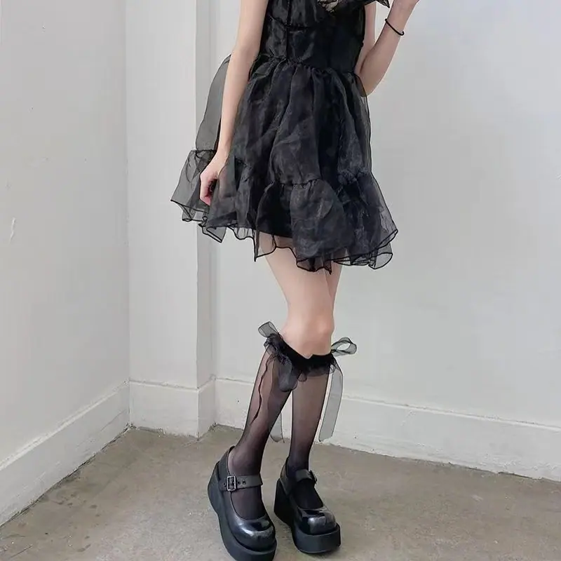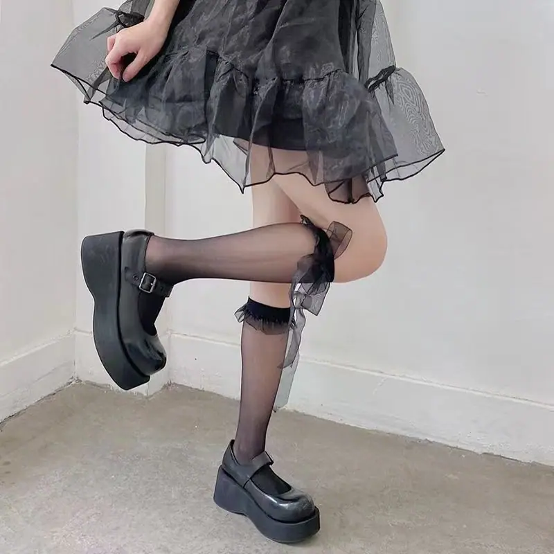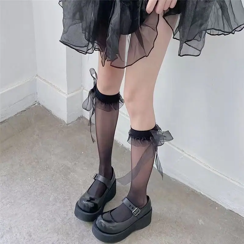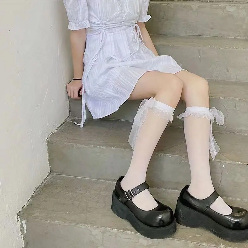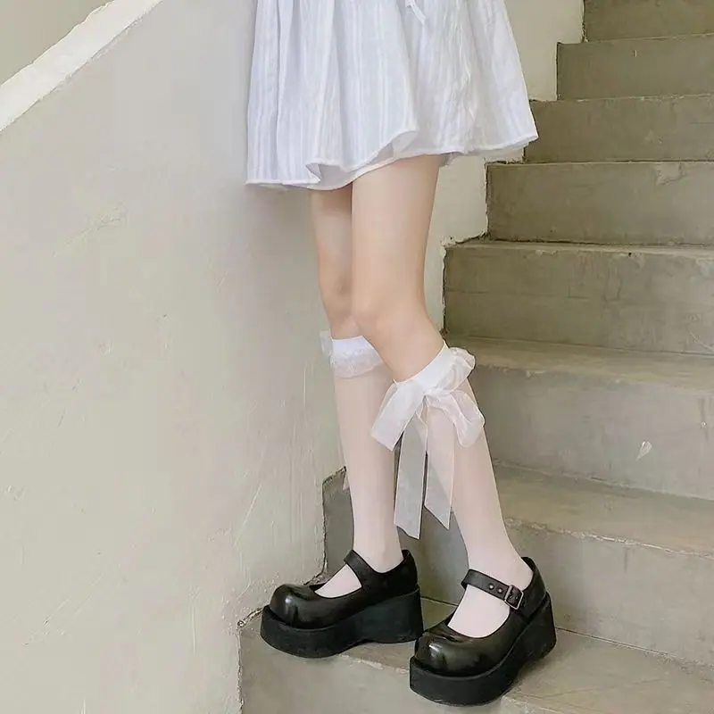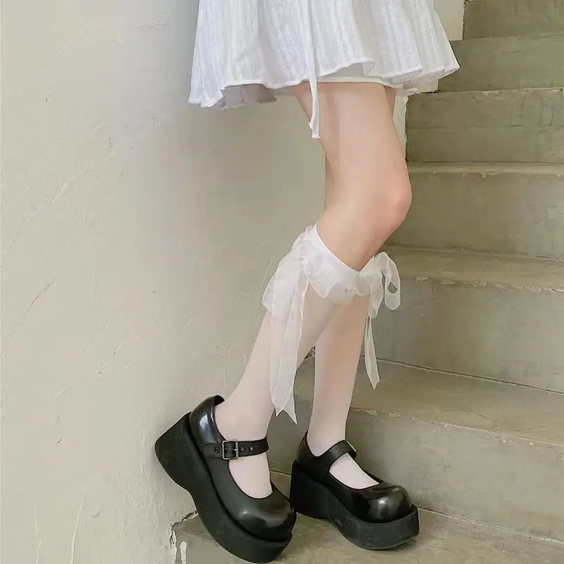 Venta al por mayor Lolita Cordones Lazo de Cinta de Satén Pesado Calcetines hasta la Rodilla Lazo Japonés Lindo Jk Cinta