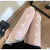 Venta al por mayor en stock Lazo de seda negro Medias de red huecas blancas y negras Deseo puro japonés Pareja Piernas hermosas Pantimedias sexys