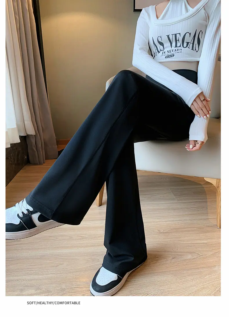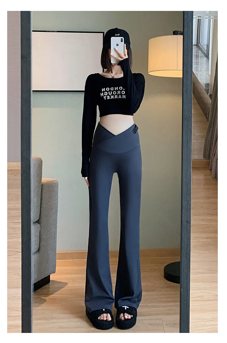 Black low-rise flared pants, Dark gray low-rise flared pants