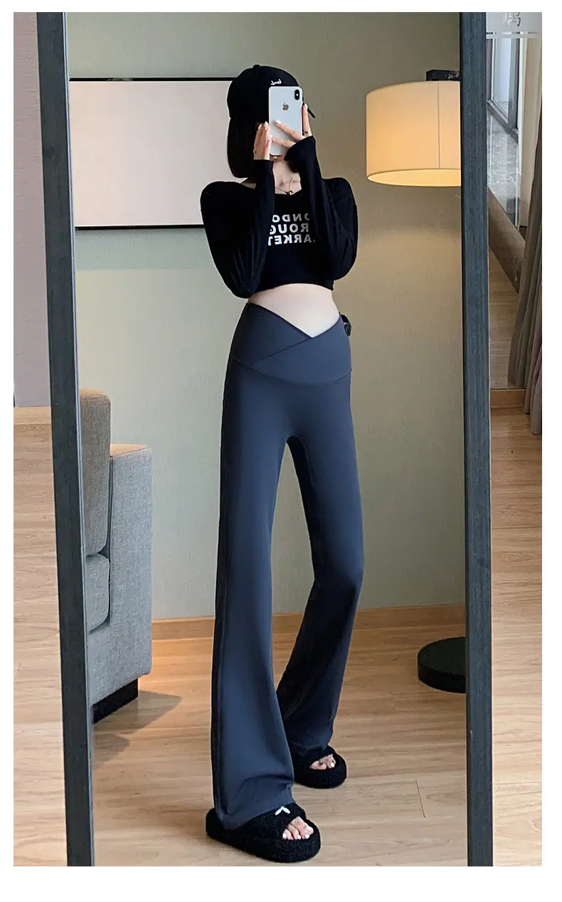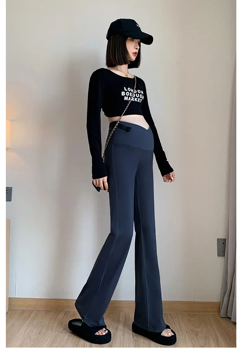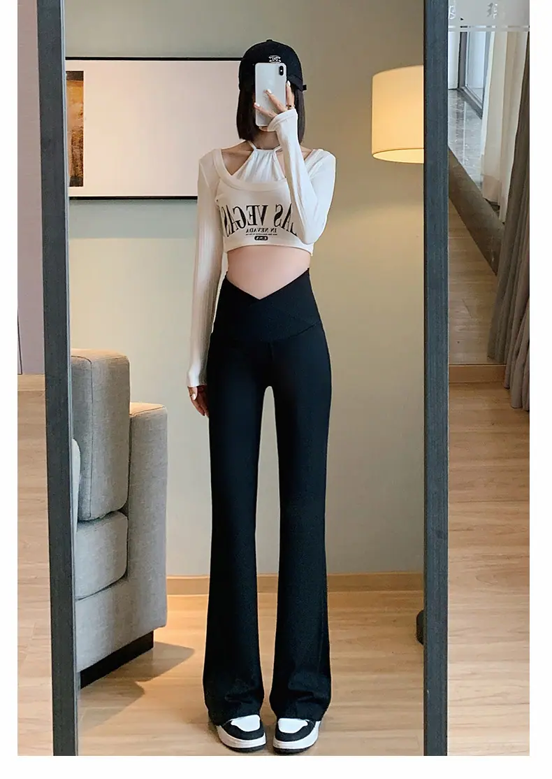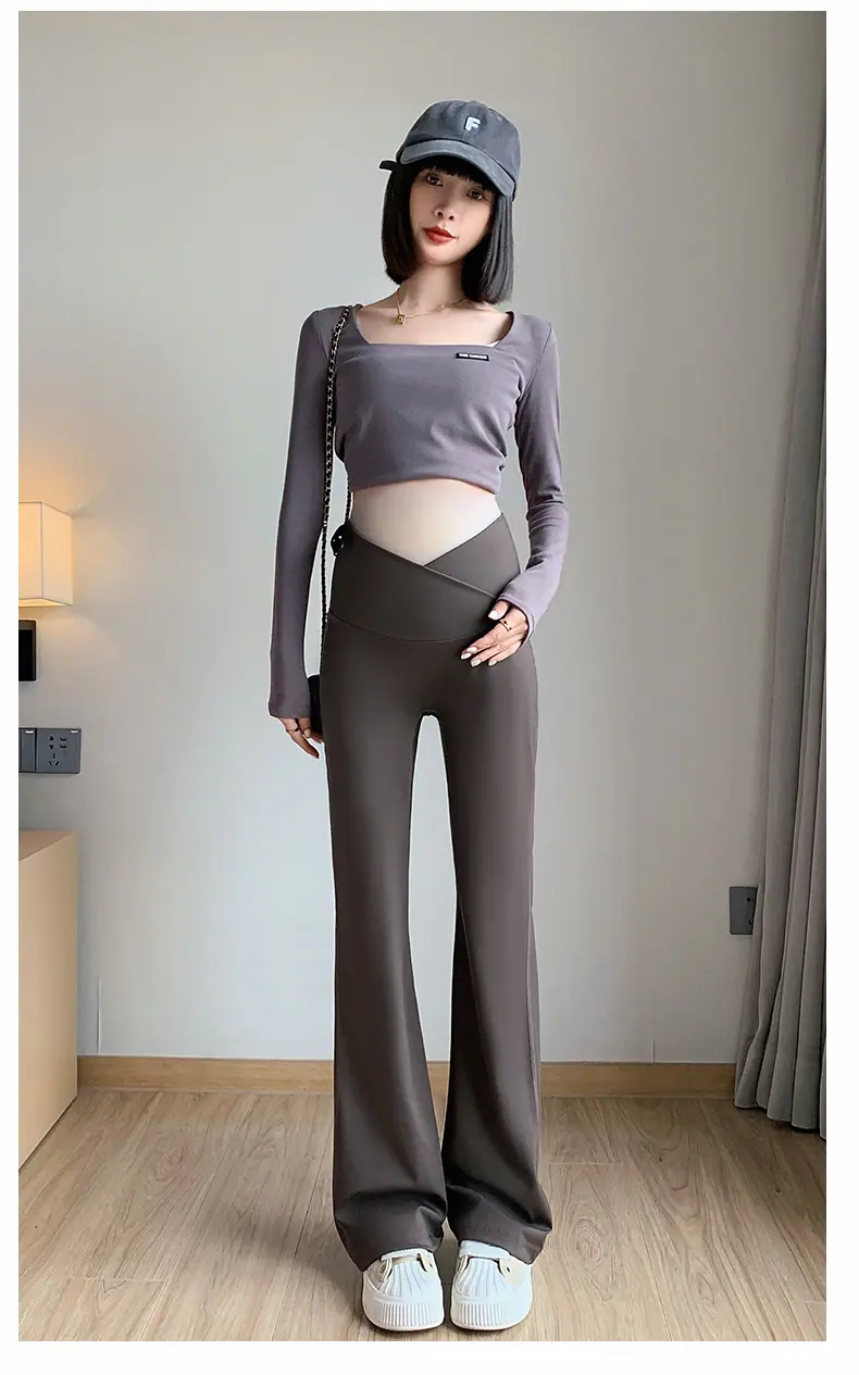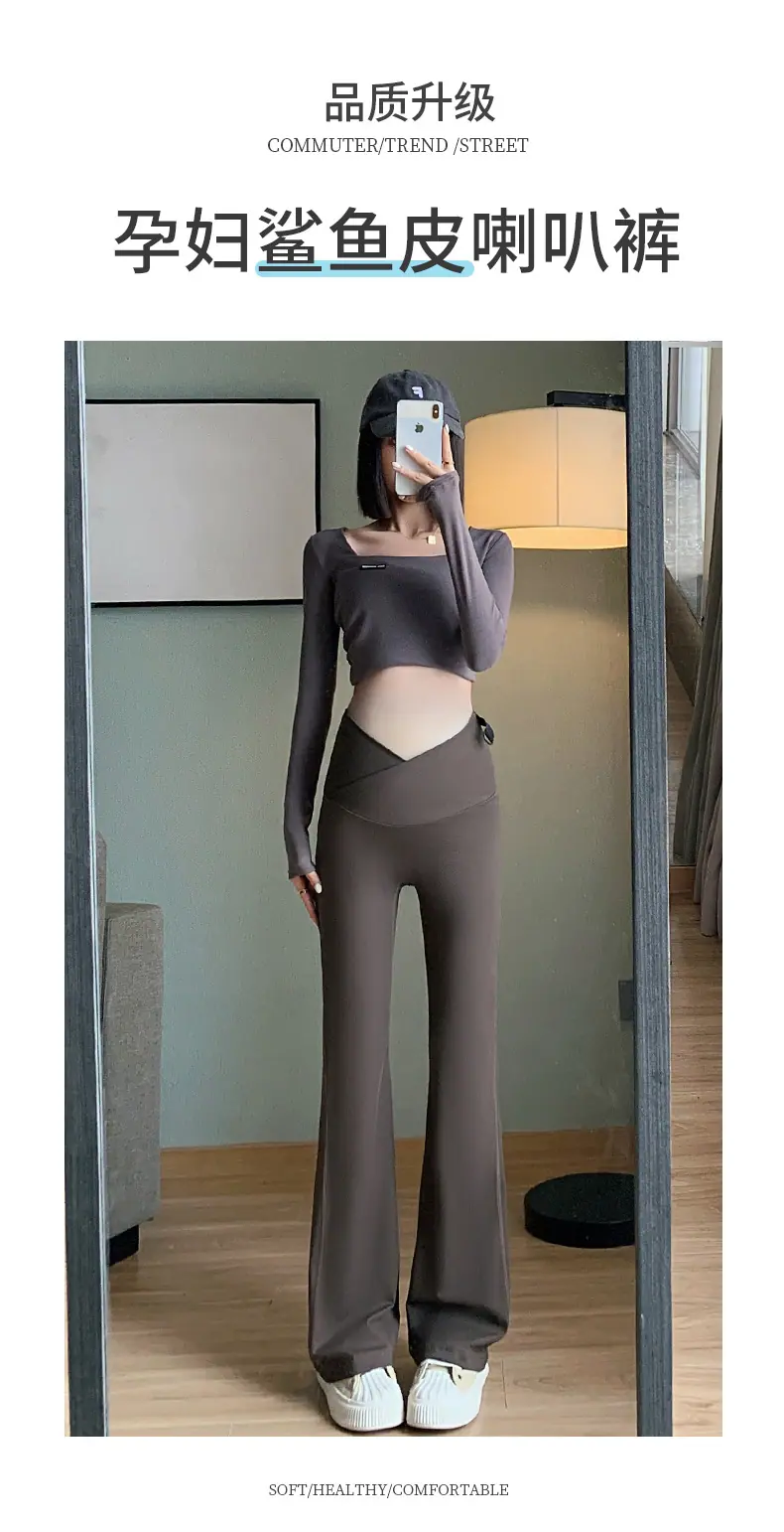 Pantalones de maternidad otoño e invierno más terciopelo ropa exterior 2025 nuevos leggings de maternidad cintura baja pantalones acampanados de tiburón pantalones largos ropa de invierno