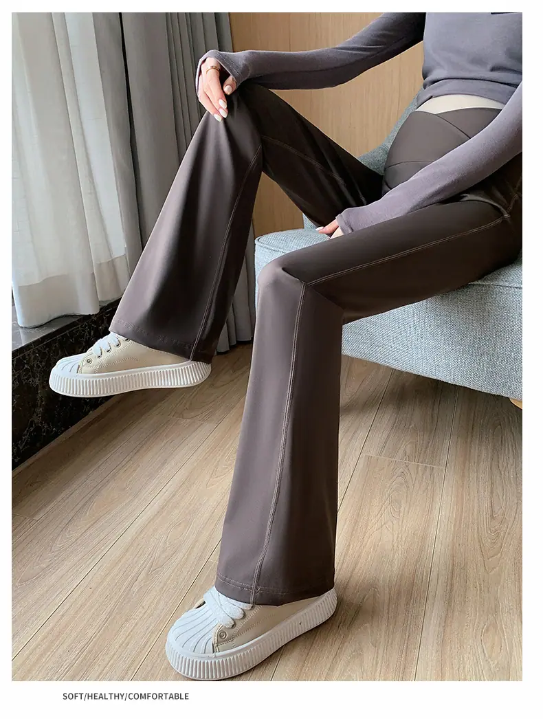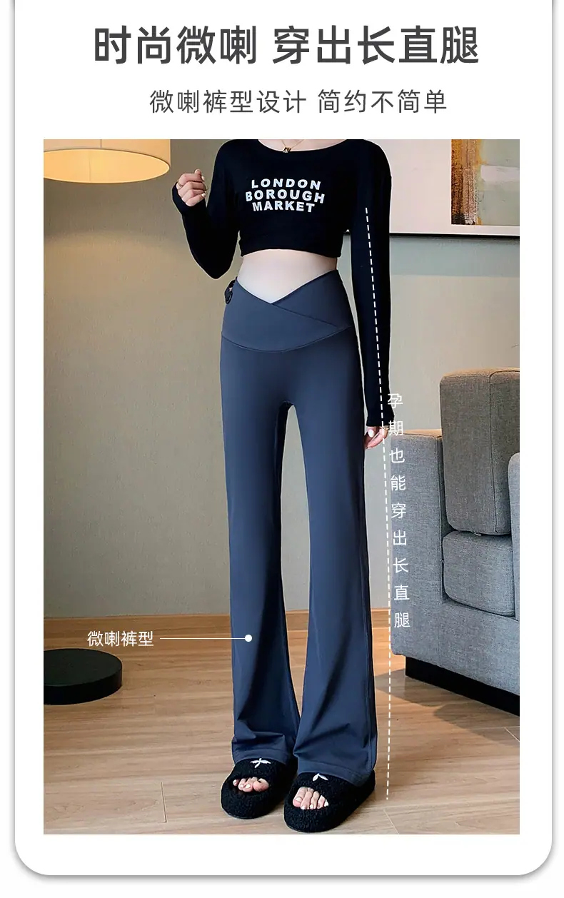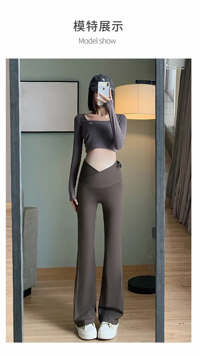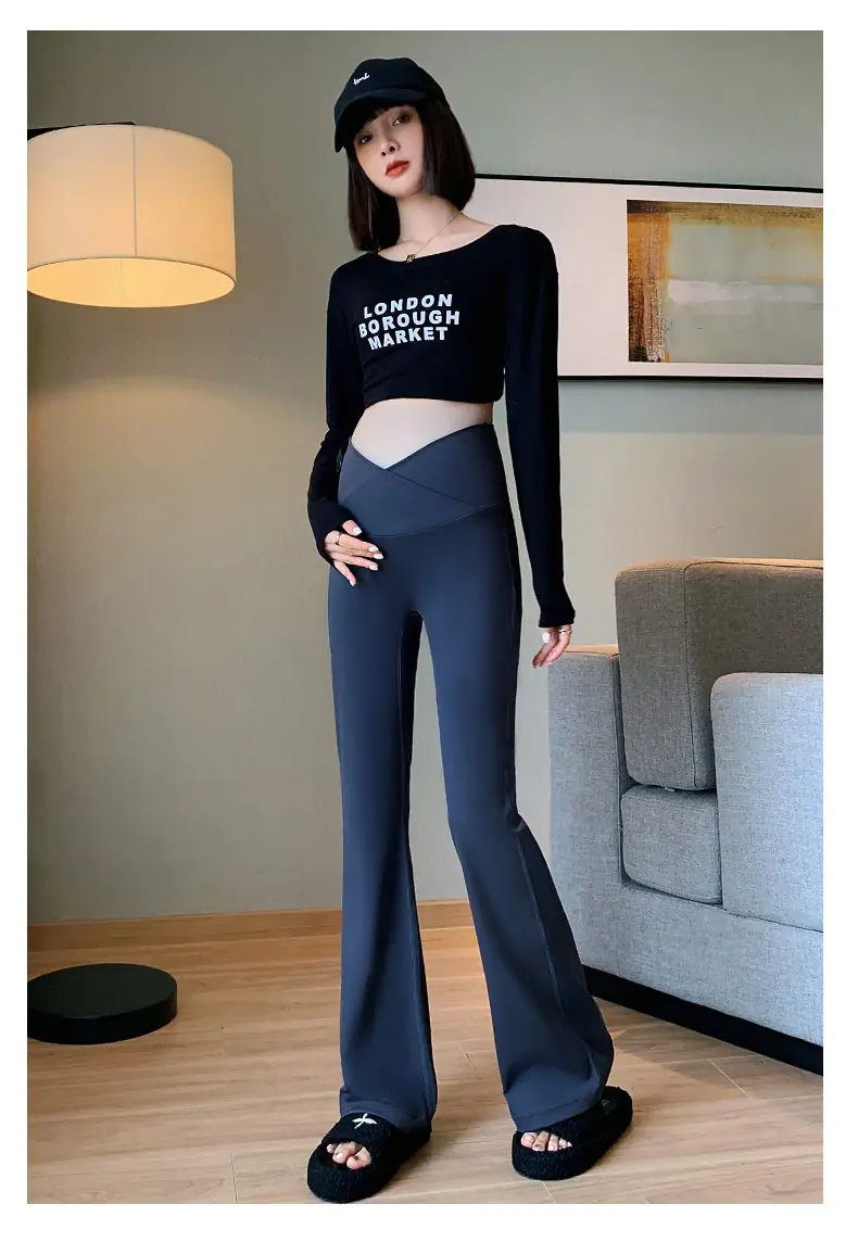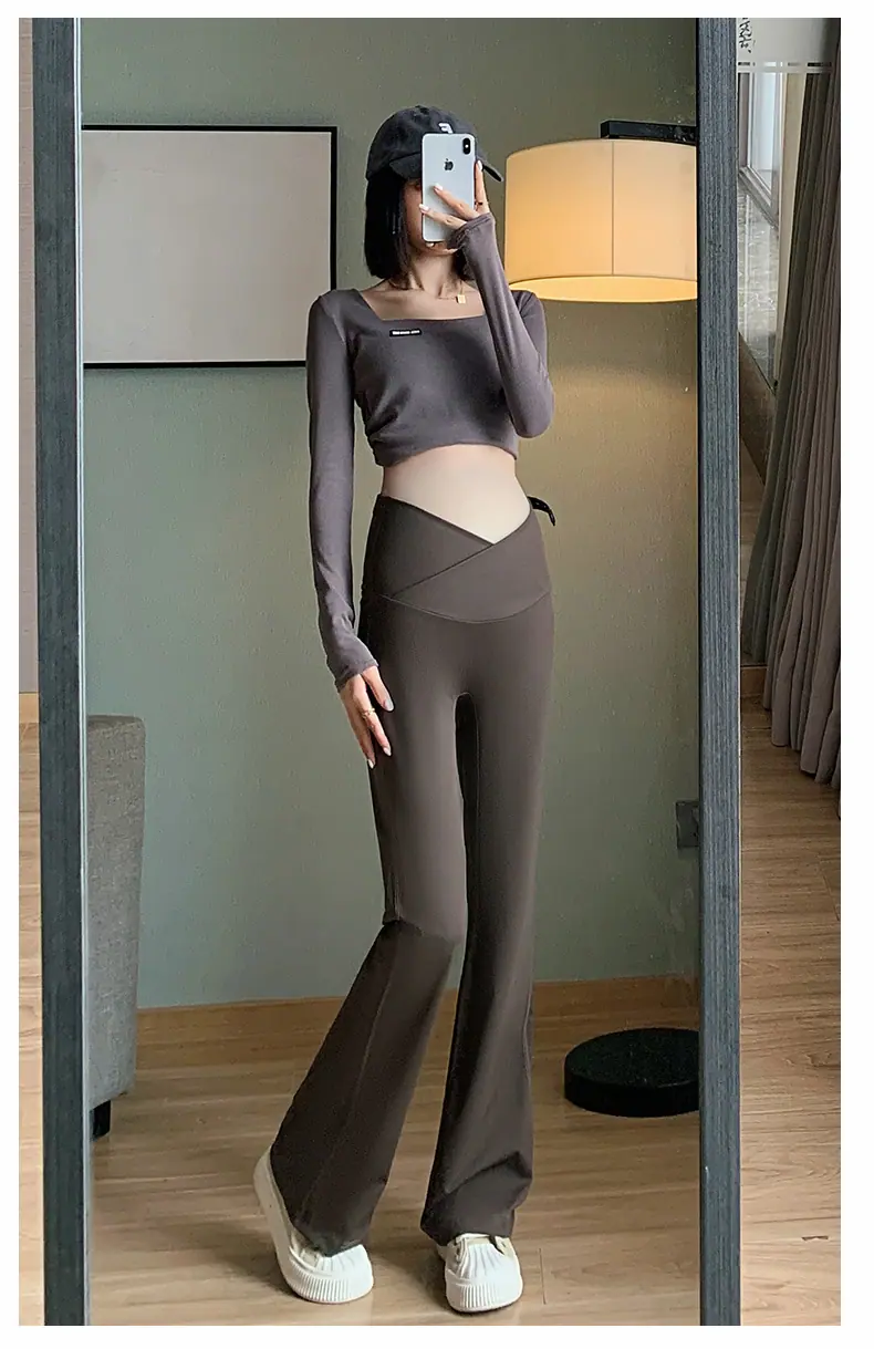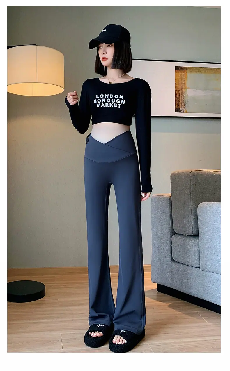 Pantalones de maternidad otoño e invierno más terciopelo ropa exterior 2025 nuevos leggings de maternidad cintura baja pantalones acampanados de tiburón pantalones largos ropa de invierno