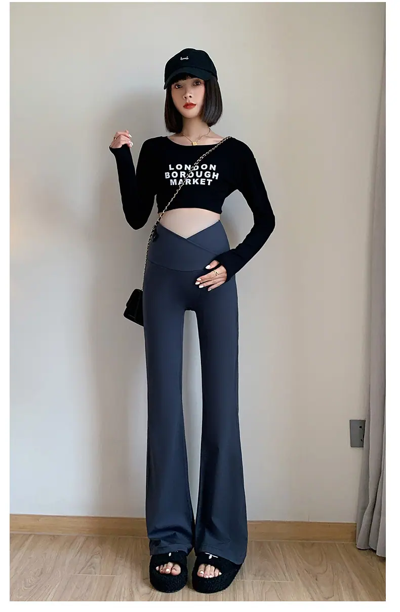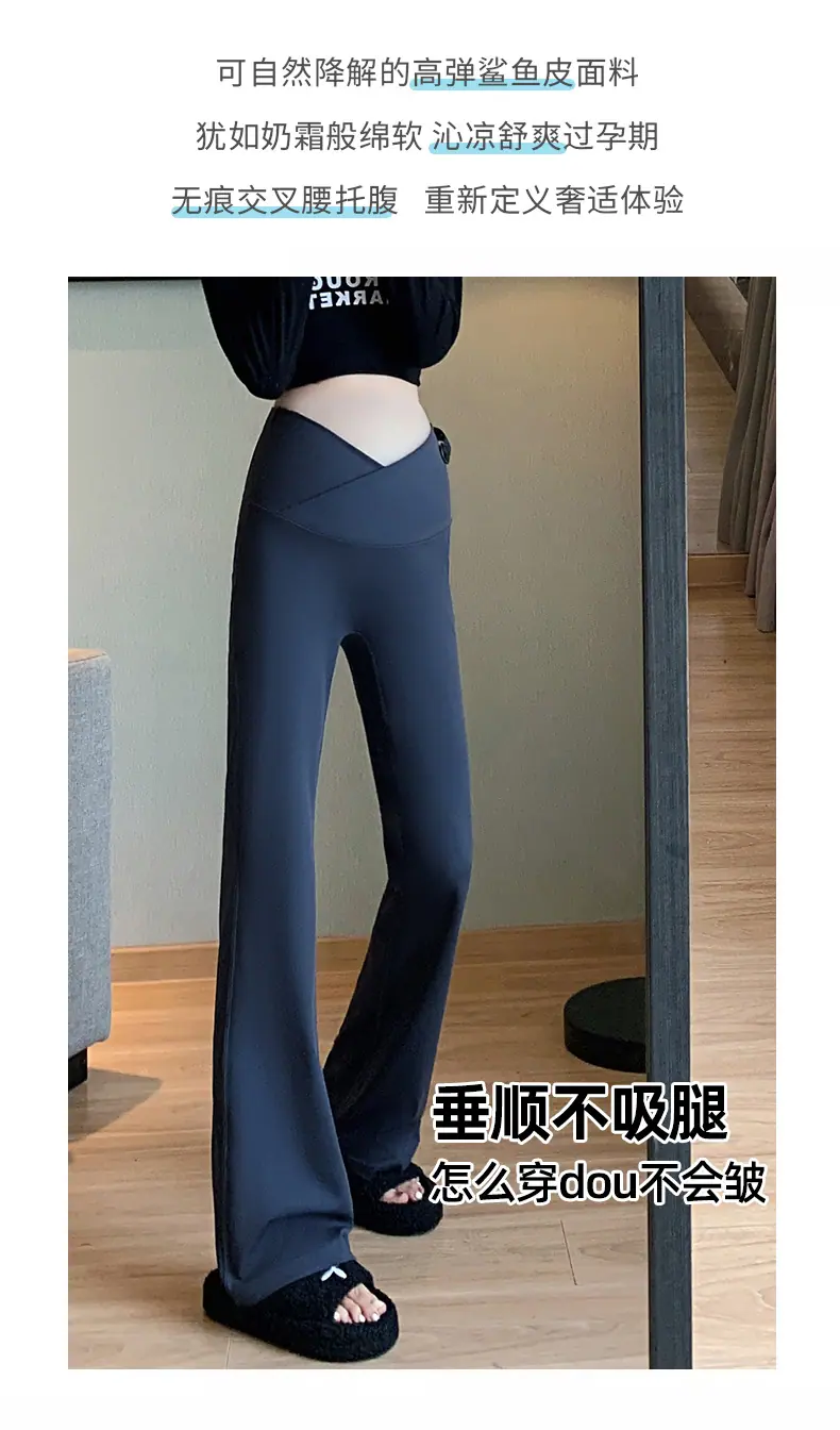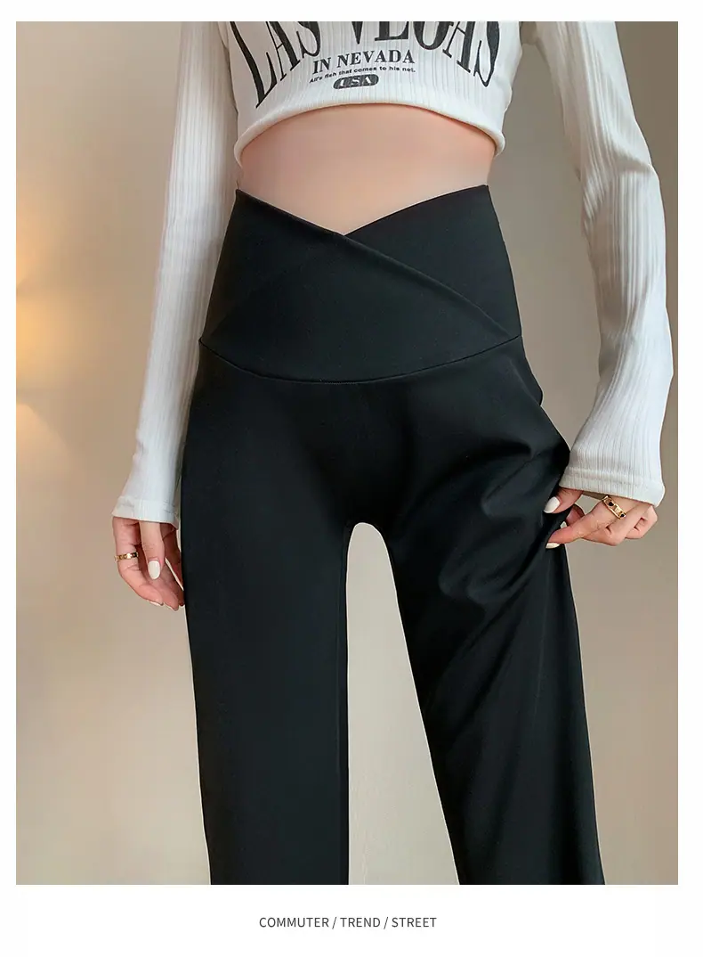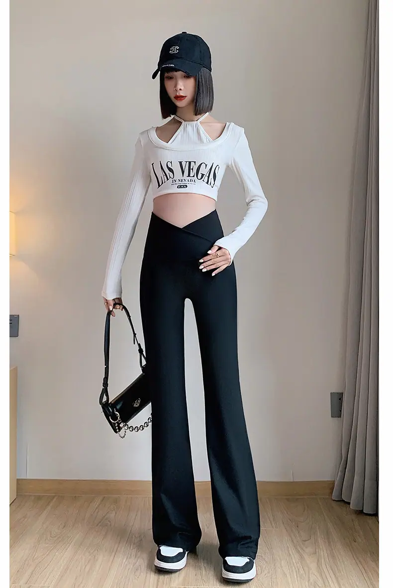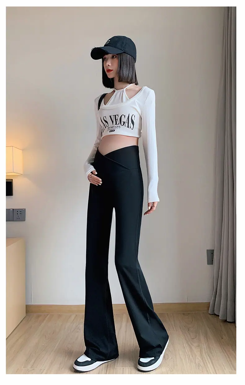 Pantalones de maternidad otoño e invierno más terciopelo ropa exterior 2025 nuevos leggings de maternidad cintura baja pantalones acampanados de tiburón pantalones largos ropa de invierno