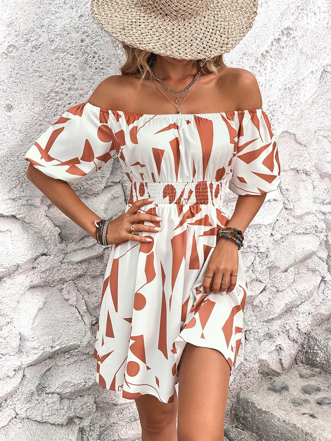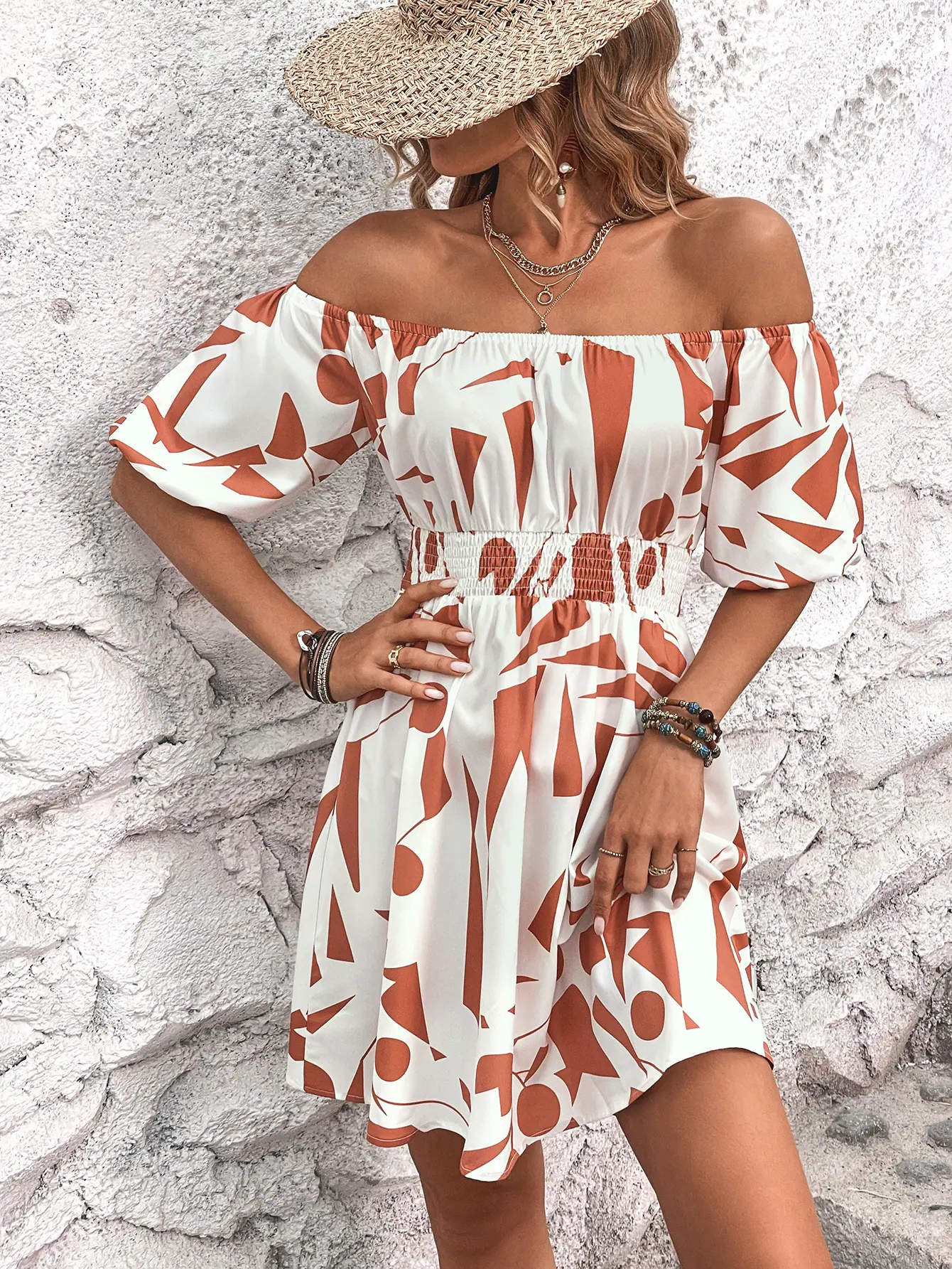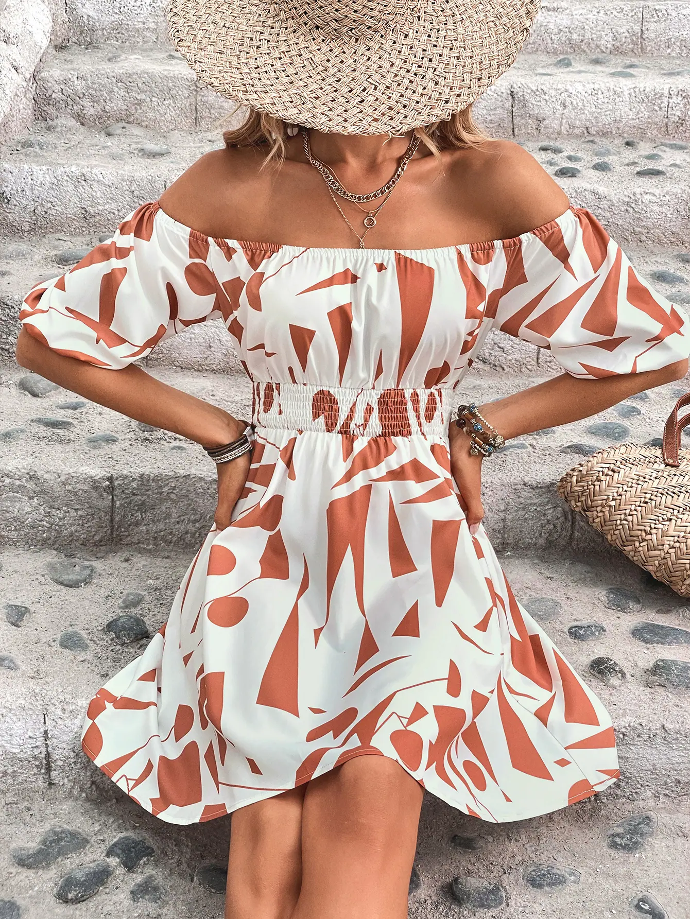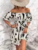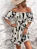 2023 Nuevo Amazon Estación Independiente Caliente eBay Explosiones Transfronterizo Europeo y Americano Vestido Estampado con Hombros Descubiertos para Mujer