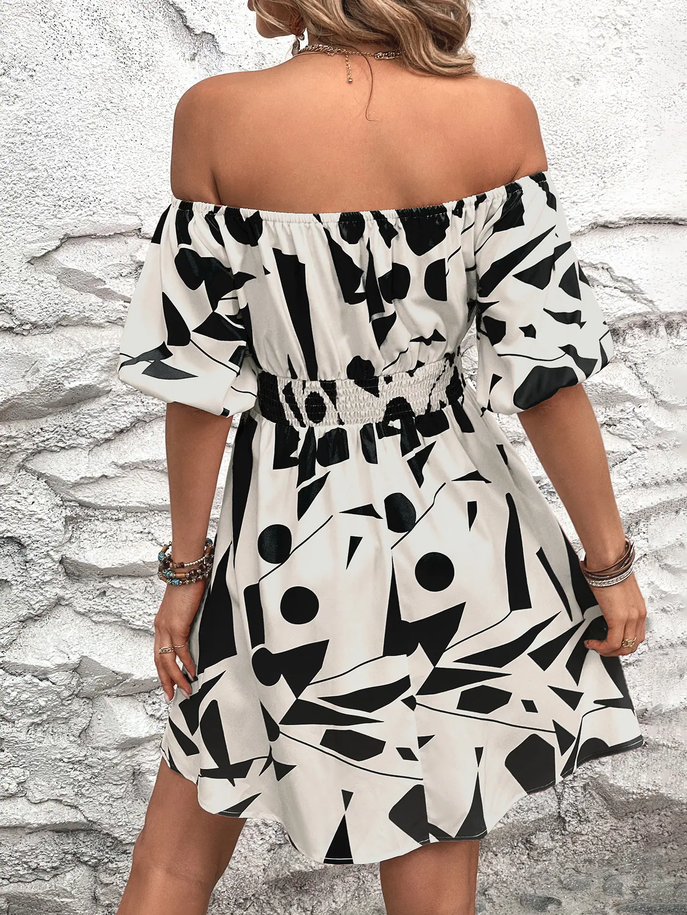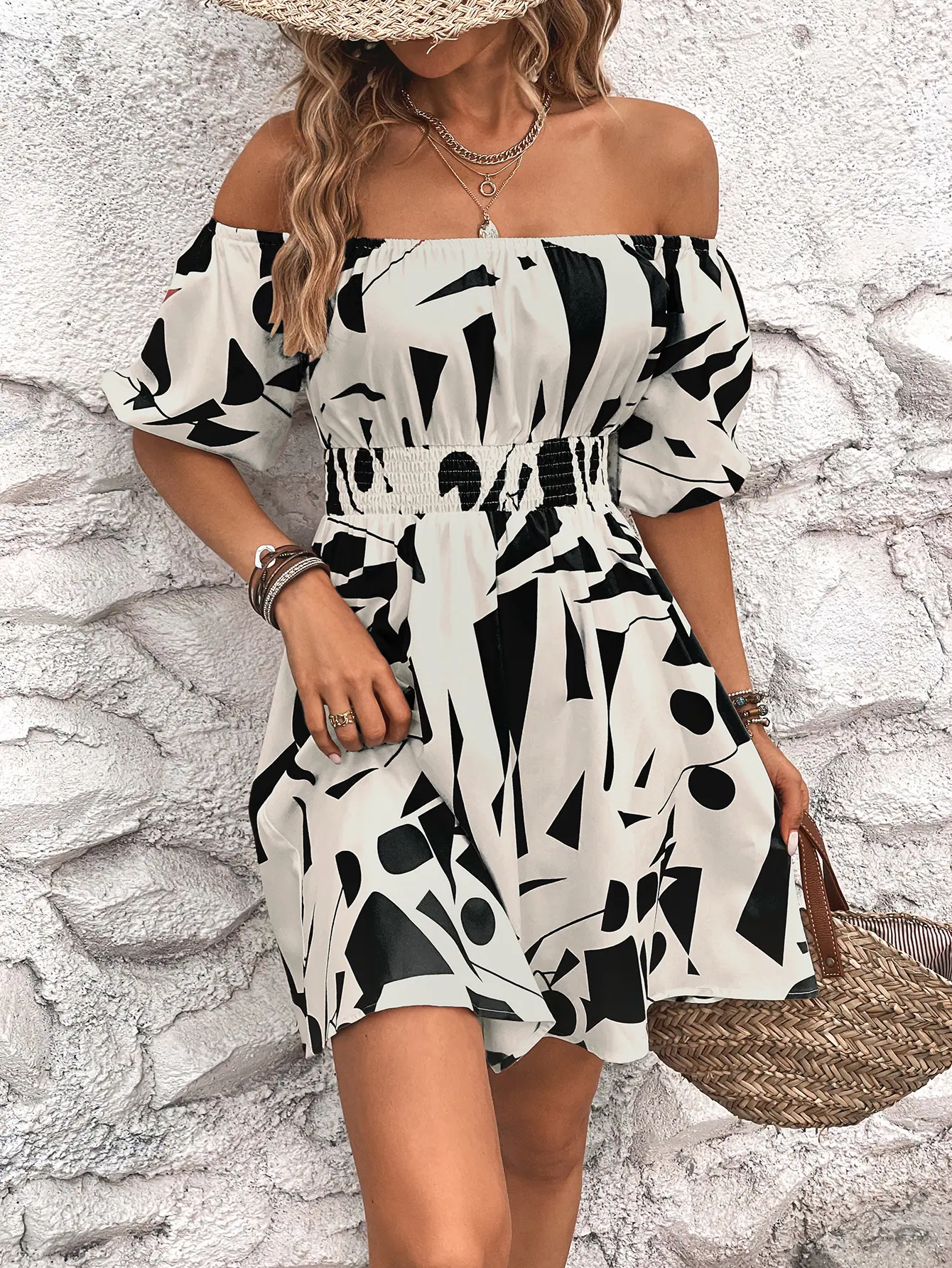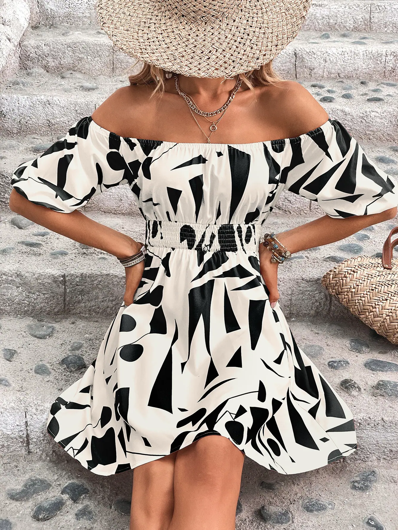 2023 Nuevo Amazon Estación Independiente Caliente eBay Explosiones Transfronterizo Europeo y Americano Vestido Estampado con Hombros Descubiertos para Mujer
