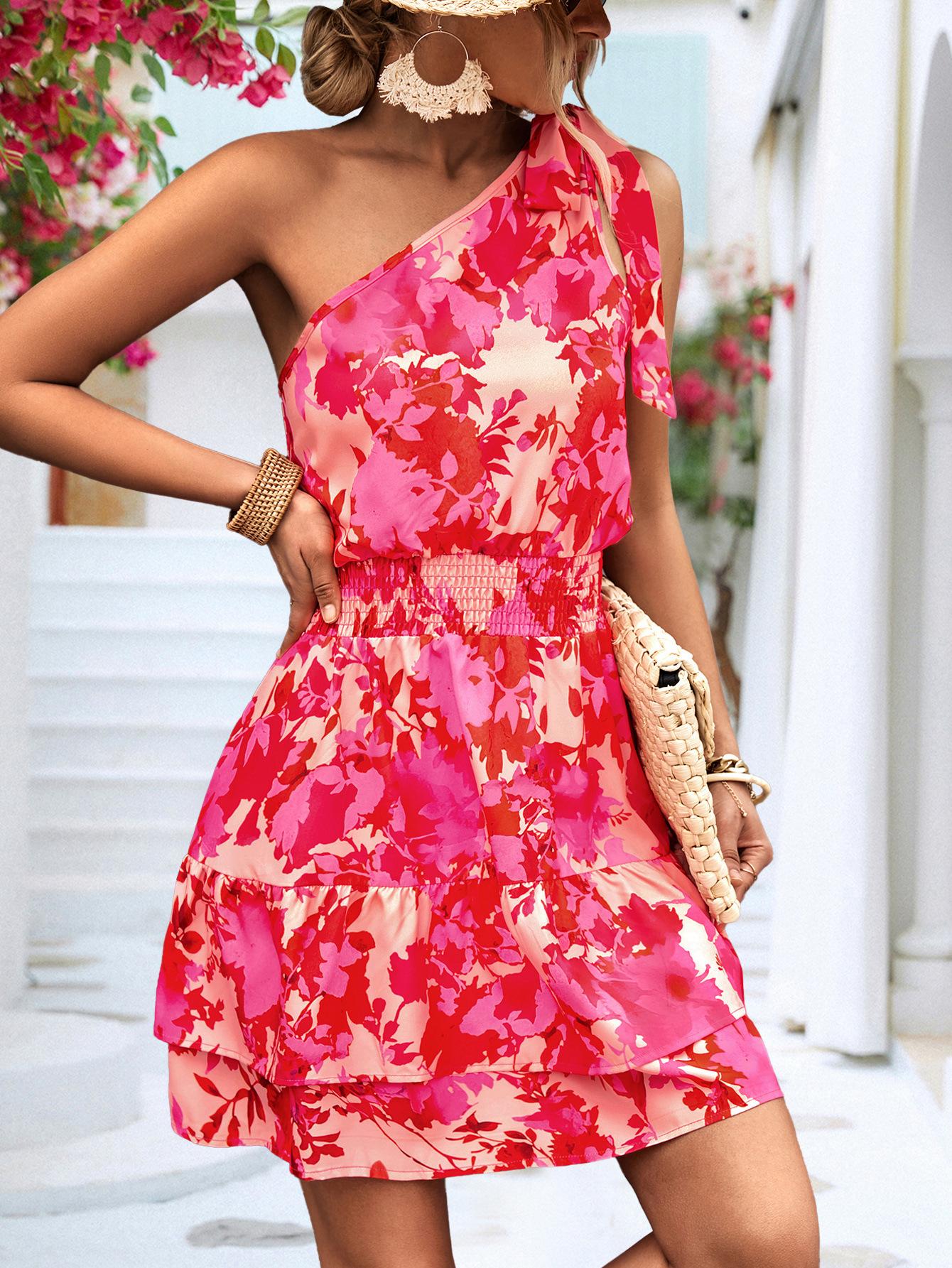 2023 Nuevo Amazon Estación Independiente Caliente eBay Explosiones Transfronterizo Europeo y Americano Vestido de Hombro Inclinado para Mujer