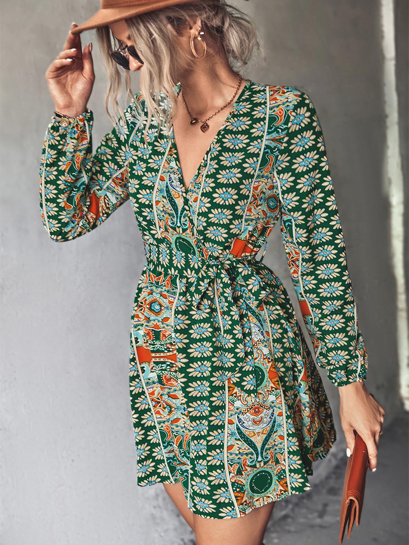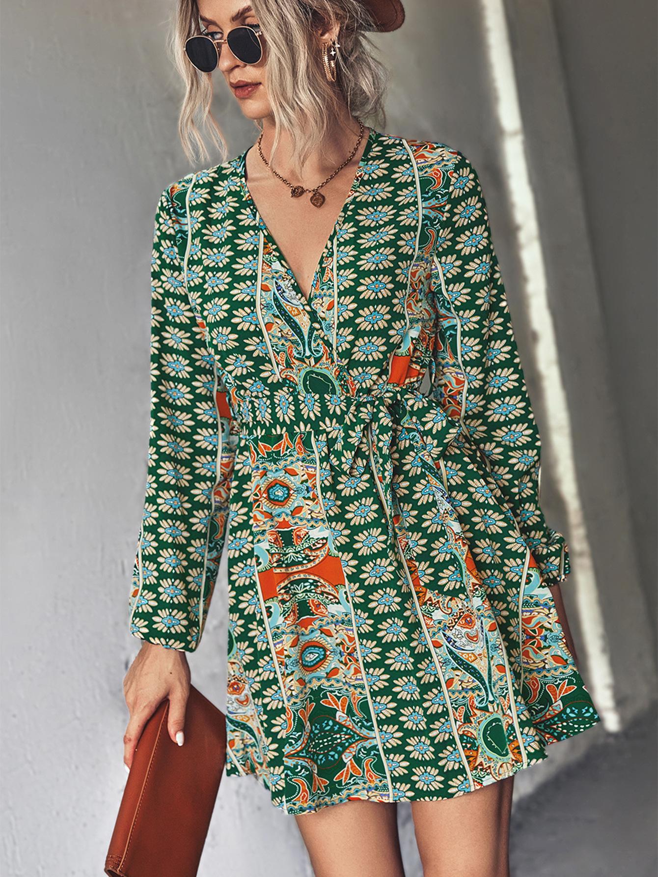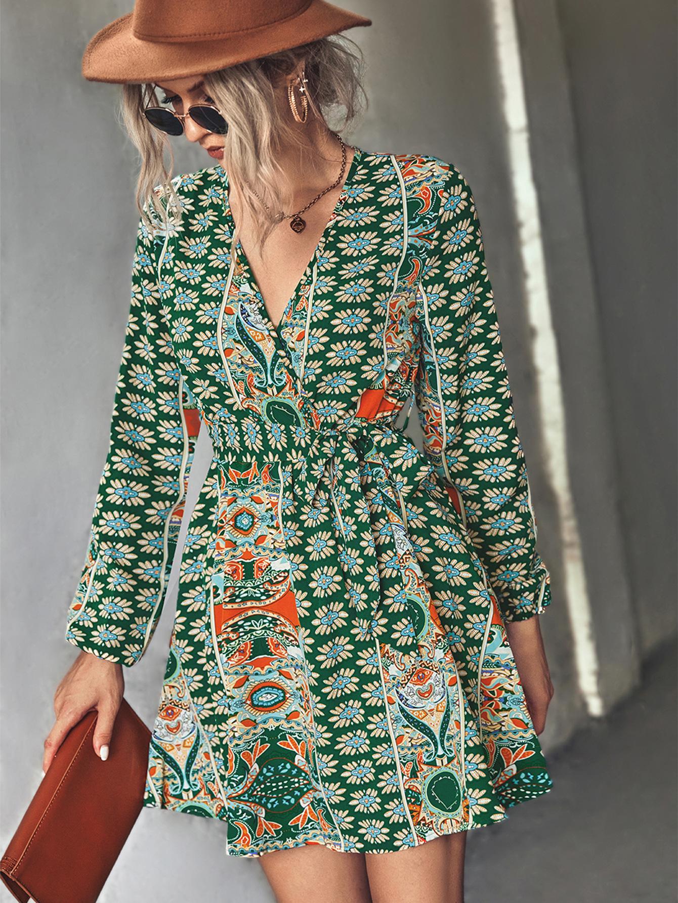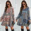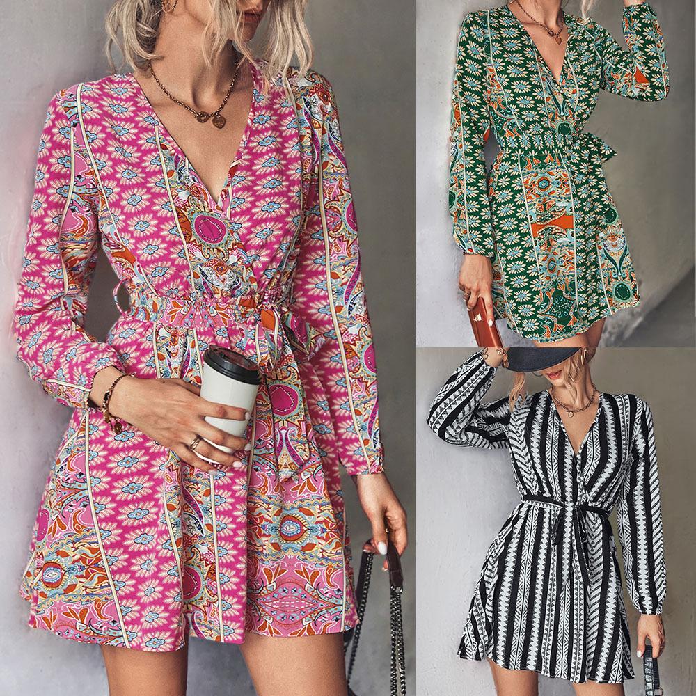 2023 Nuevo Amazon Estación Independiente Caliente eBay Explosiones Transfronterizo Europeo y Americano Vestido Estampado de Cuello en V para Mujer