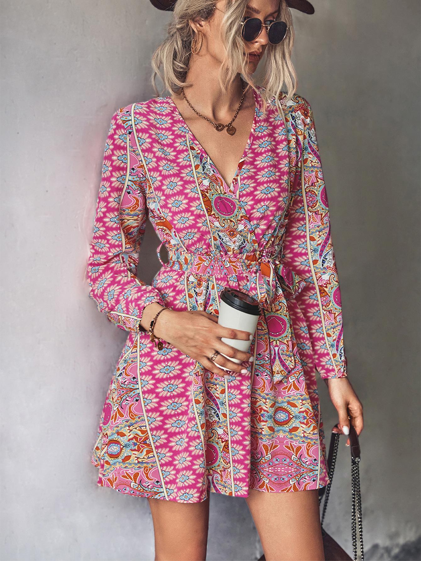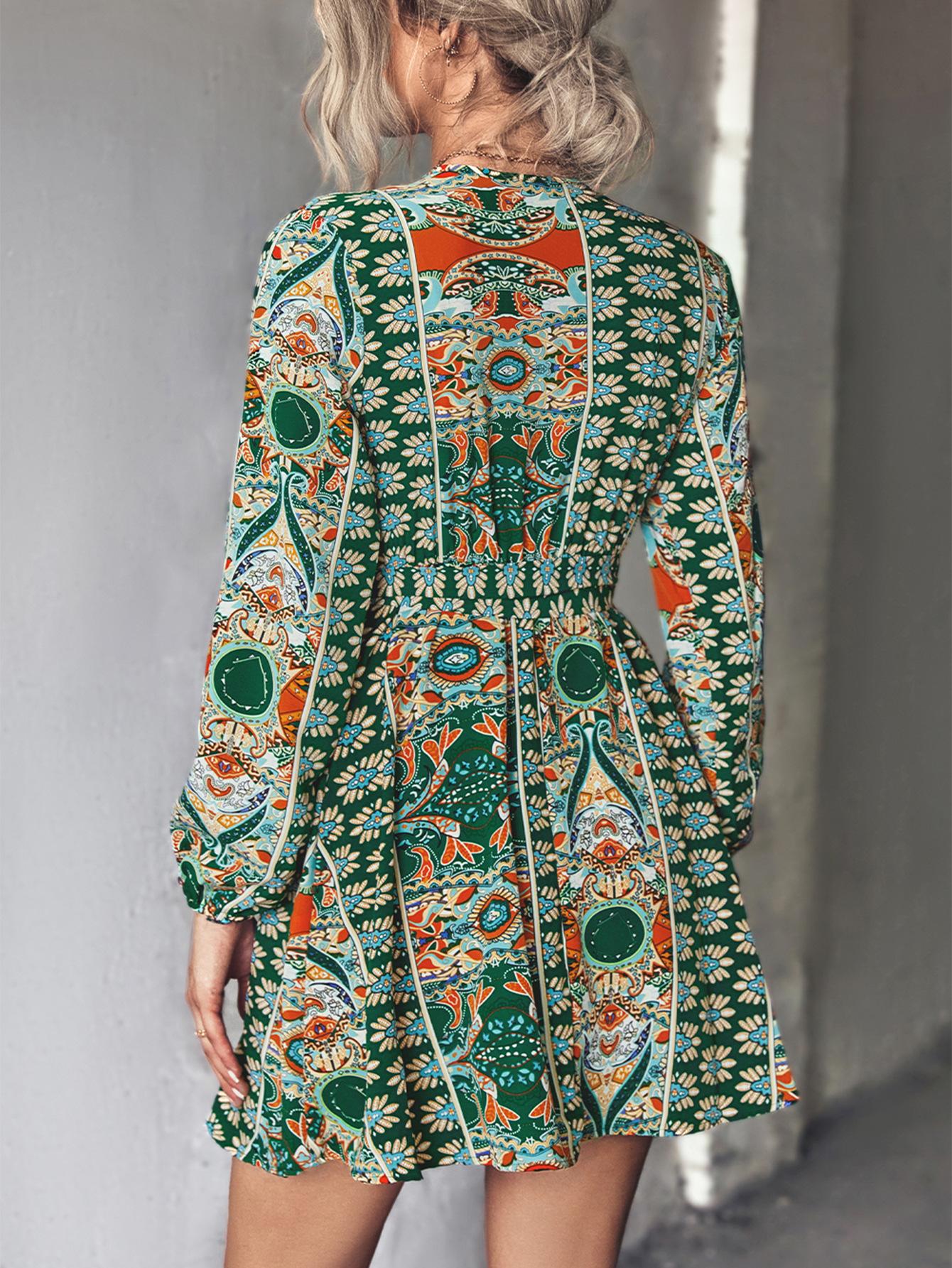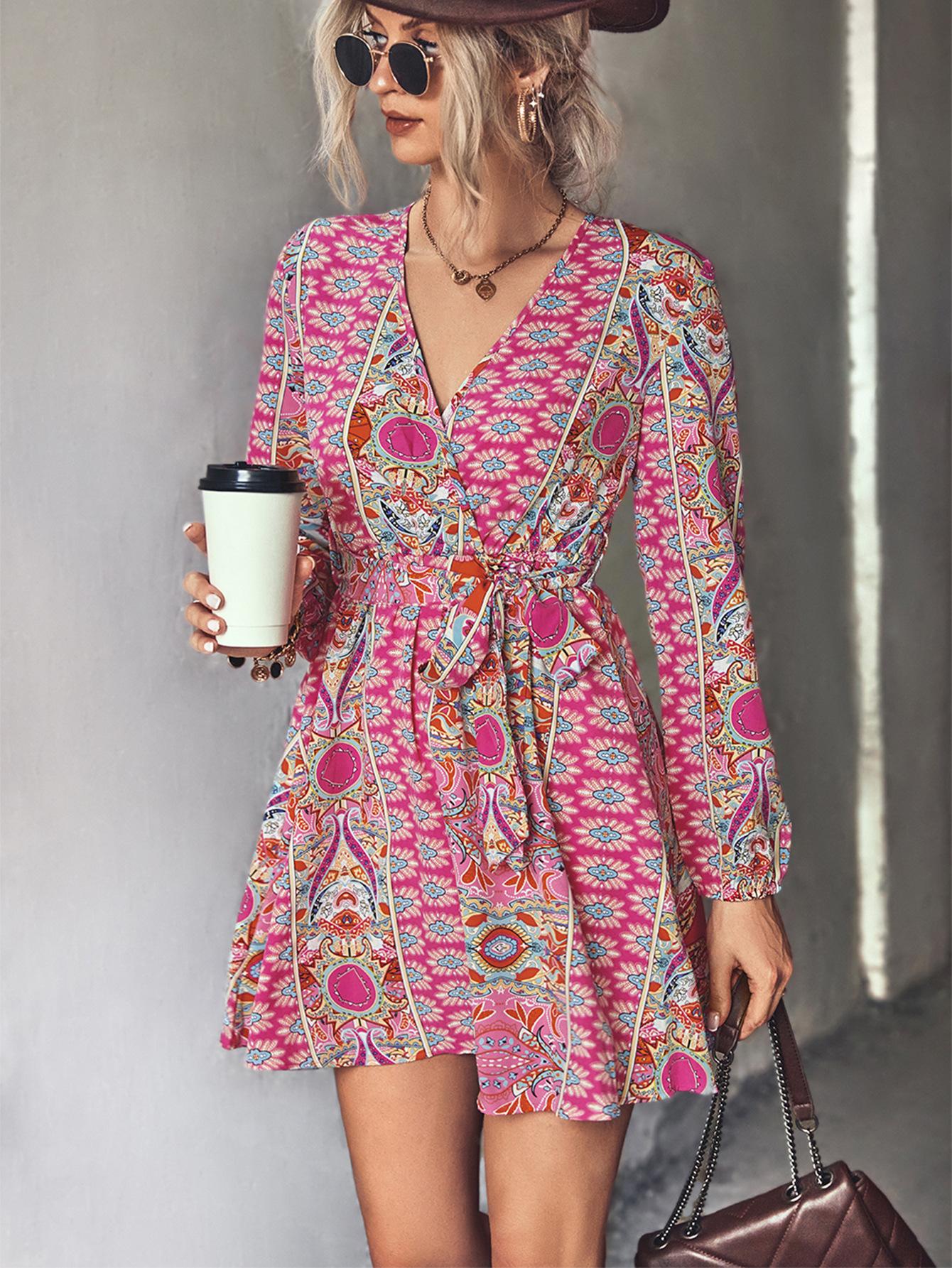 2023 Nuevo Amazon Estación Independiente Caliente eBay Explosiones Transfronterizo Europeo y Americano Vestido Estampado de Cuello en V para Mujer