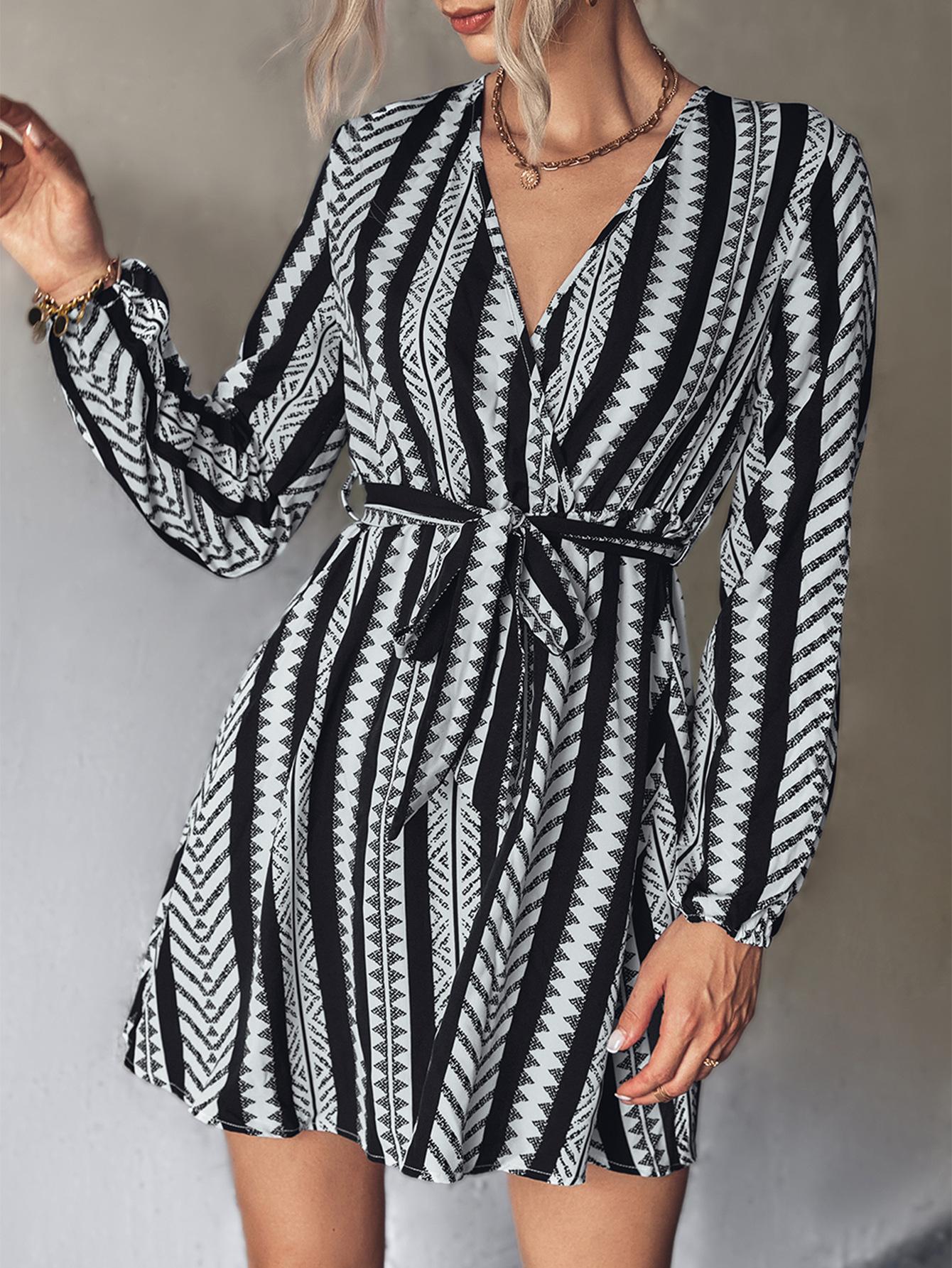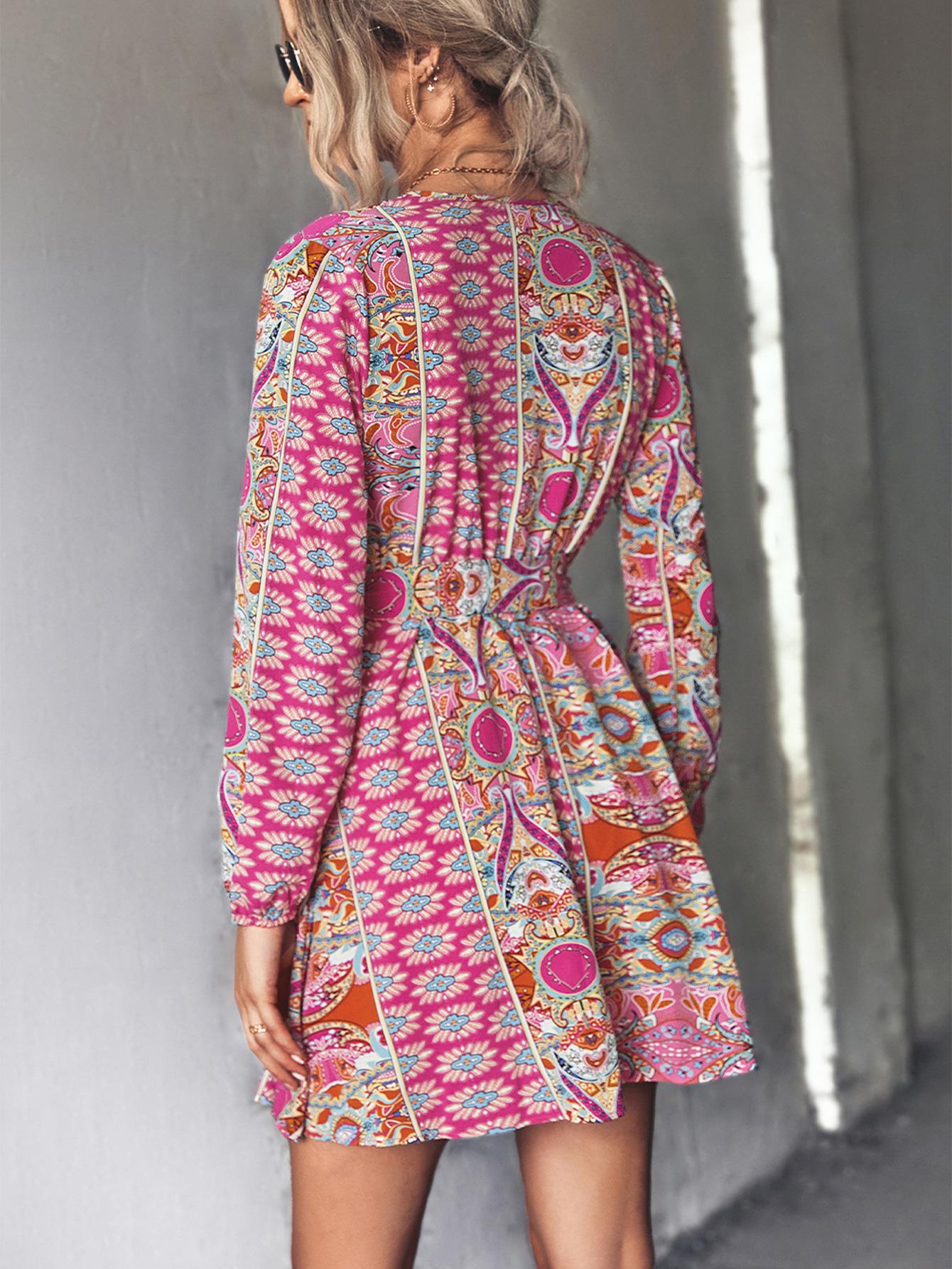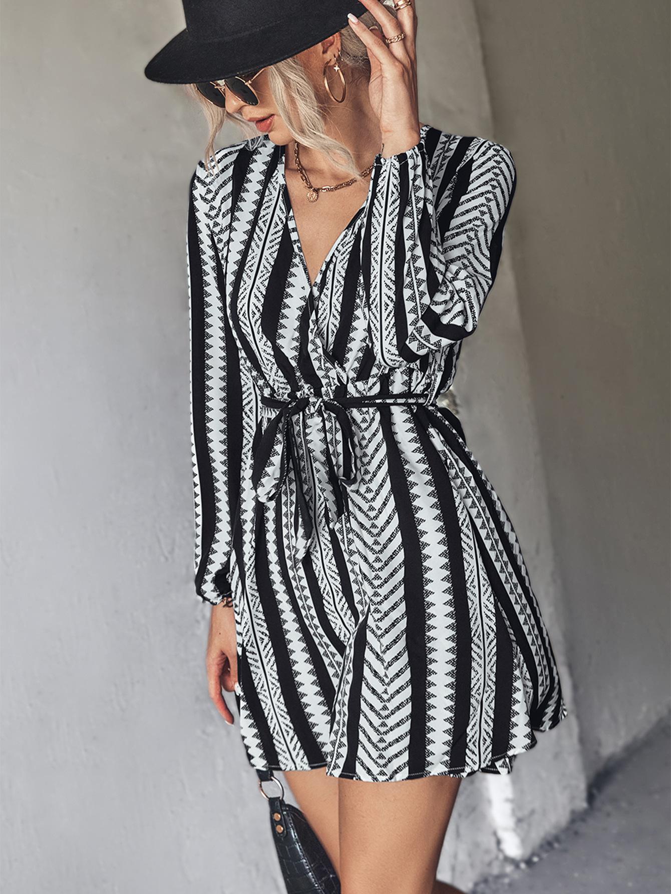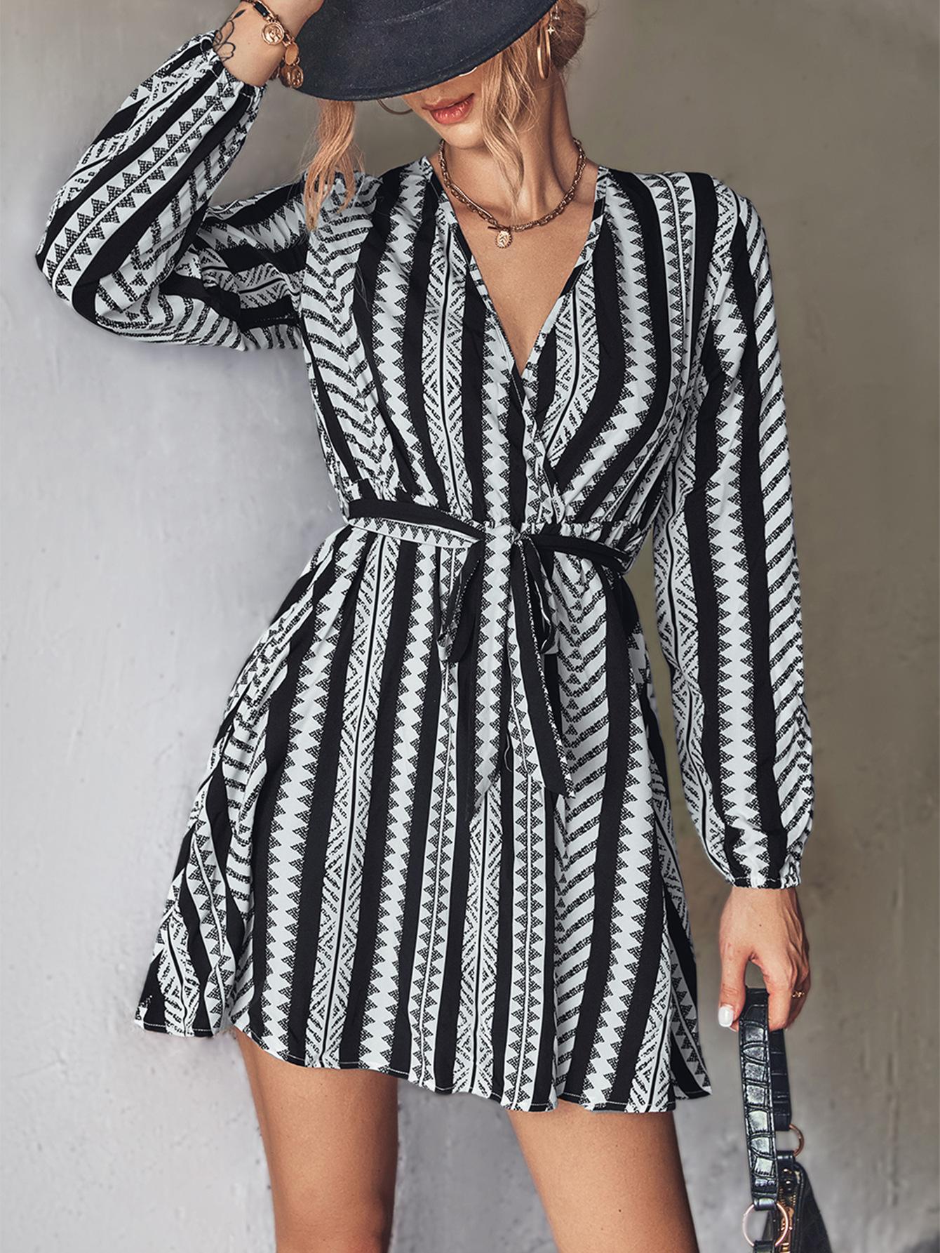 2023 Nuevo Amazon Estación Independiente Caliente eBay Explosiones Transfronterizo Europeo y Americano Vestido Estampado de Cuello en V para Mujer