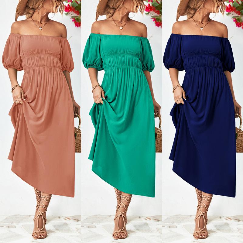 2023 Nuevo Amazon Estación Independiente Ventas Calientes eBay Explosiones Transfronterizo Europeo y Americano Vestido de Hombro Descubierto para Mujer