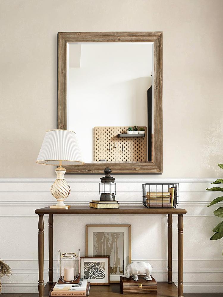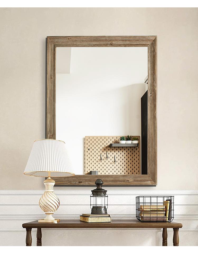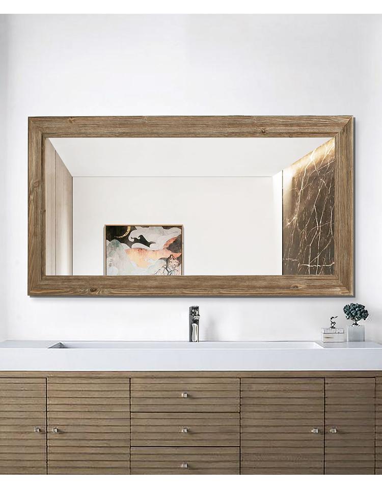 CS espejo decorativo de madera maciza retro estilo espejo de maquillaje espejo de cubo espejo para colgar en la pared espejo de baño espejo de baño