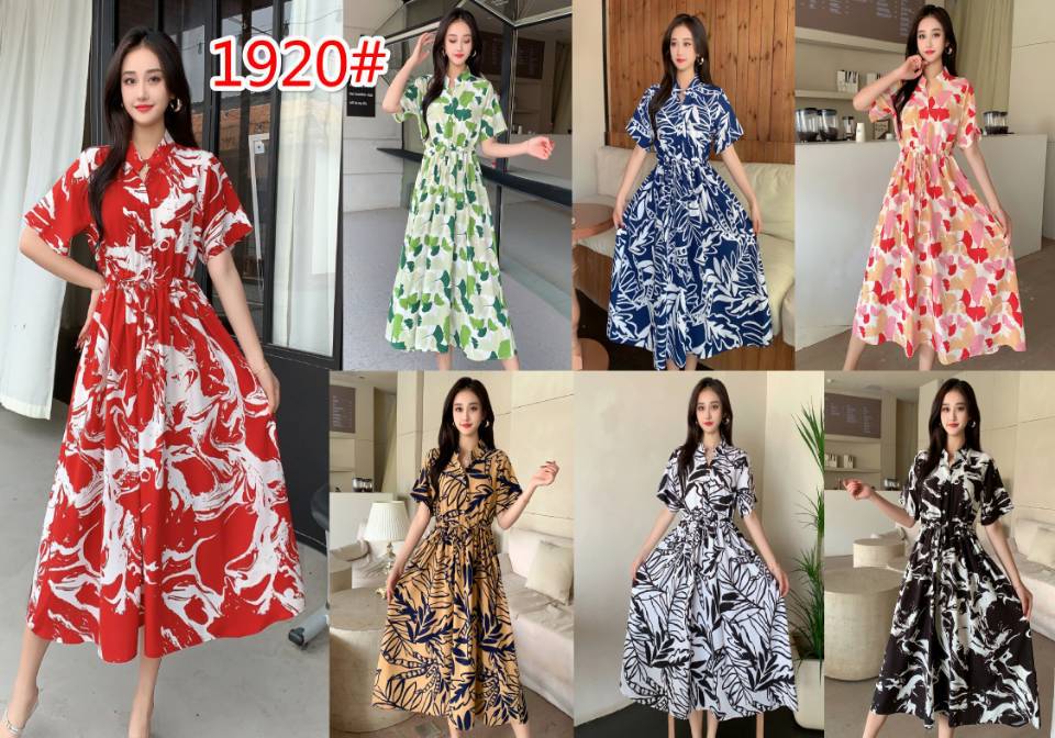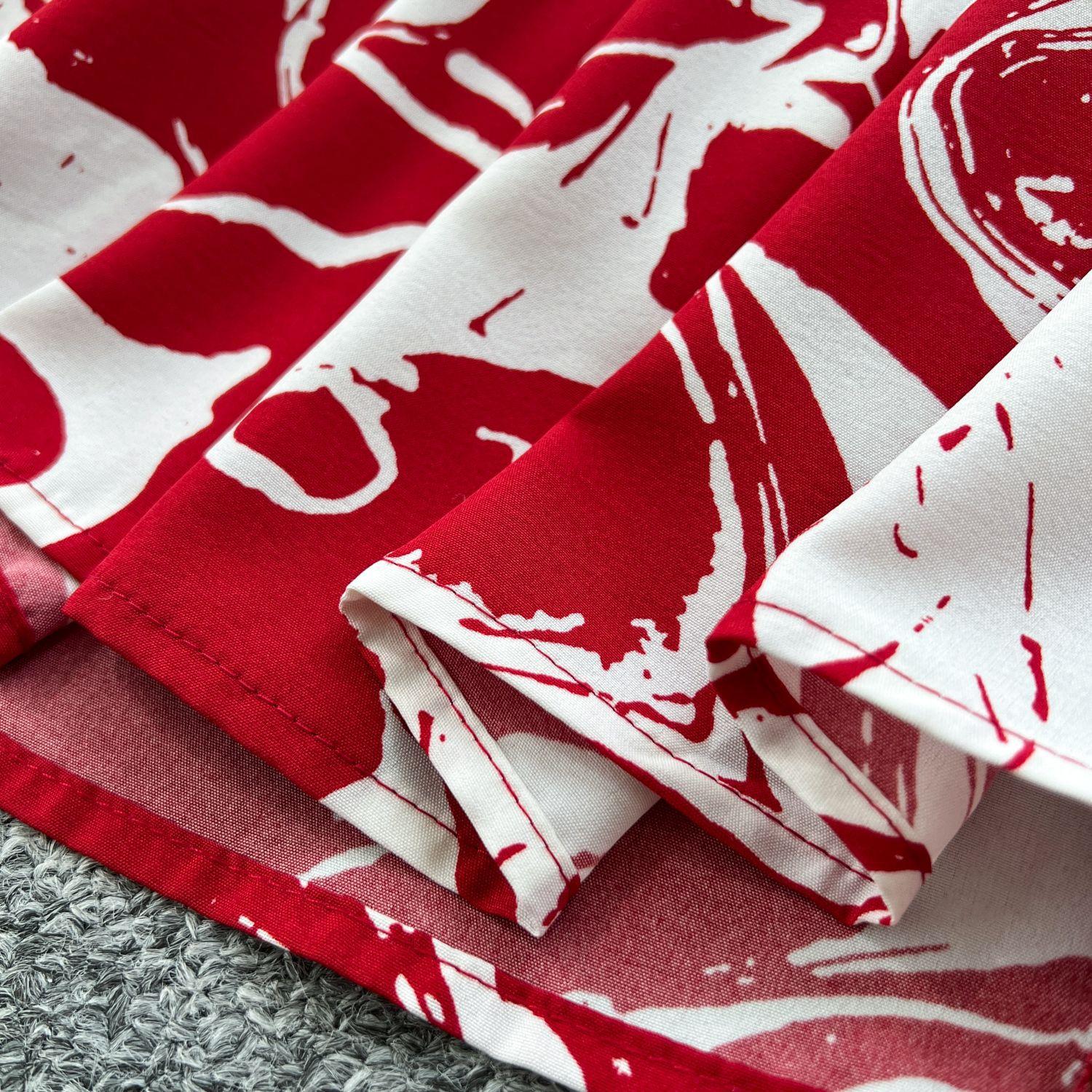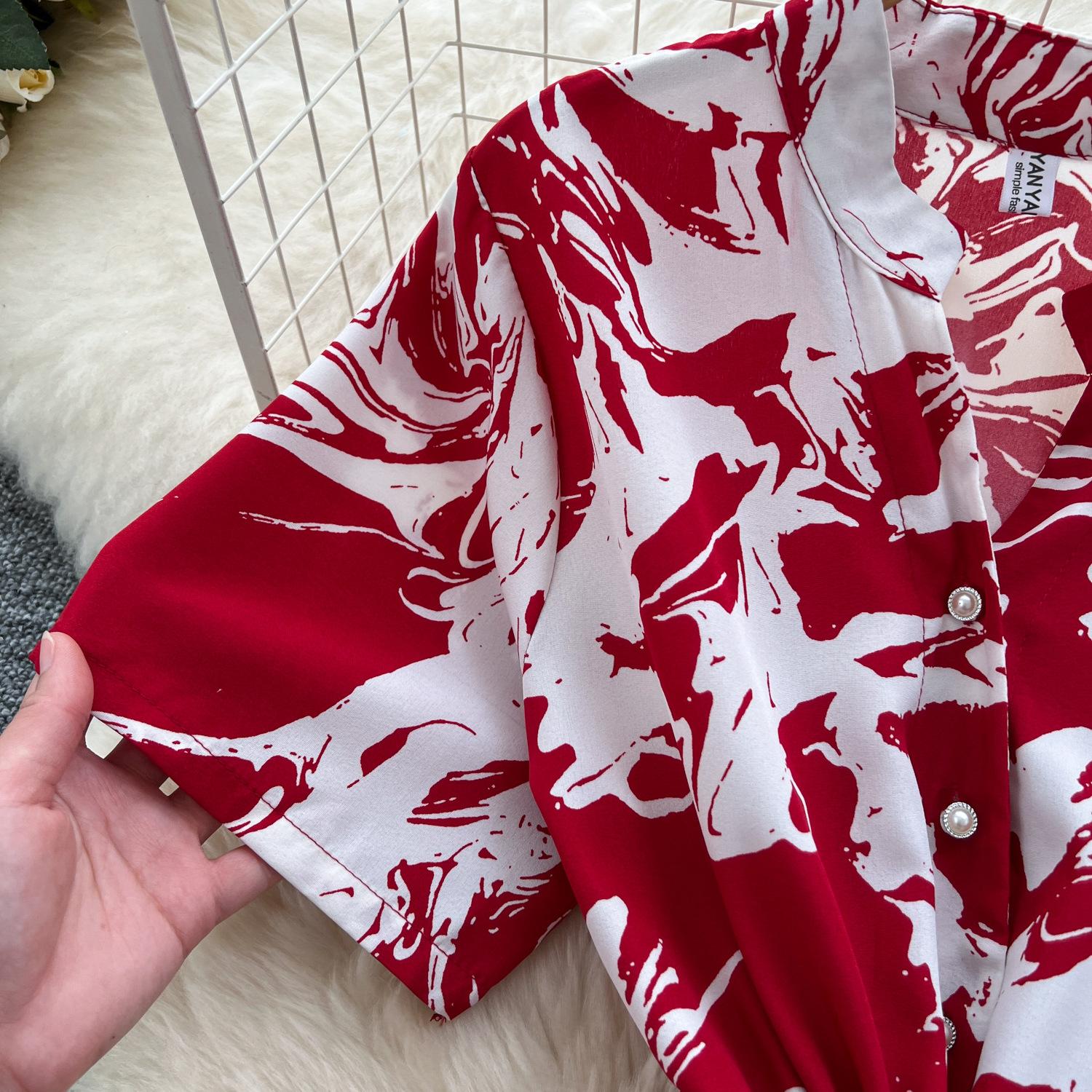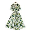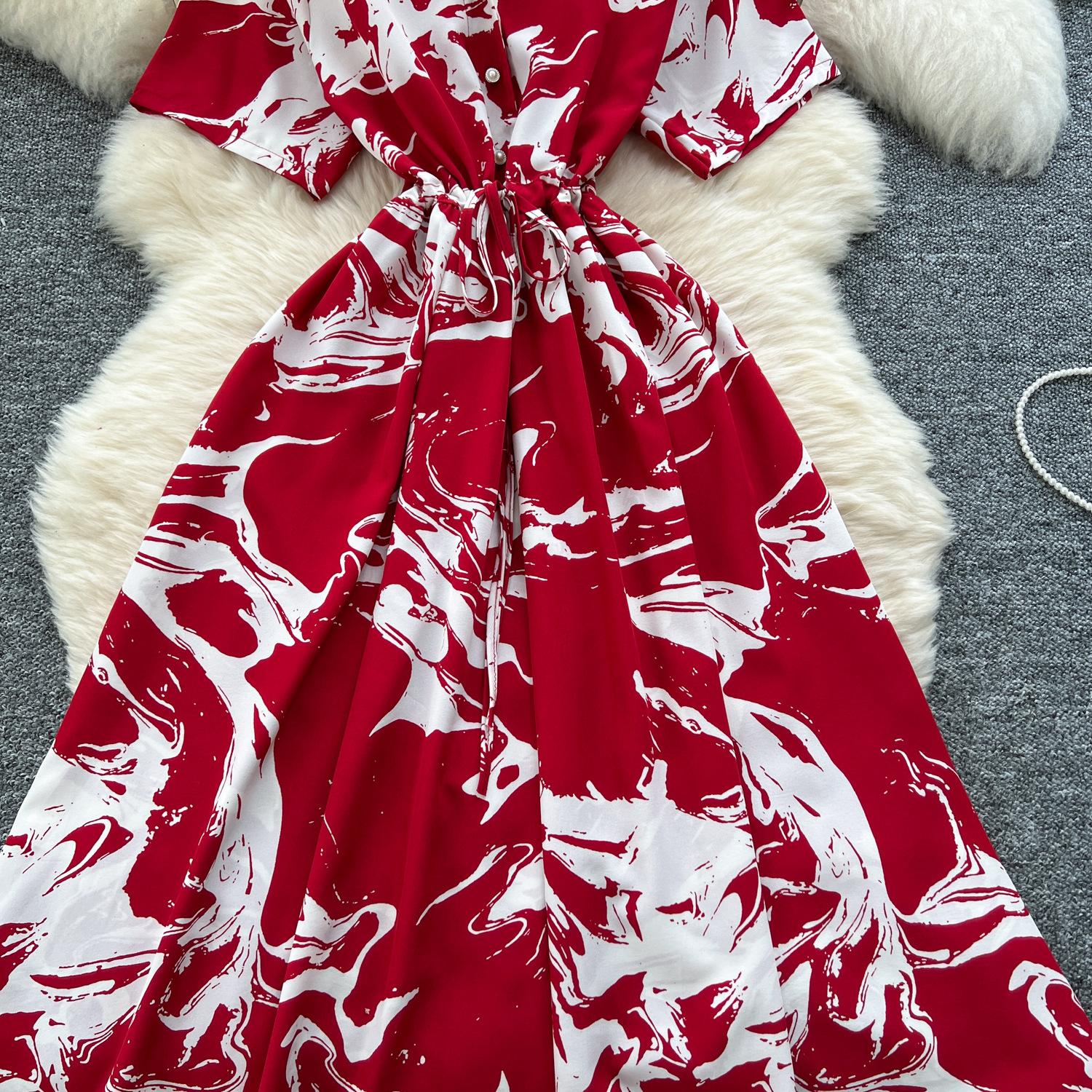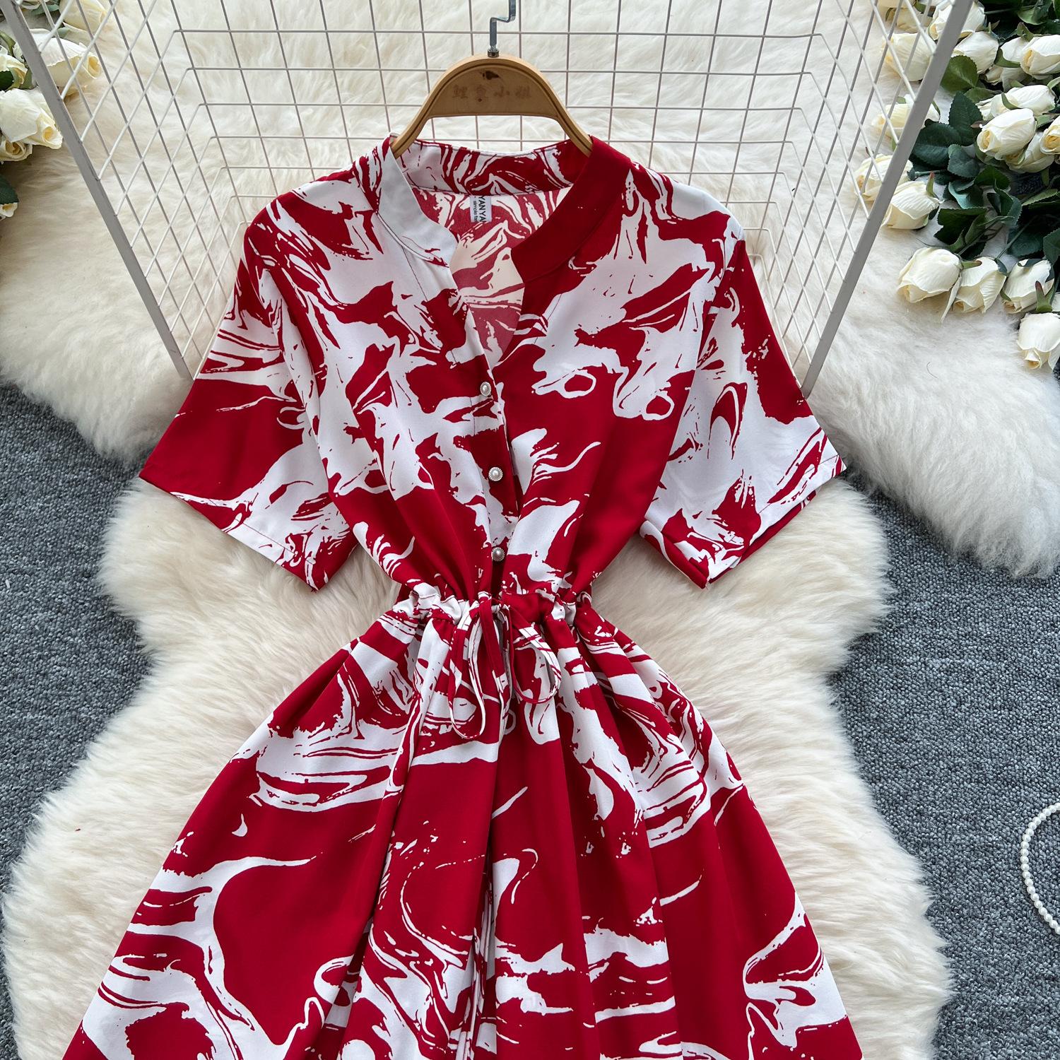 Vestido Estampado de Manga Corta con Diseño Retro Francés y Cintura con Tirantes para Mujer en Verano Adelgazante y Elegante Falda Larga
